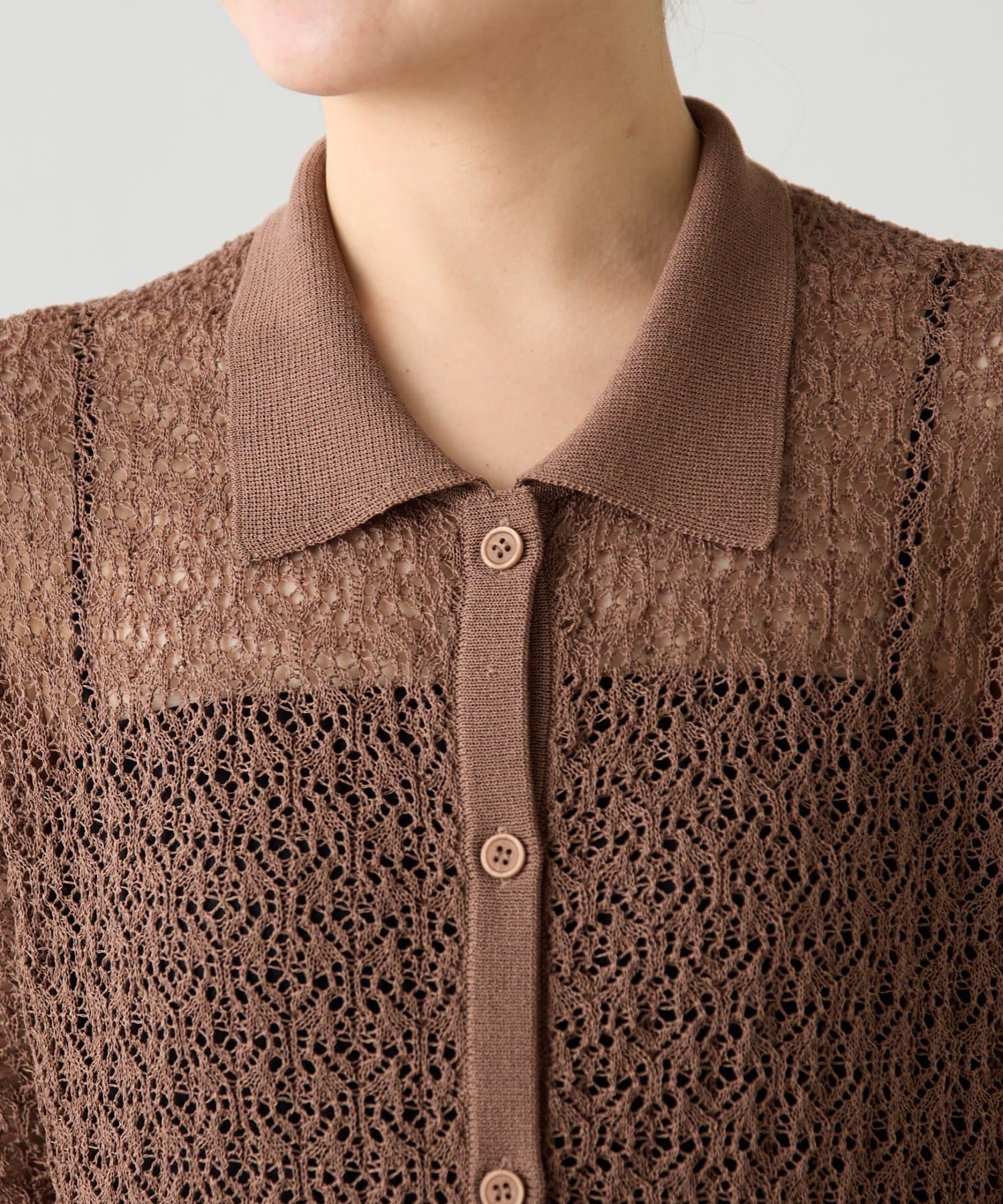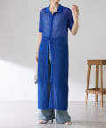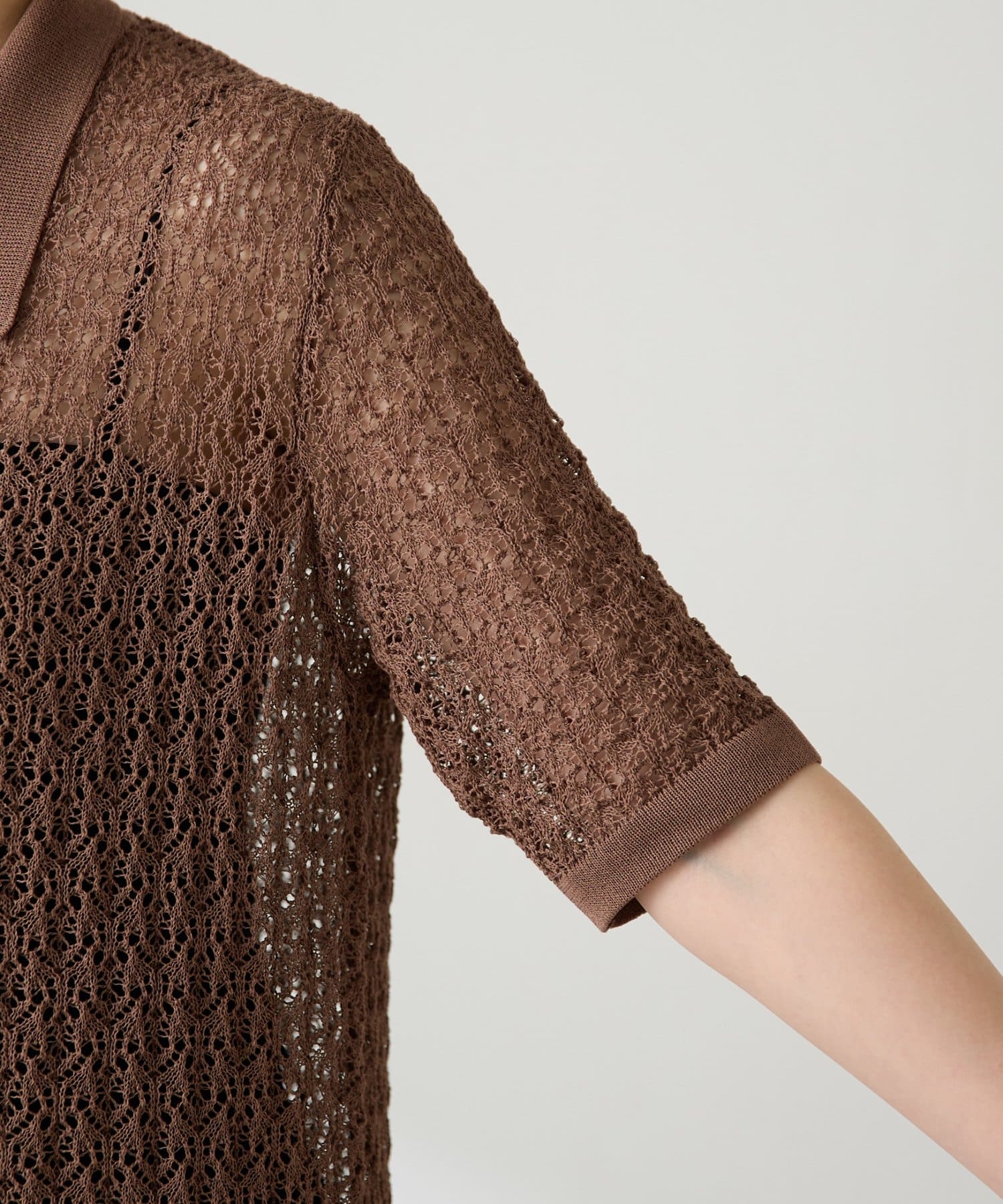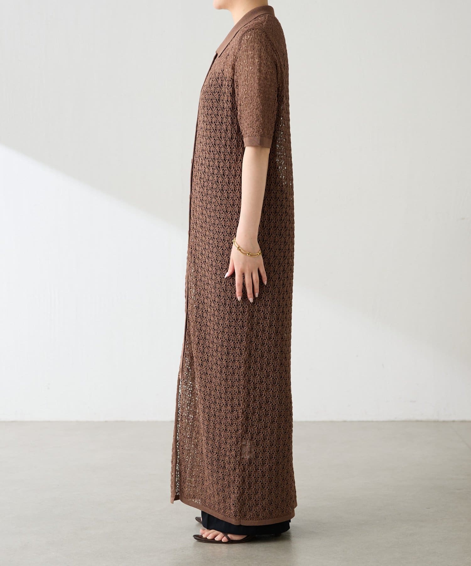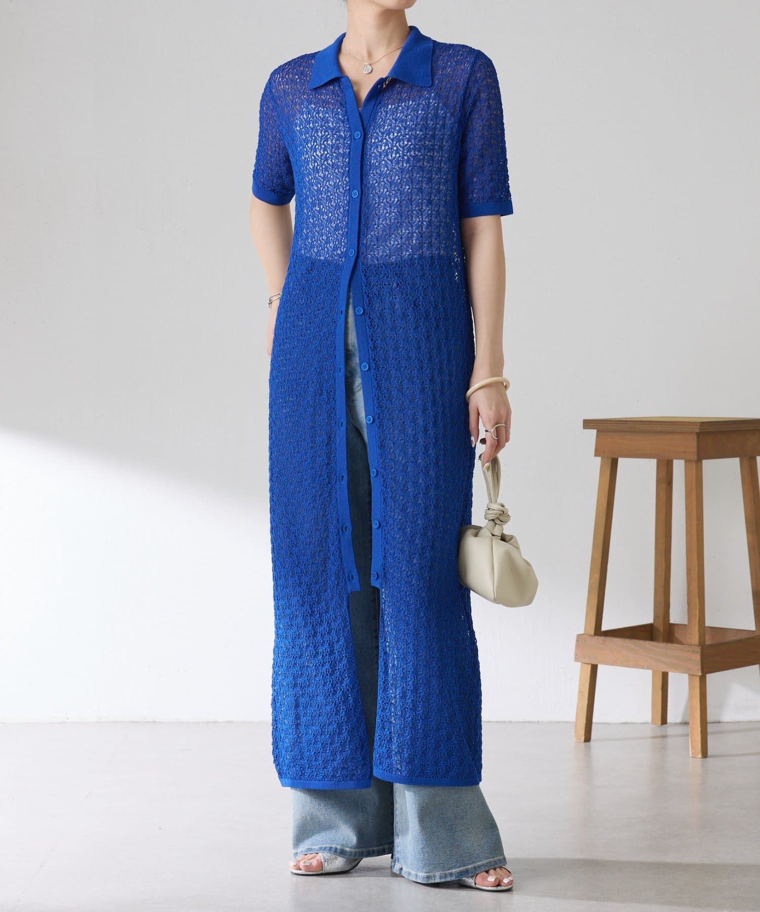 ・清涼感のある生地で、夏のレイヤードスタイルを楽しめるポロ型ニットワンピース。