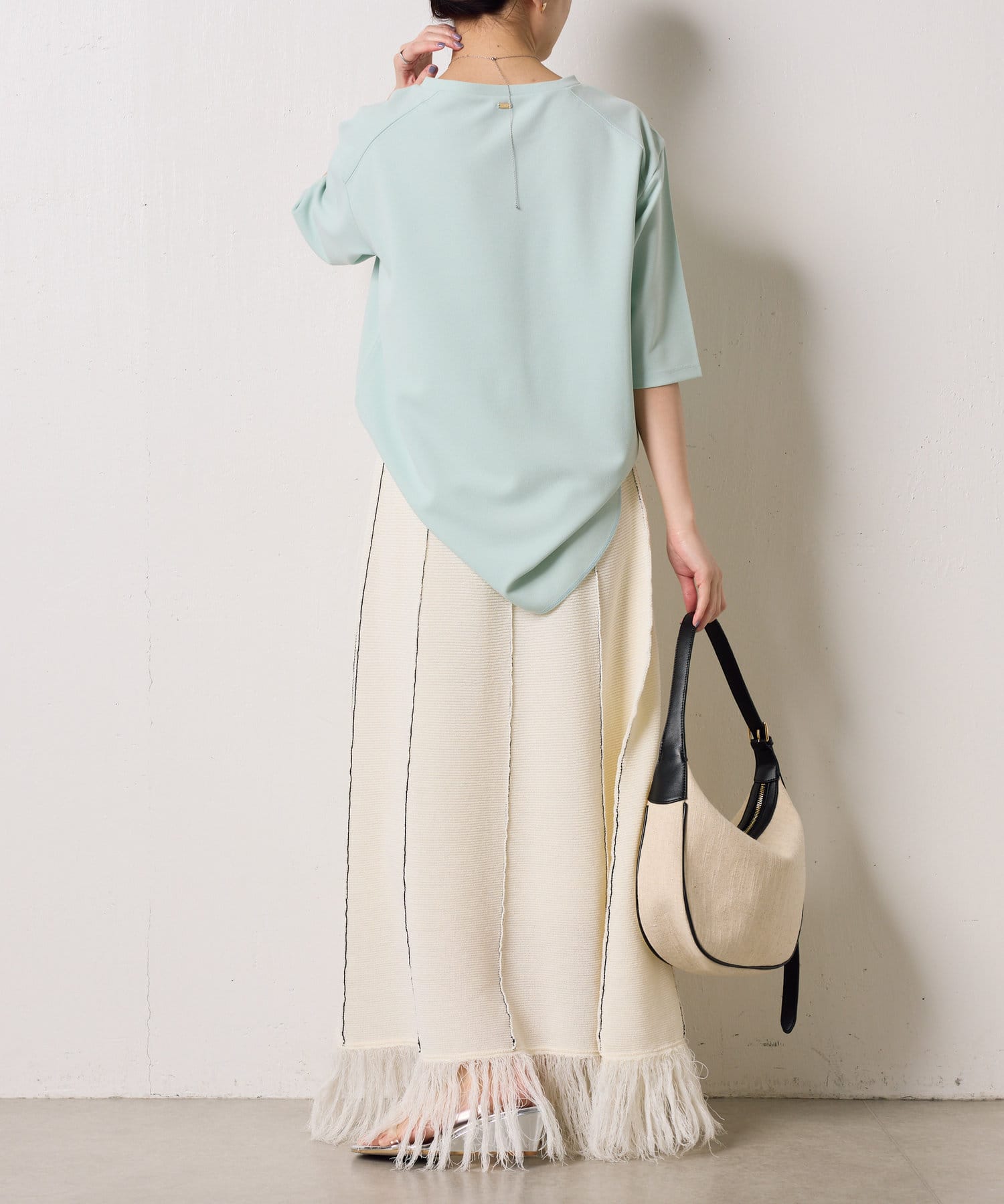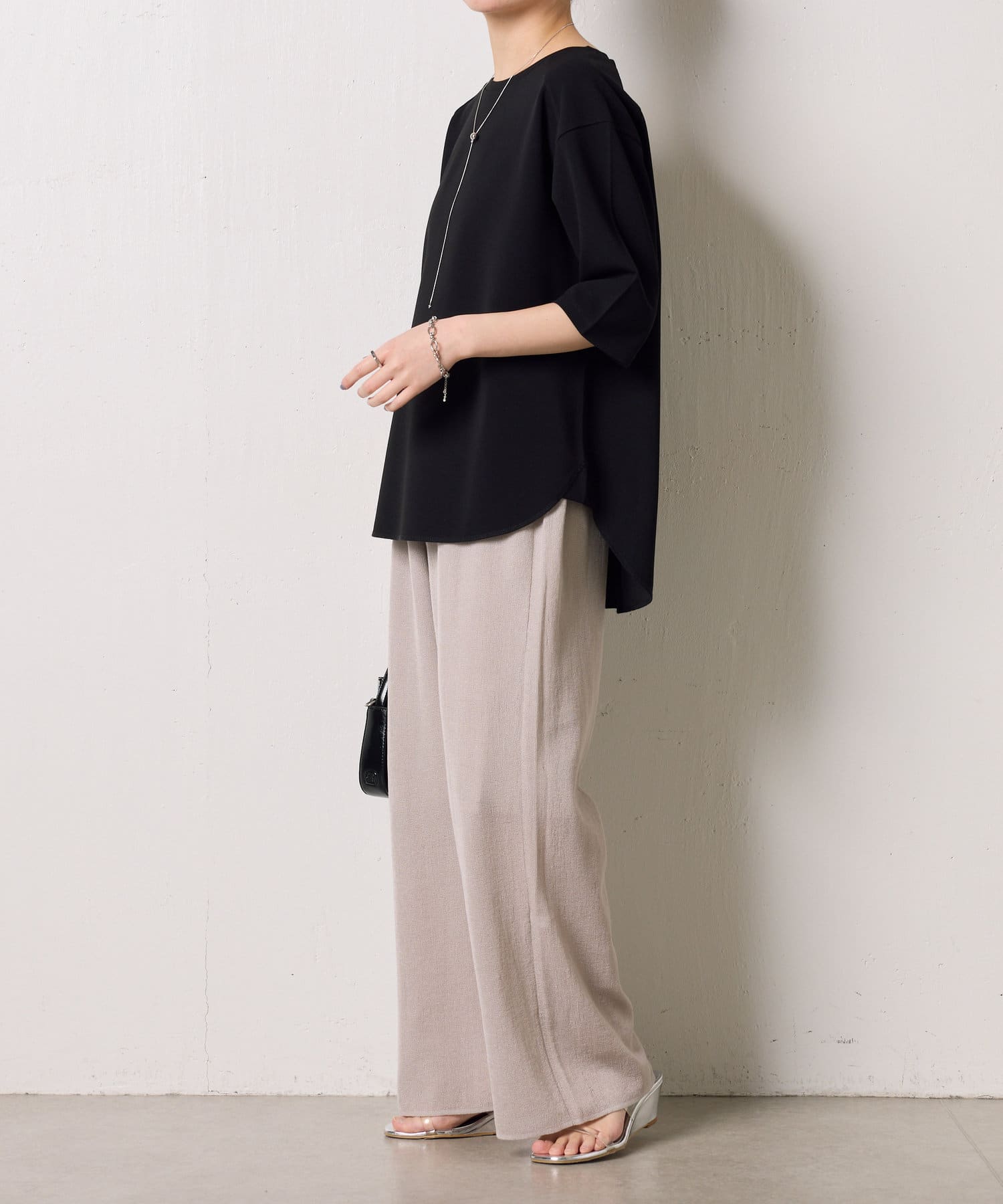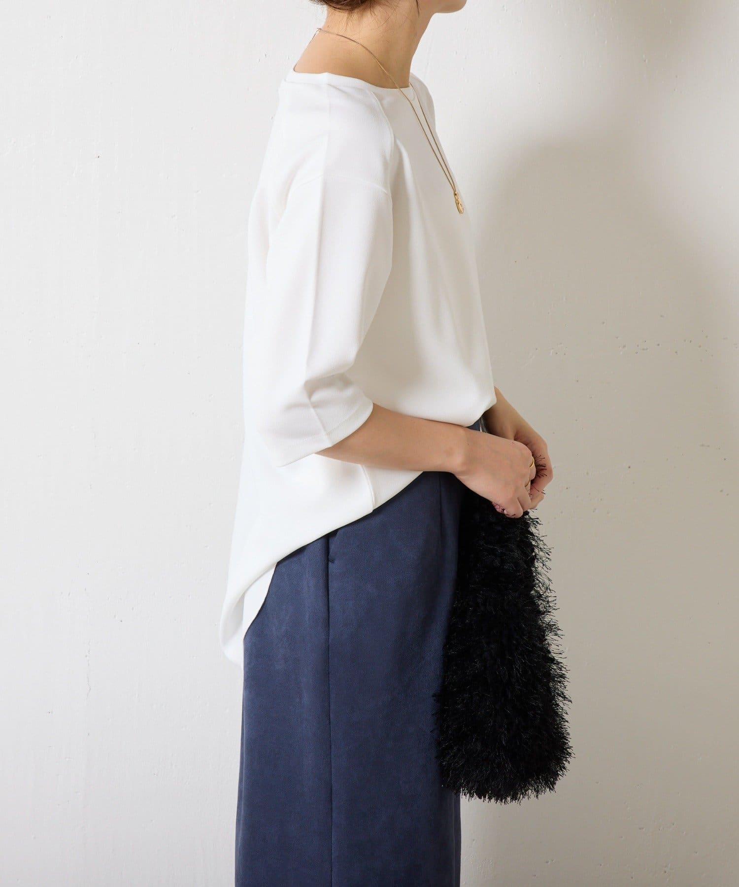 ・サイドスリットなど細部に抜け感を出しており、シンプルながら拘りの詰まった1枚に。