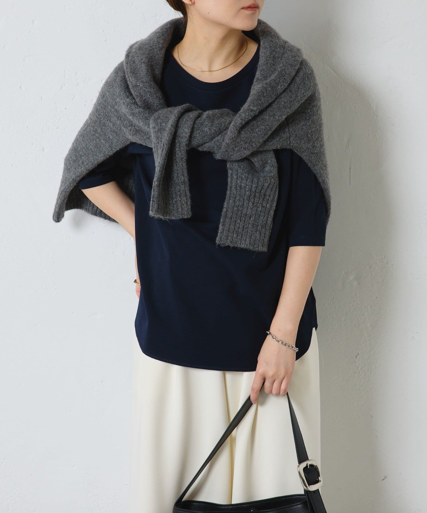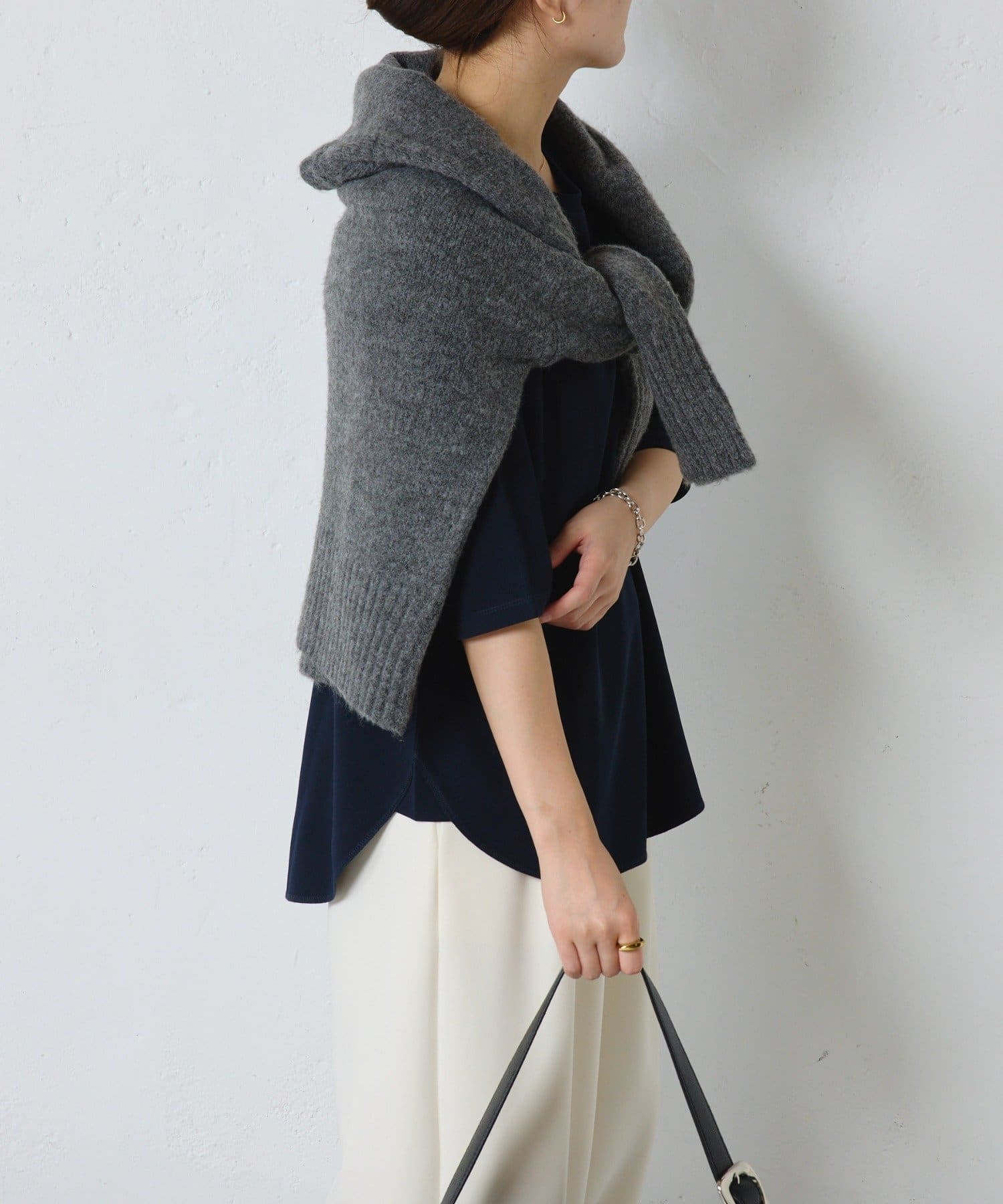 ニット素材と合わせてきれいめでもデニムと合わせてカジュアルでも素敵です。