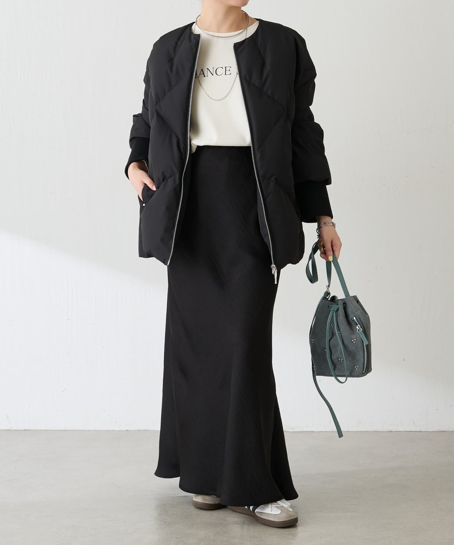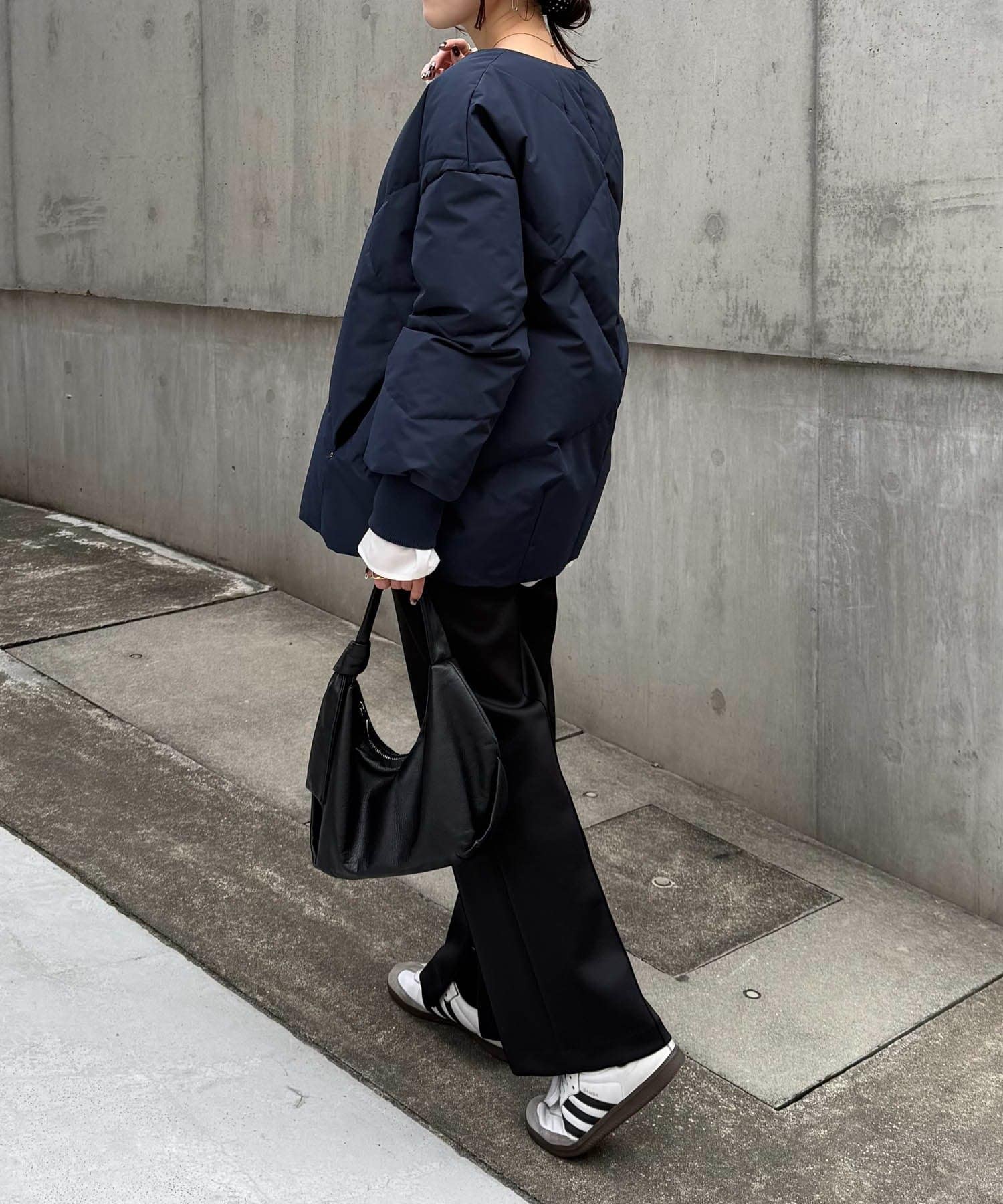 ・ダイヤモンドキルトや、装飾をシンプルにすることでカジュアルさが抑えられてきれいめスタイルにもおすすめです。