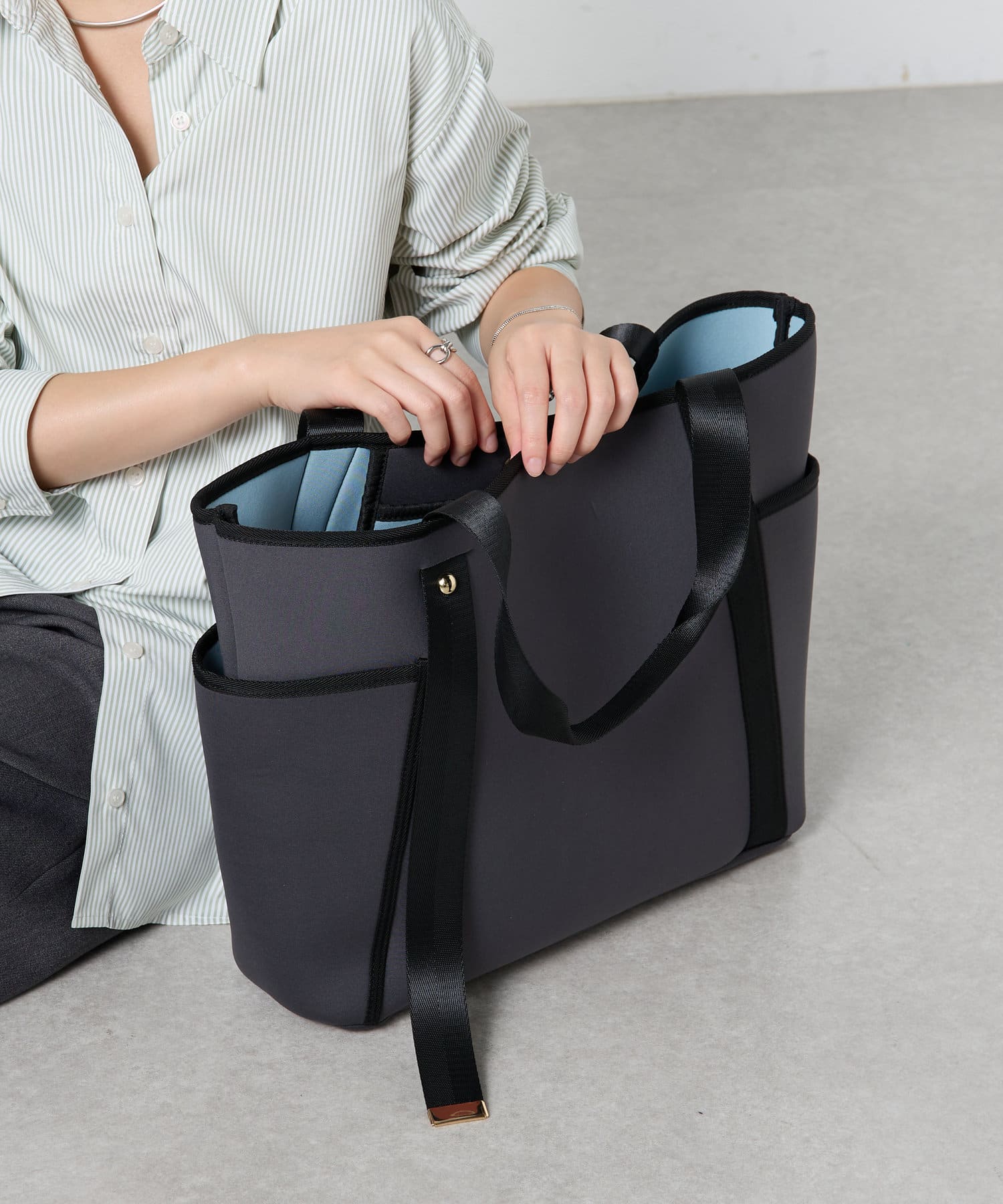 ・ネオプレン素材は軽くて丈夫な素材なので毎日の通勤、マザーバッグ、ご旅行に活躍します。