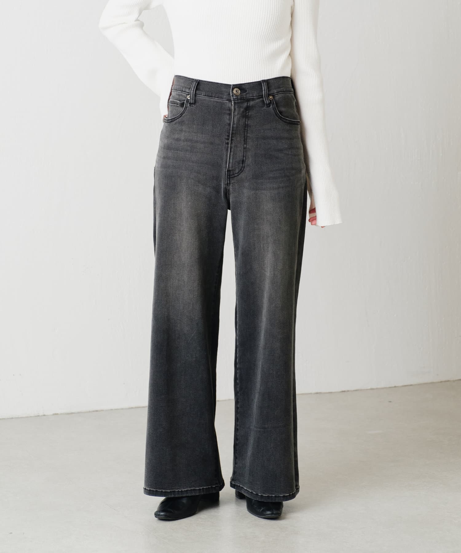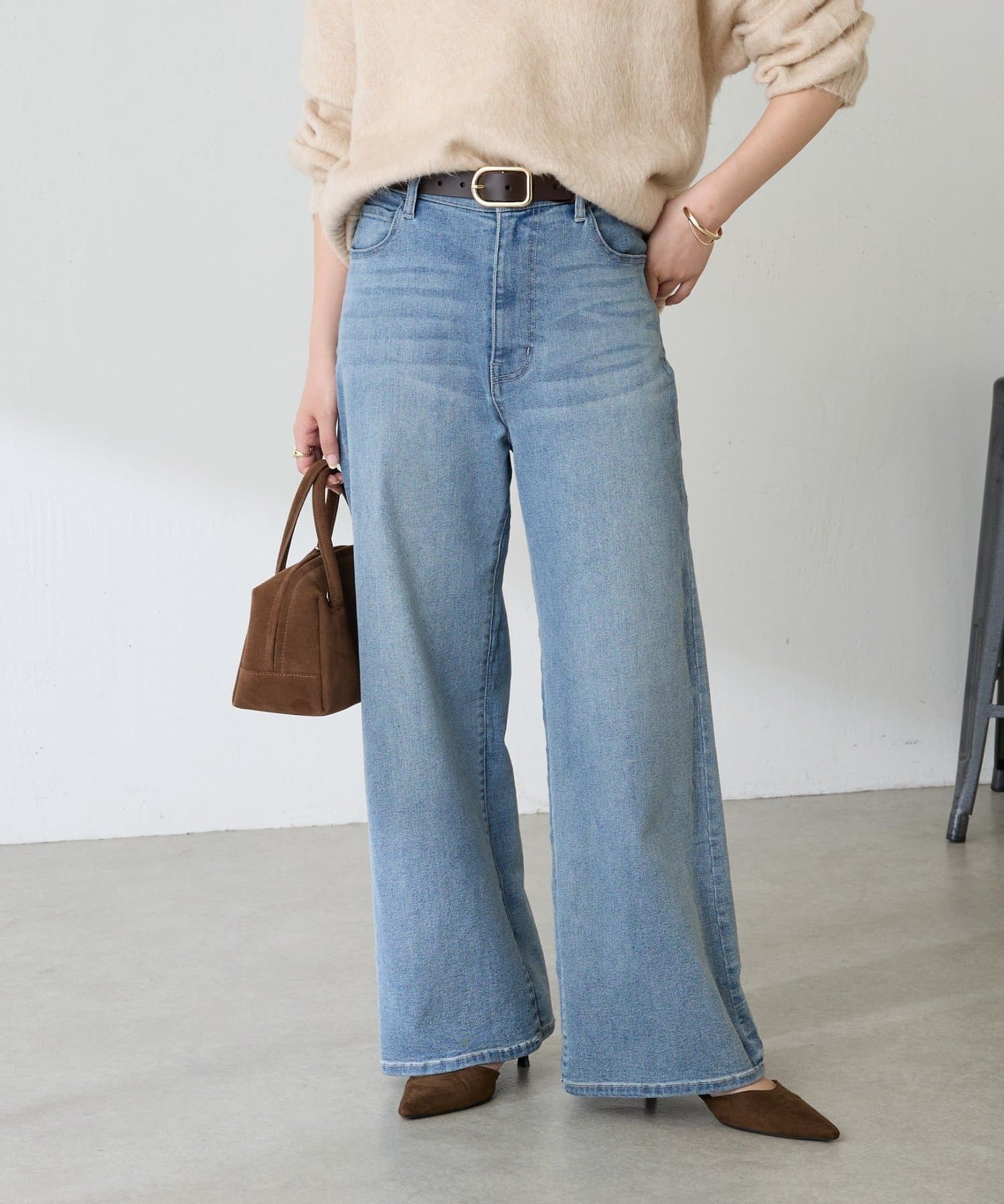 ストレッチ素材で動きやすくウエスト周りも楽チンなワイドデニム