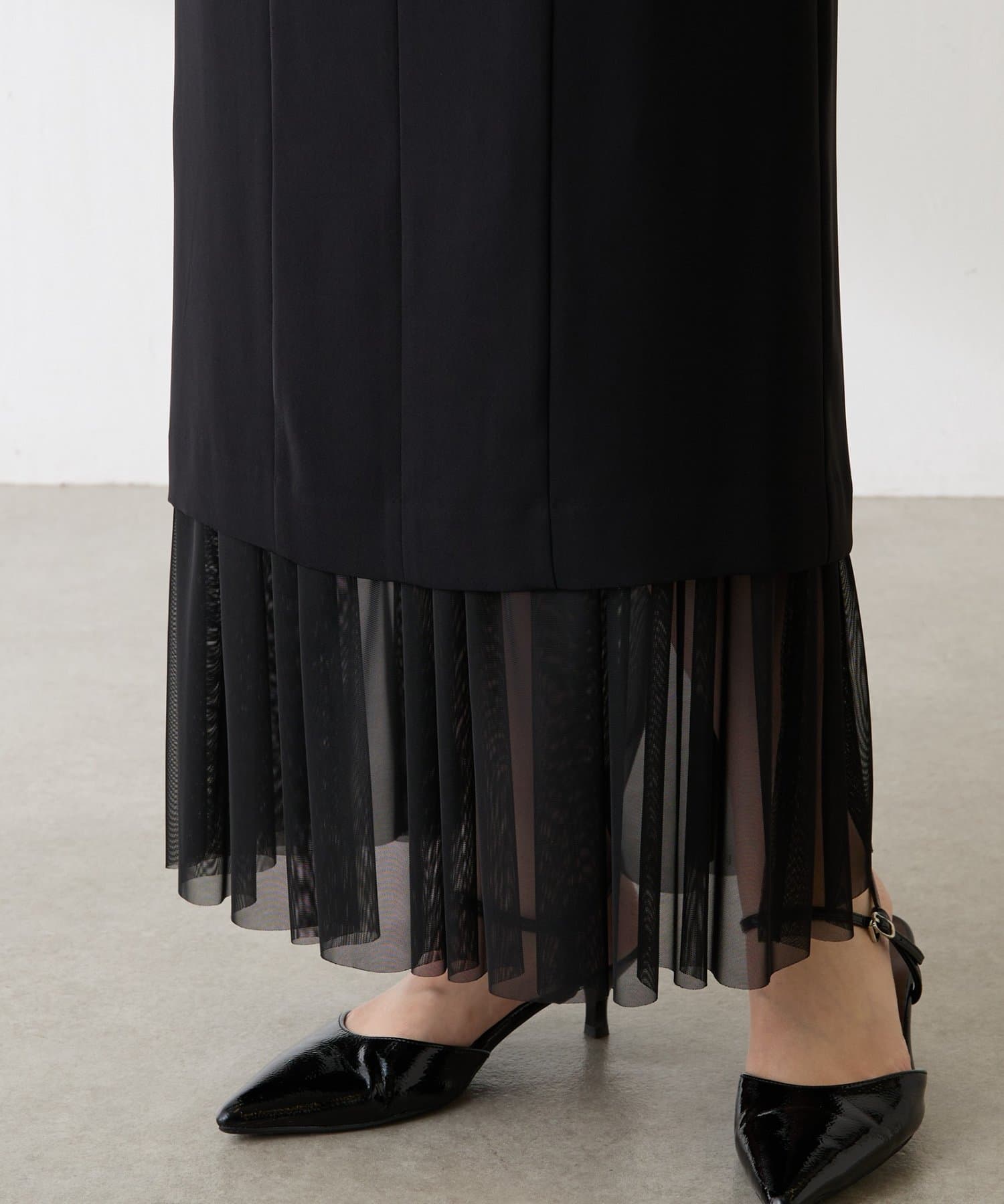 ・レイヤードしているようなデザインで、裾からのぞくチュールが華やかさを演出してくれます◎