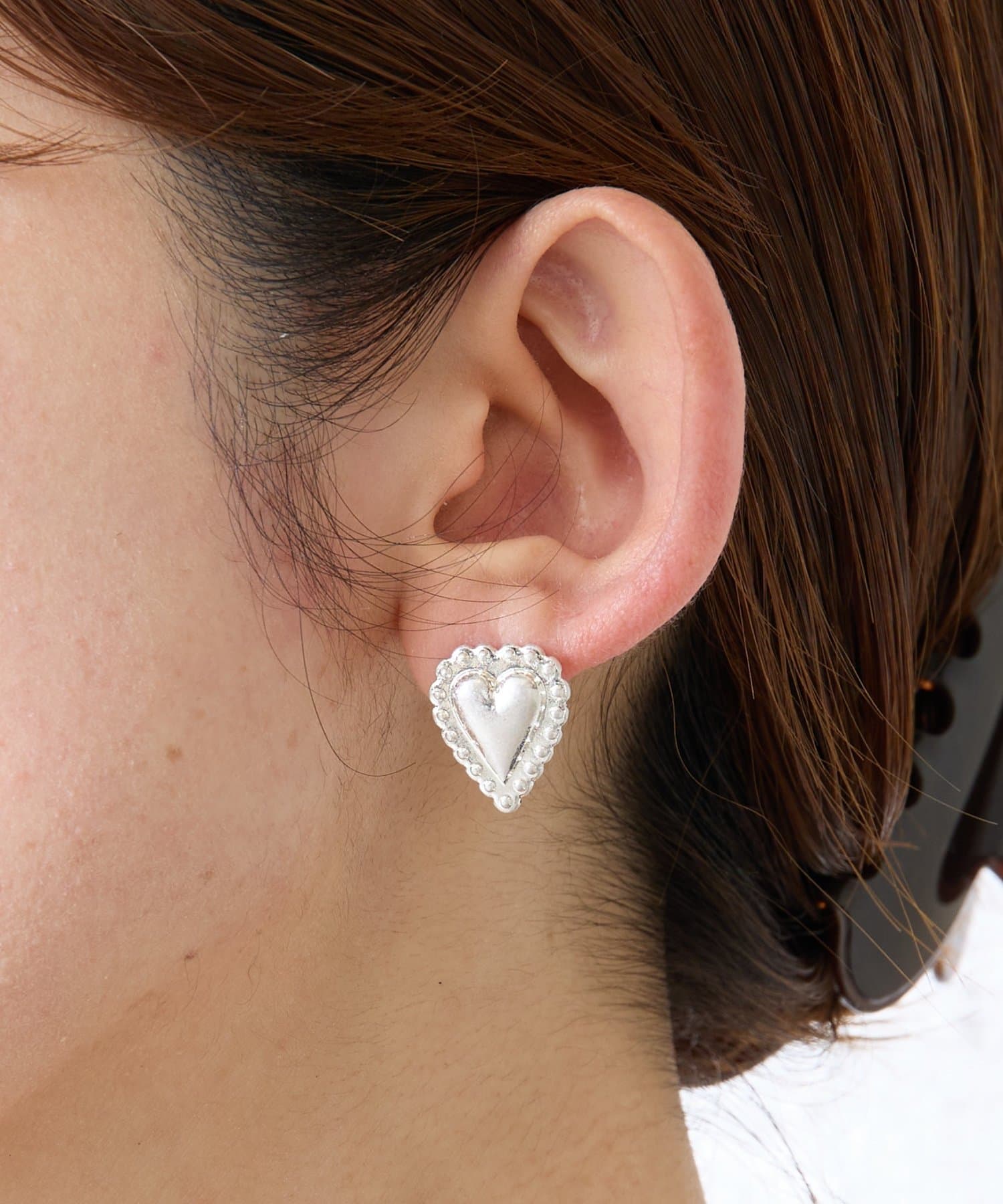 ・スタッズ使い×ヴィンテージ加工が甘すぎずハード過ぎないこなれ感のあるハートピアスです。