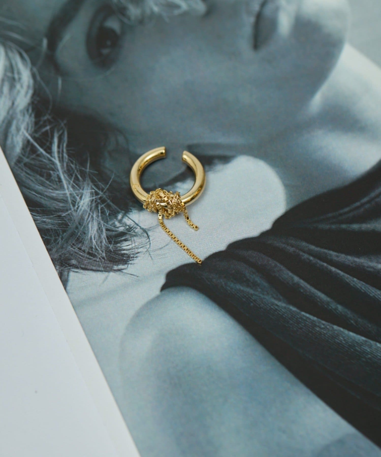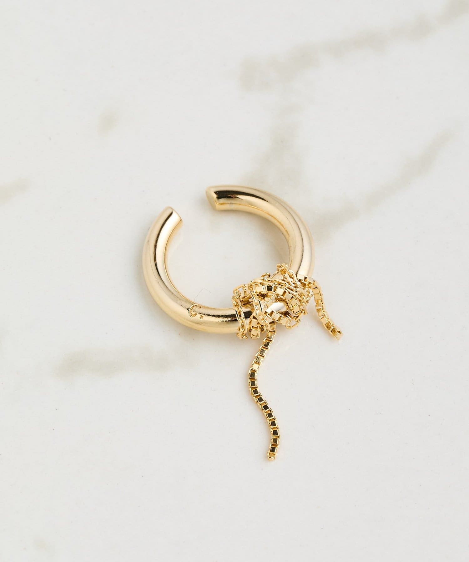 ・2種類のチェーンを巻き付けたイヤーカフ。