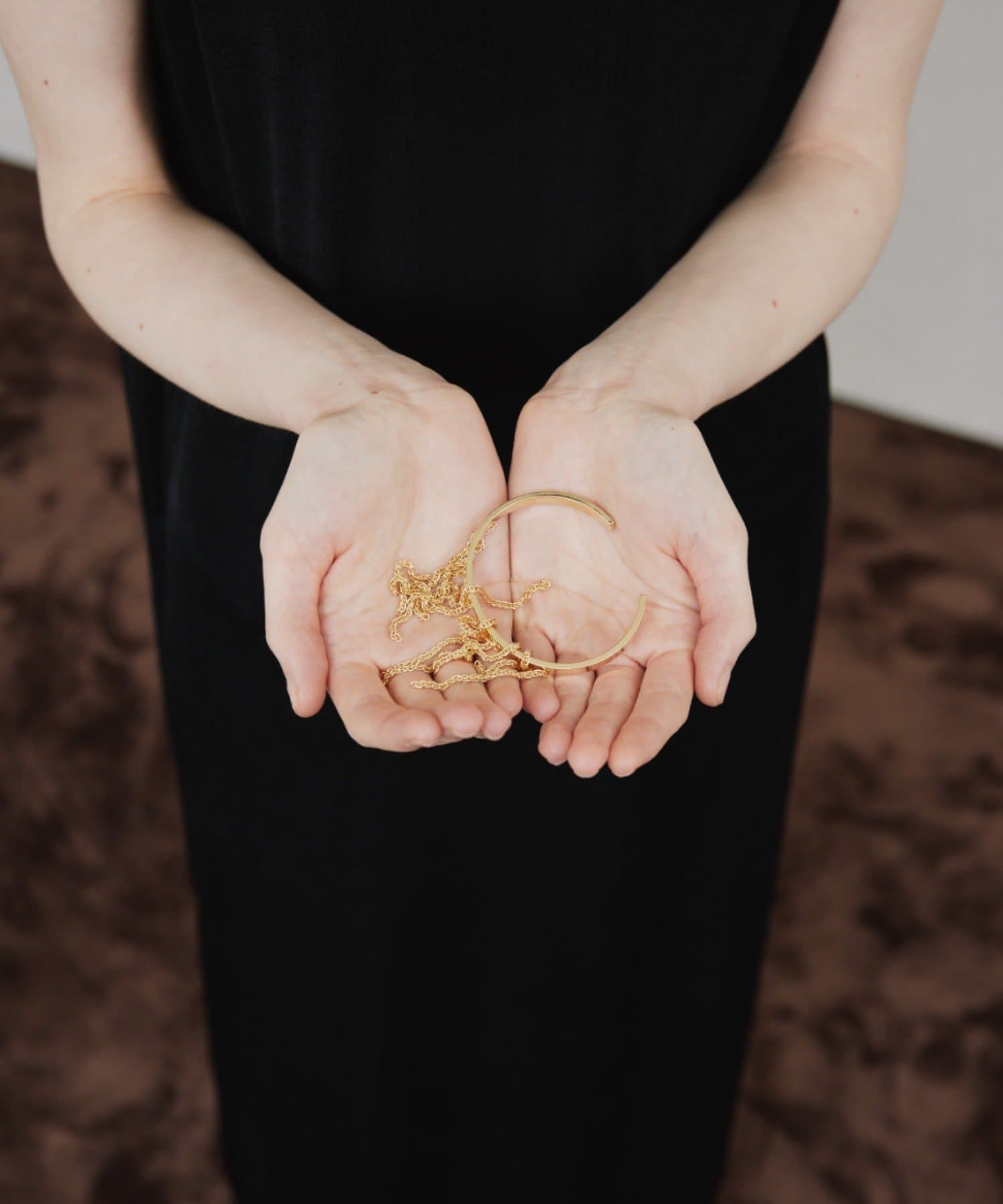 ・シンプルなメタルバングルに長めのチェーンを付けて揺れる手元を楽しんでいただけます。