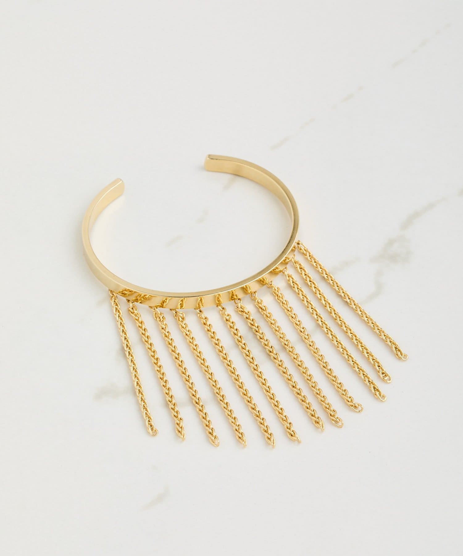 揺れるチェーンが手元を彩るデザインバングル