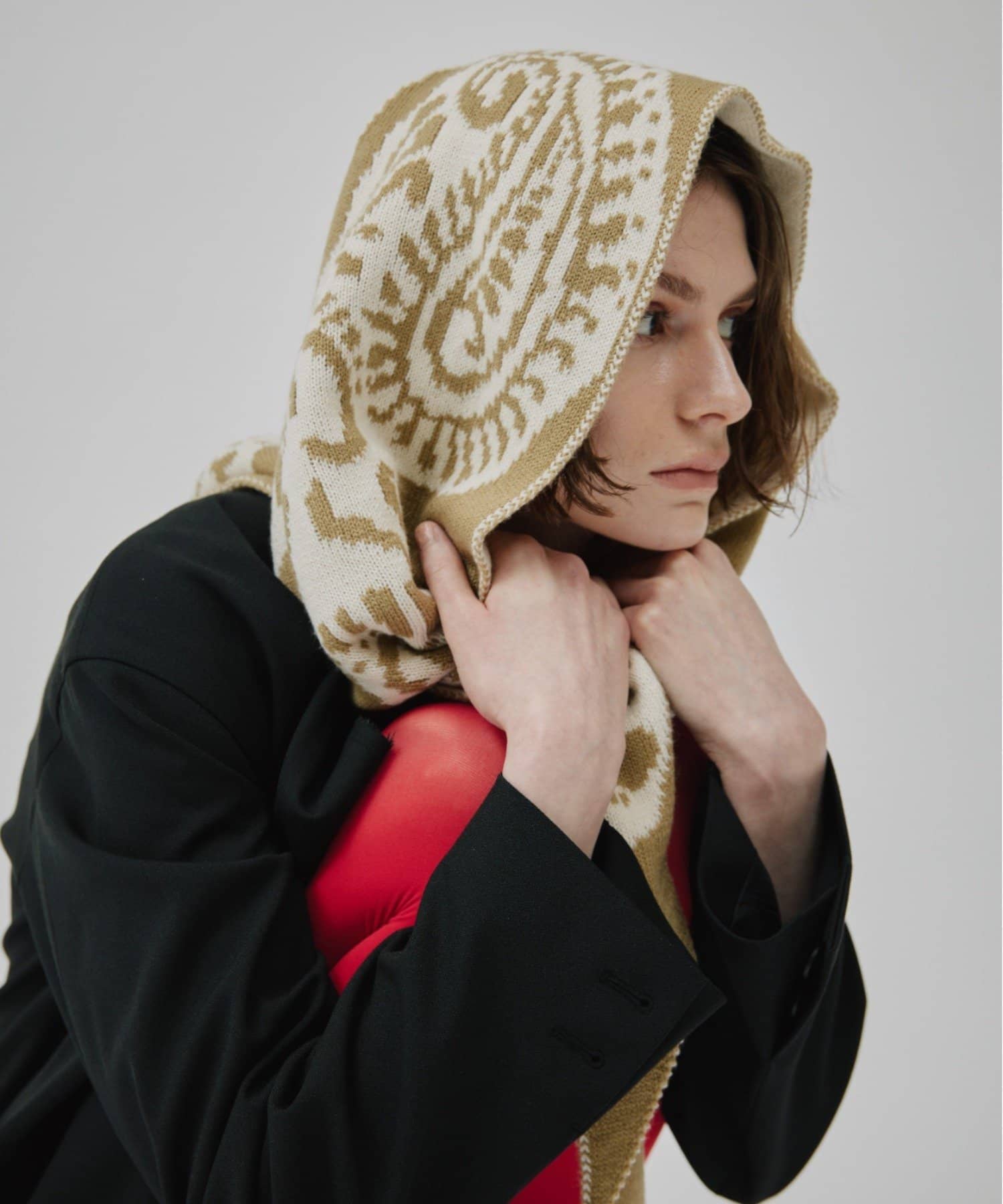 ・オリジナルの柄を切り貼りしたようなデザインのストール。