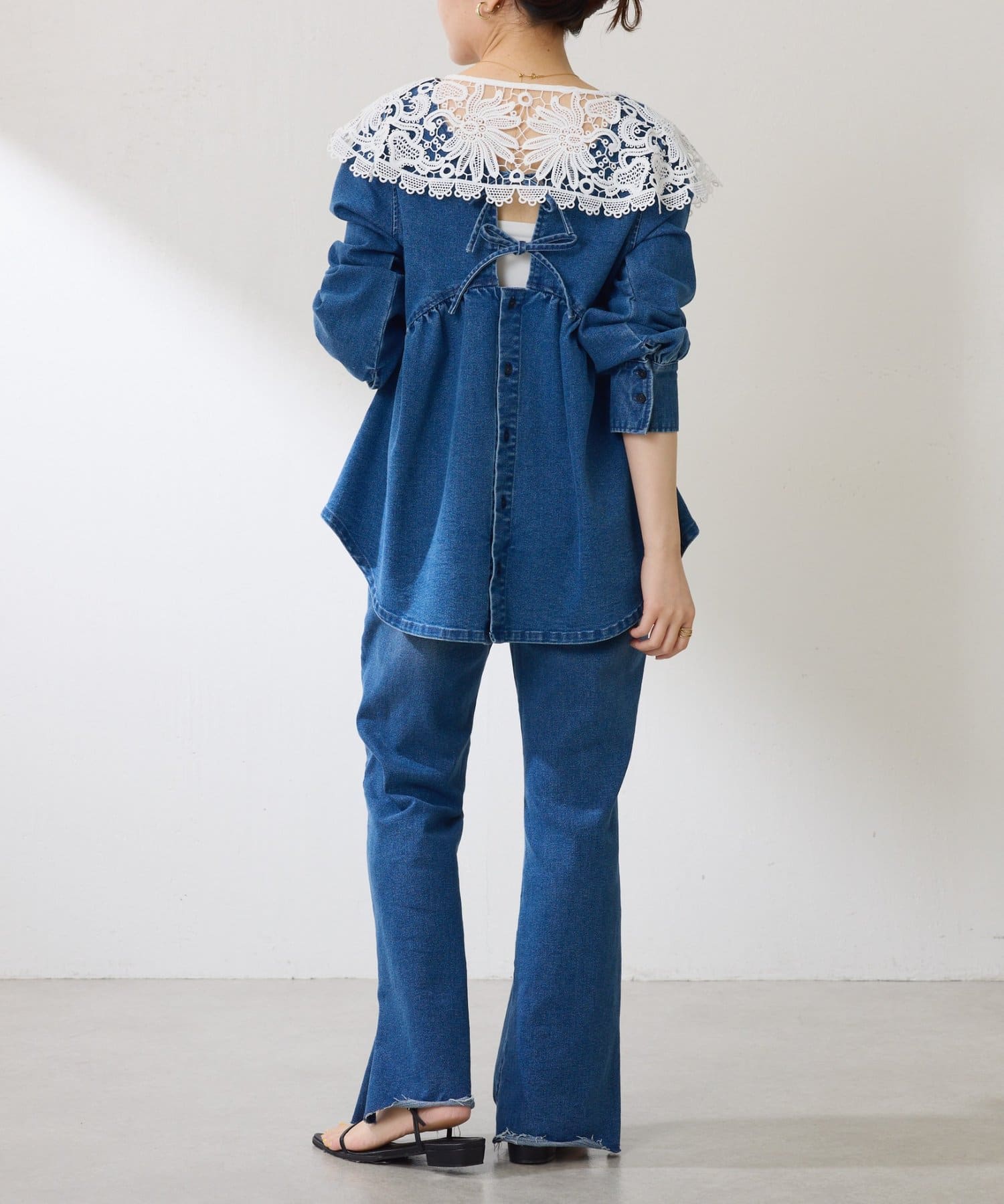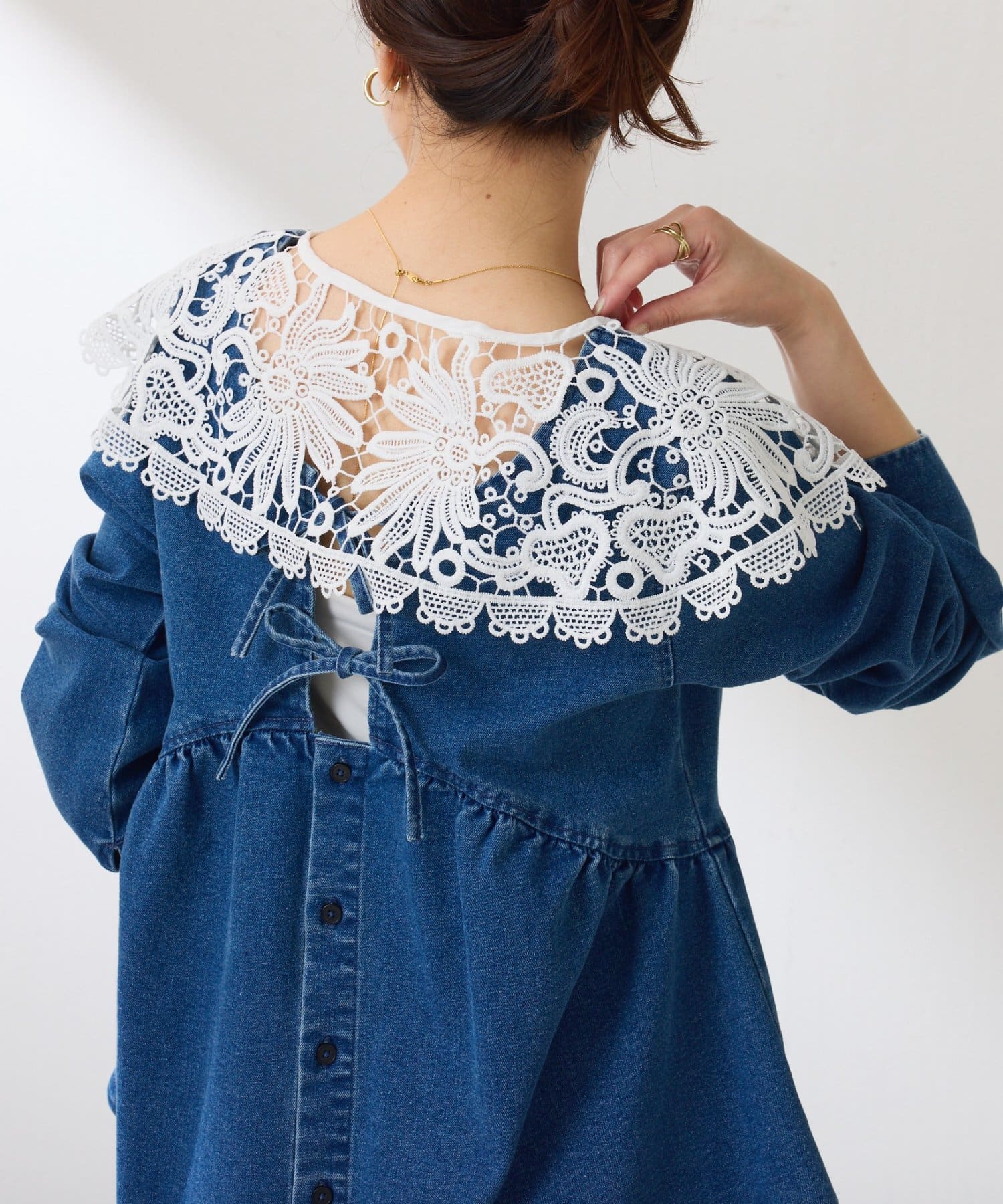 ・襟としてはもちろん、ウエストに巻いてトップスの裾からレースを覗かせるのもおすすめ。