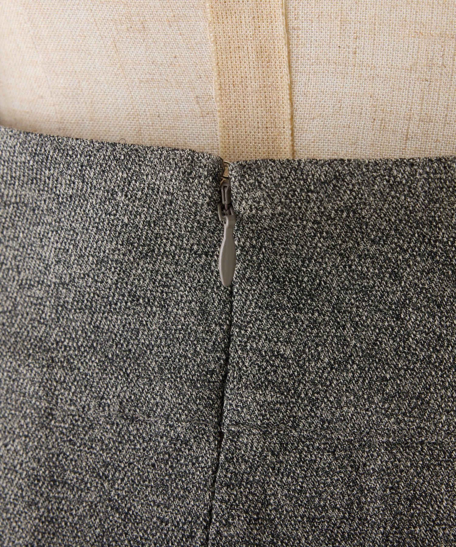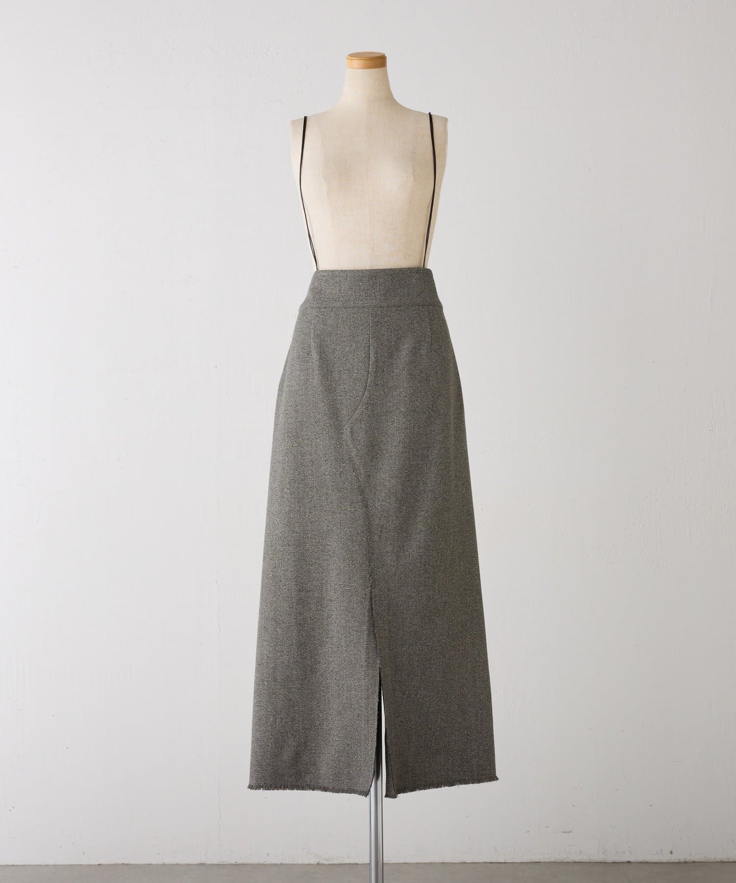 ・こなれ感を出すためにパンツをリメイクしたようなディティールを加えたスカート。