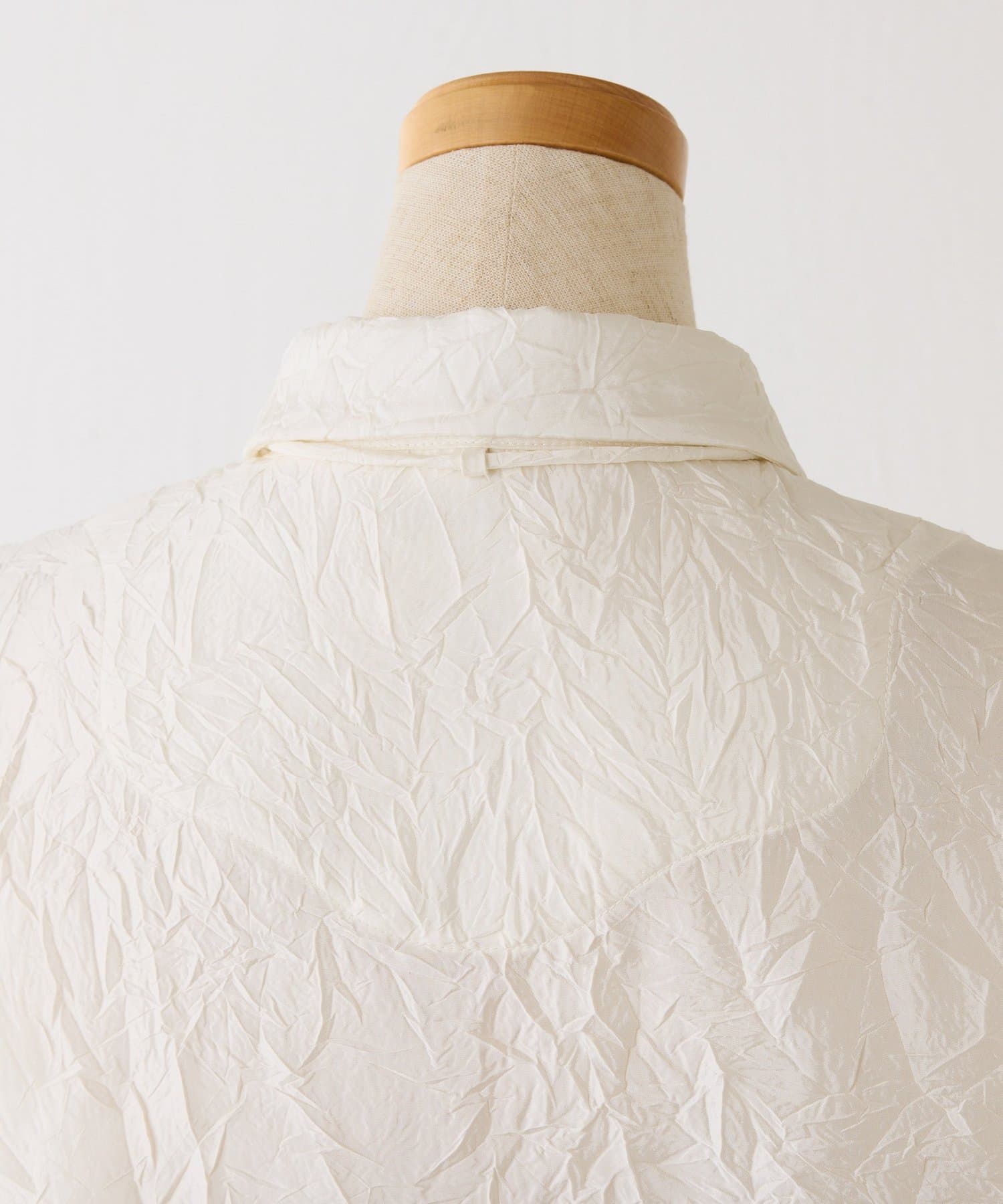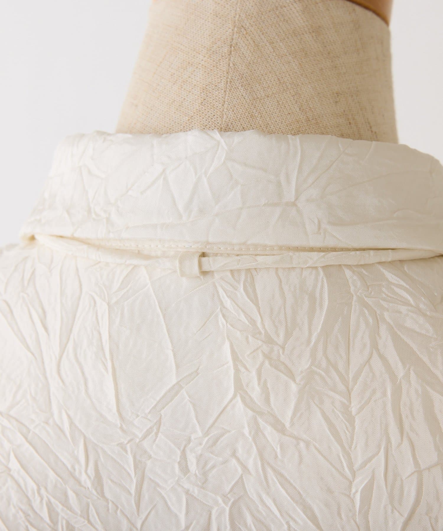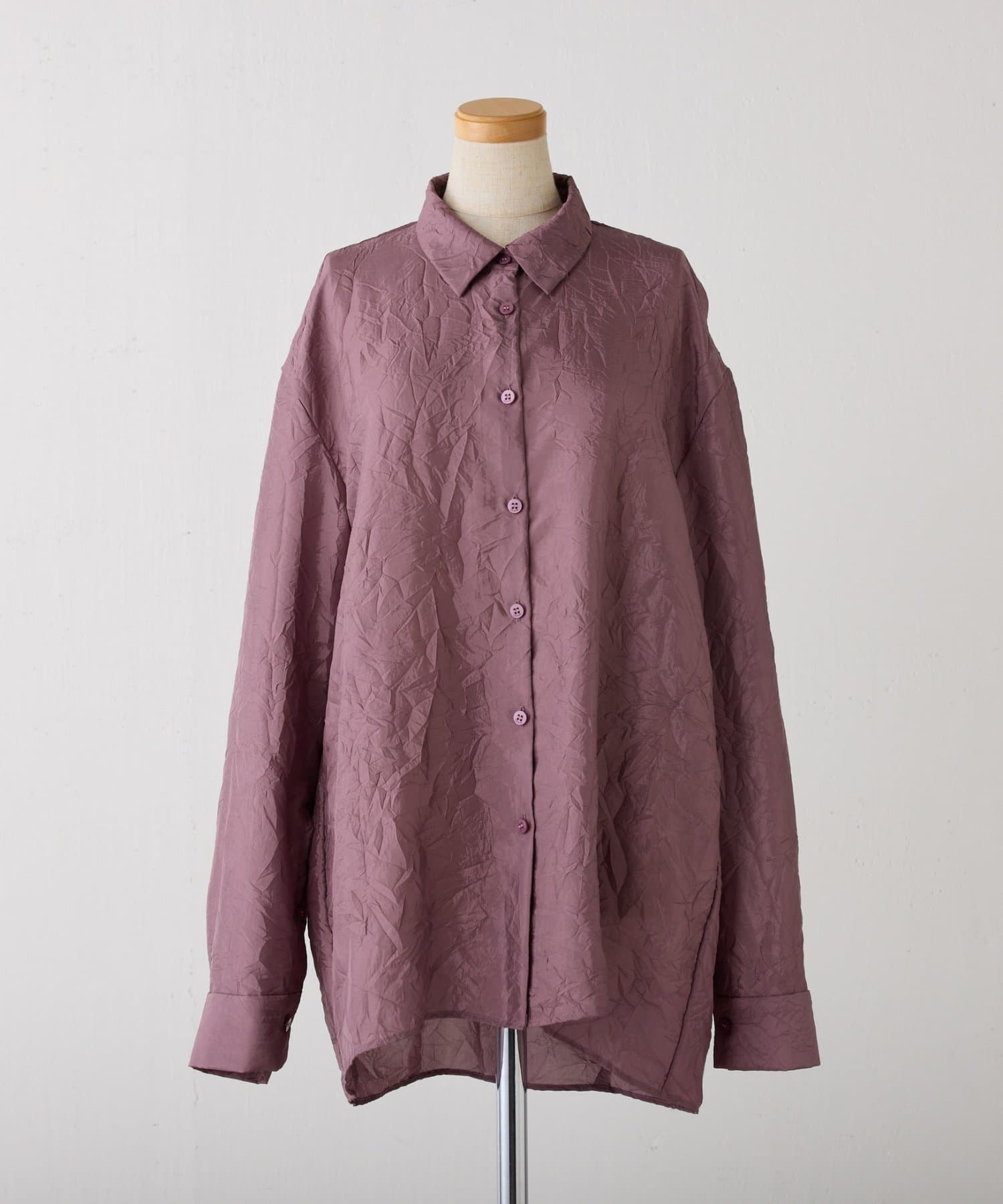 ・シワ加工を施したシルクタッチ素材のブラウス。