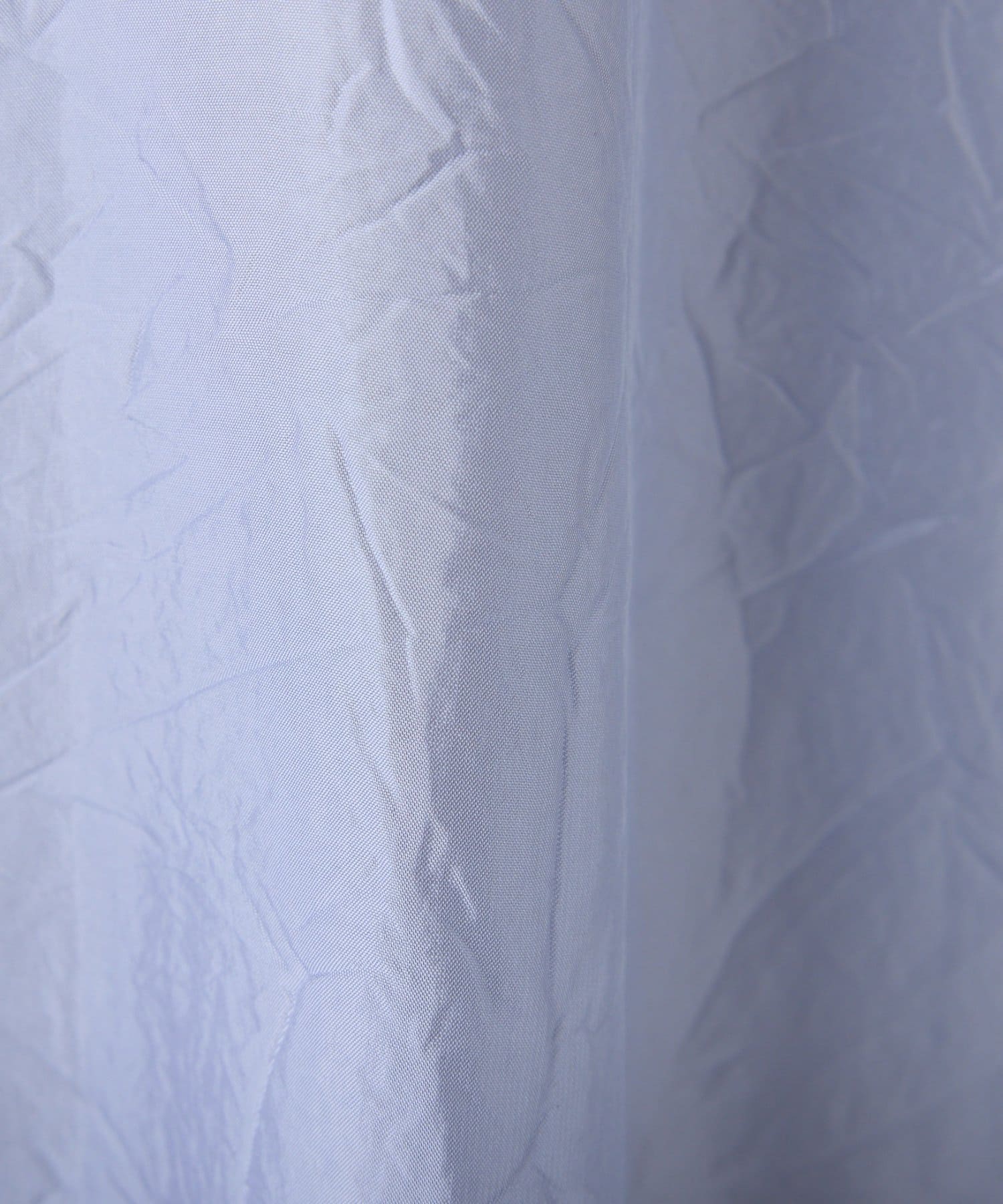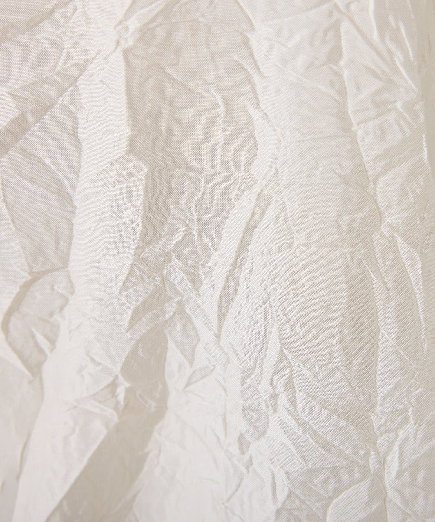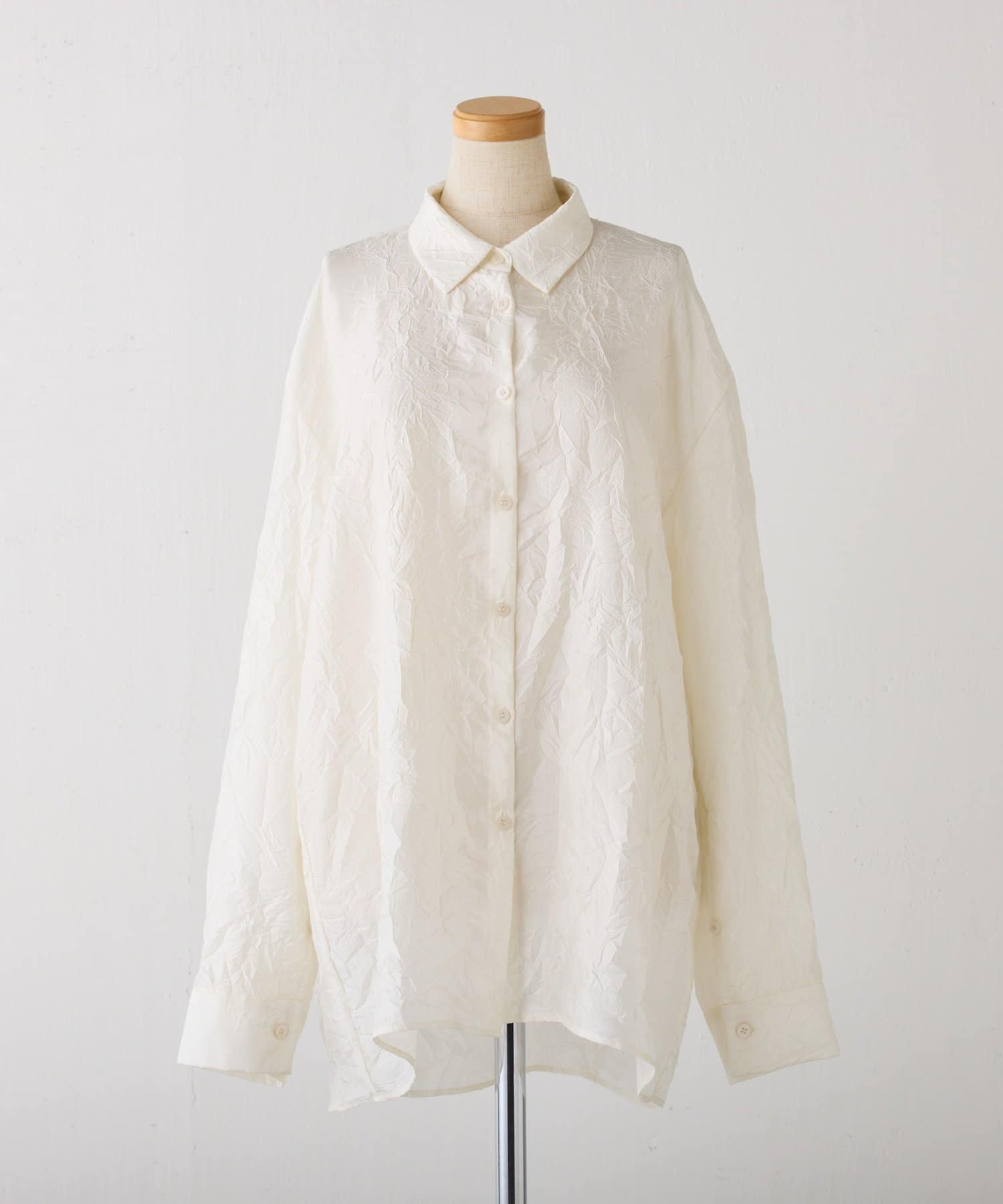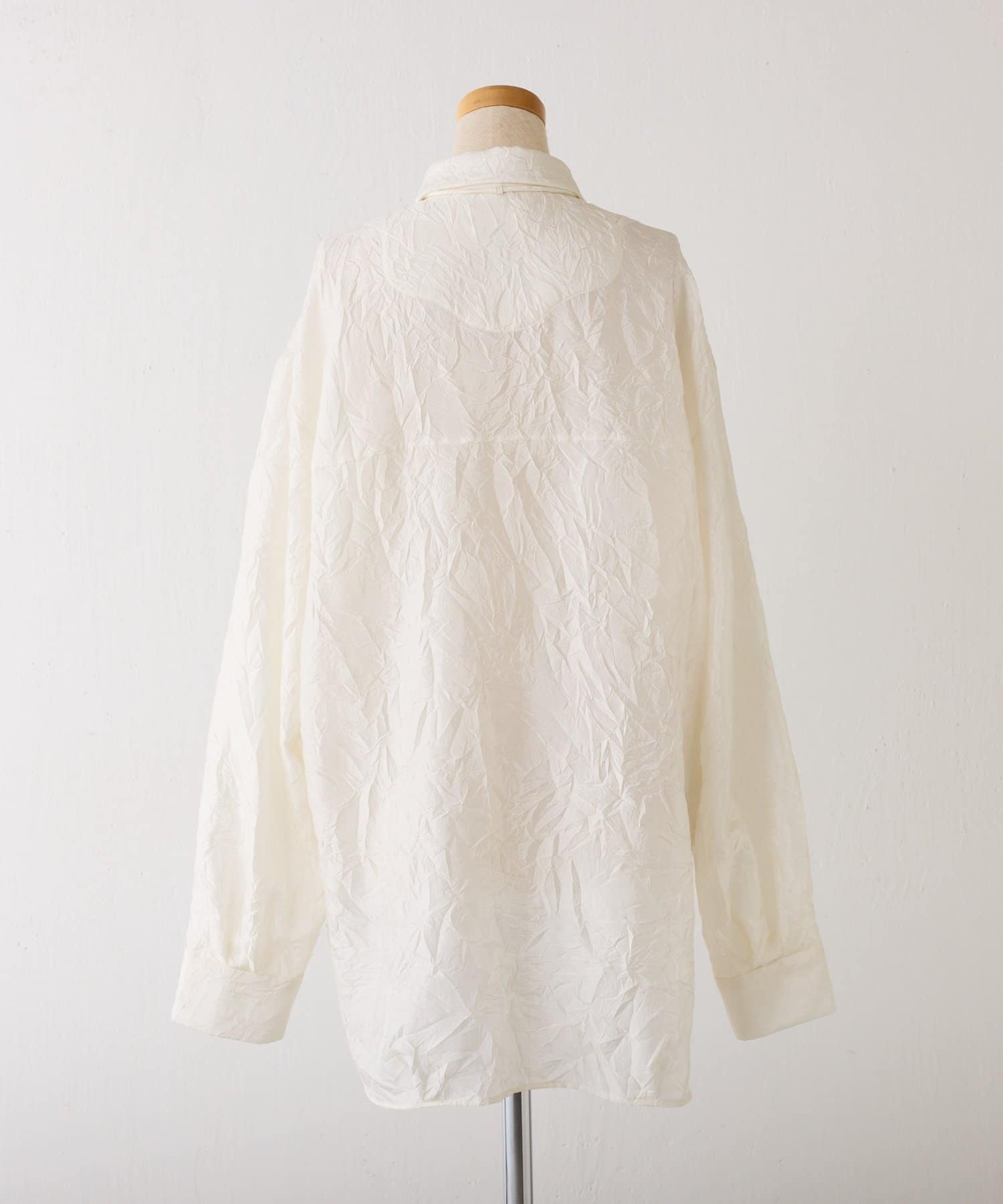 ・シワ加工を施したシルクタッチ素材のブラウス。