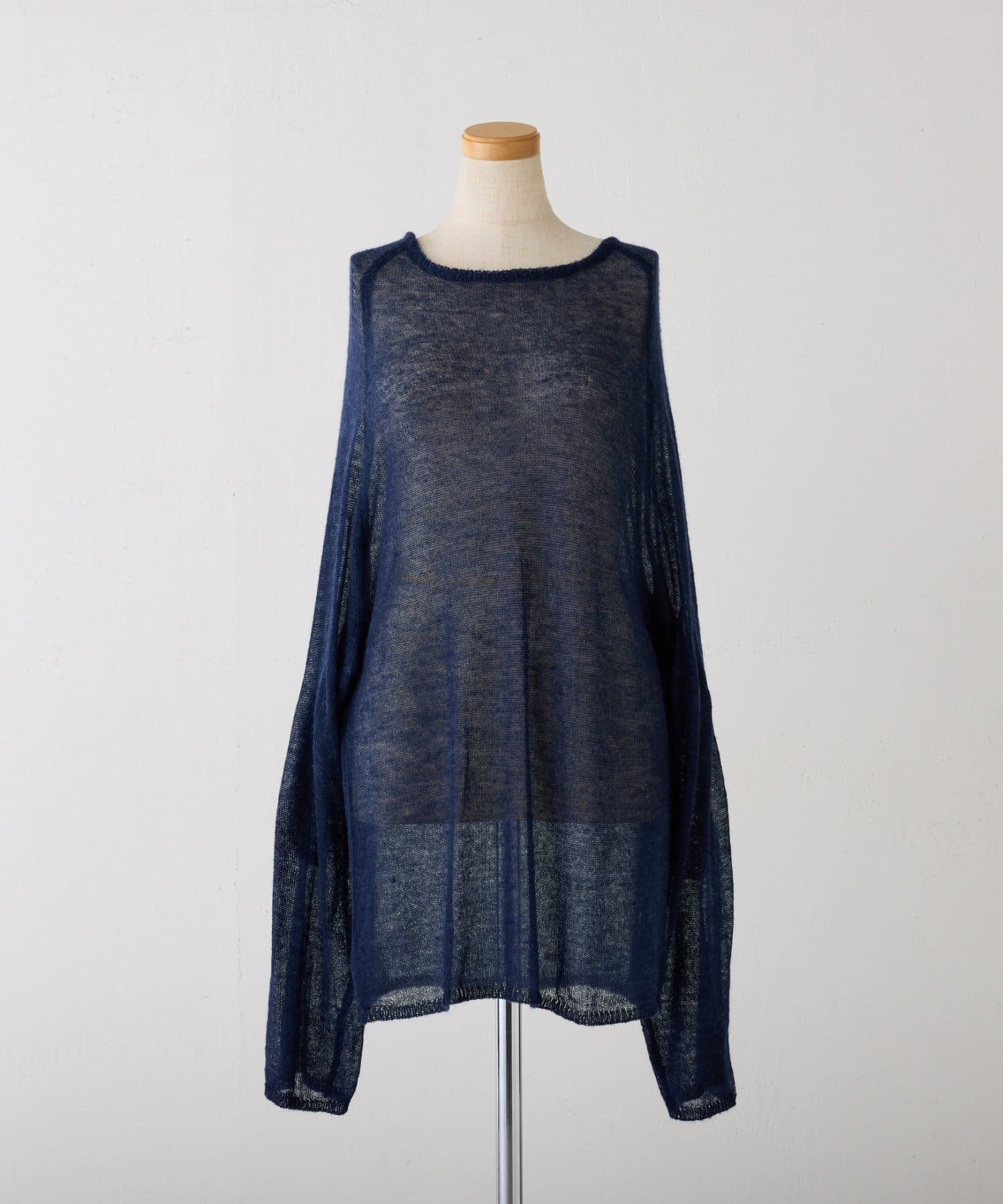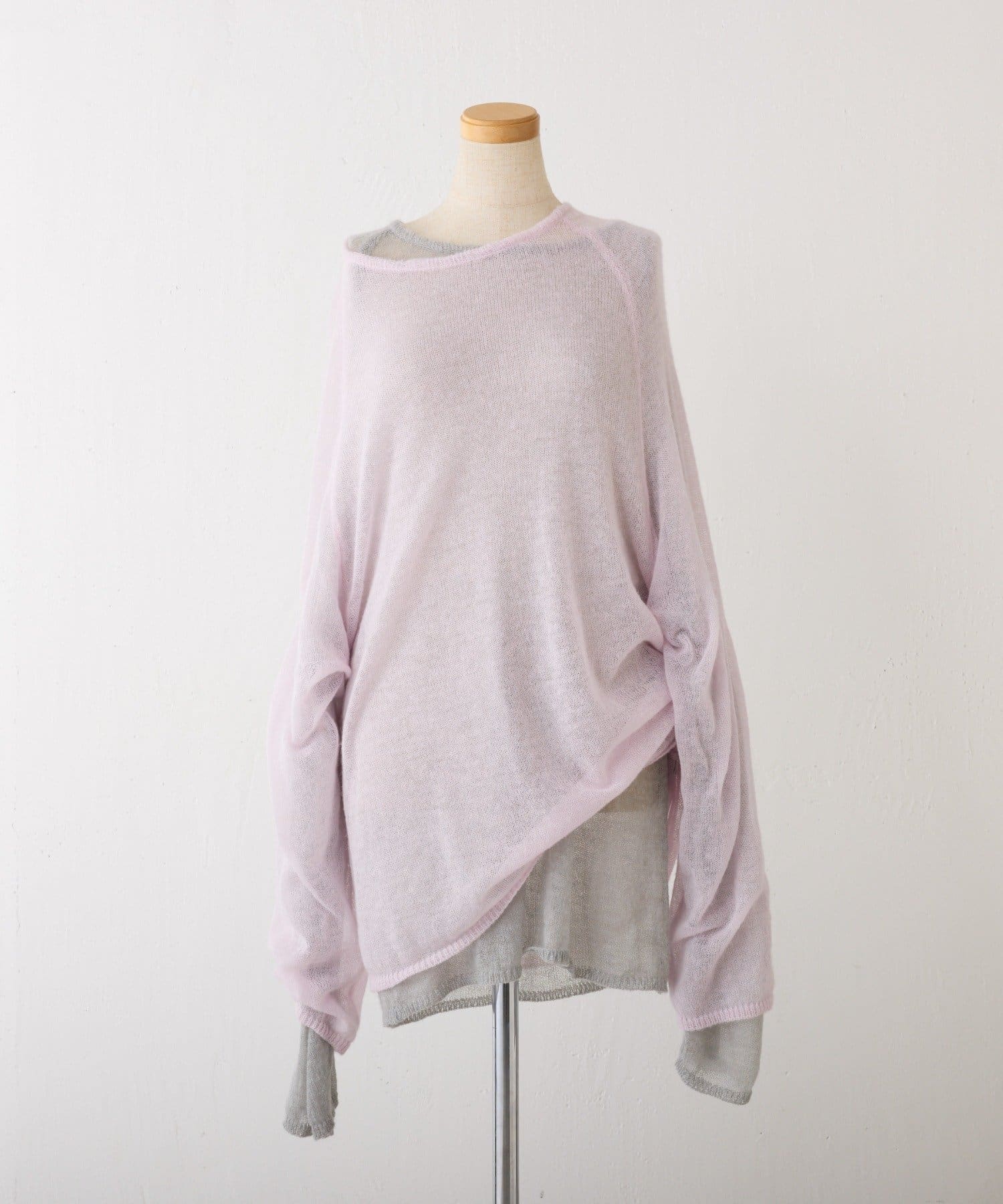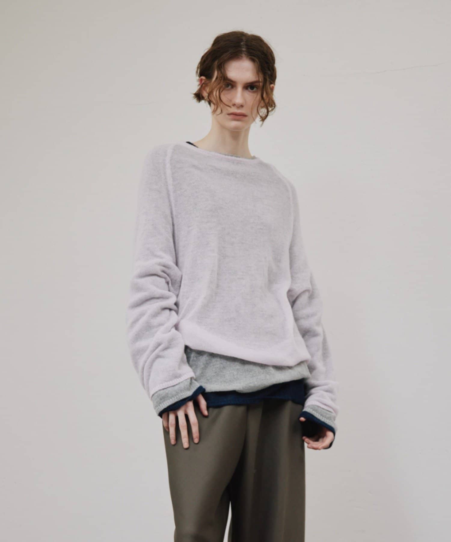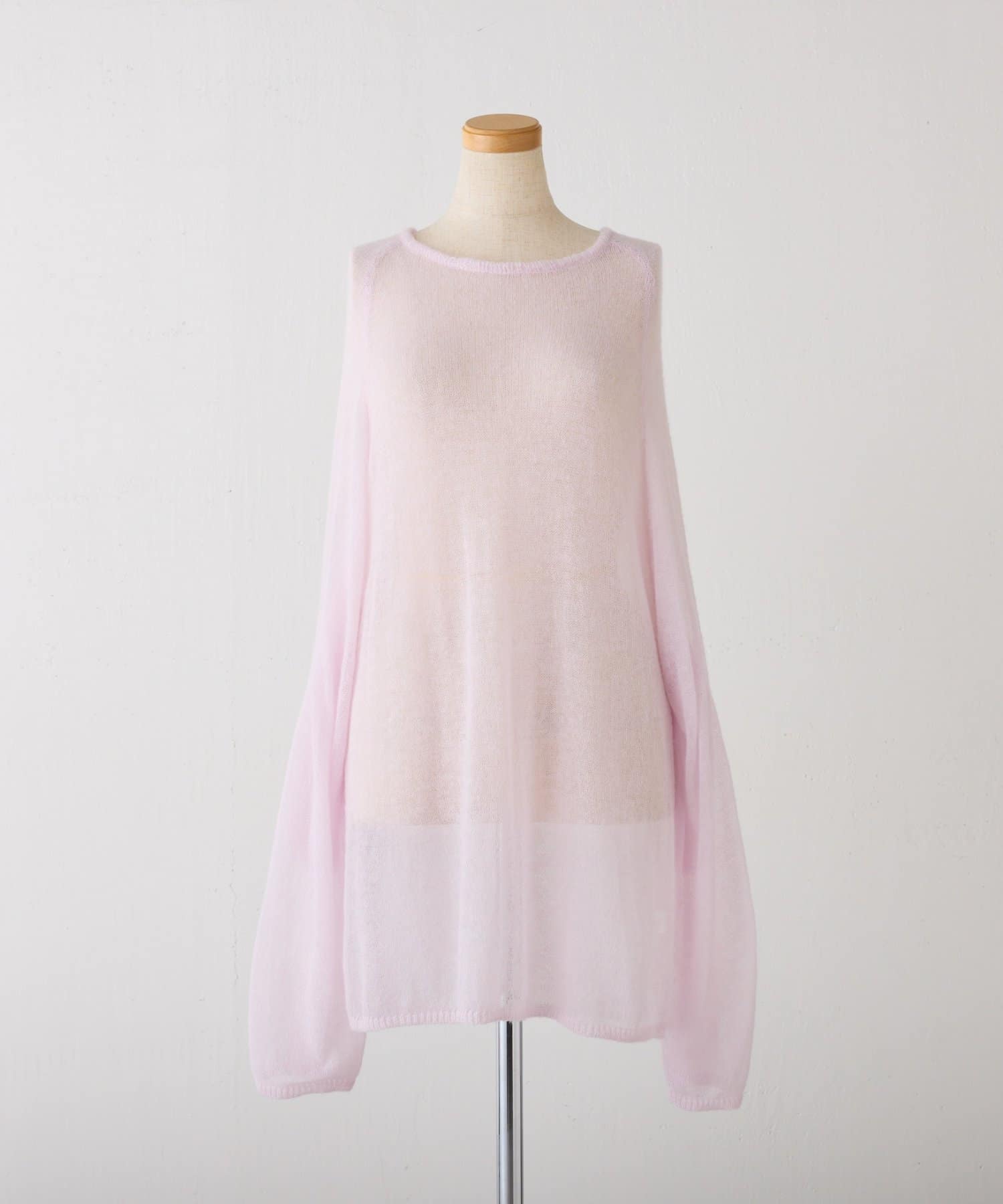 ・アンゴラ混の細番の糸をダウンゲージで編むことでシアー感を出したニット。
