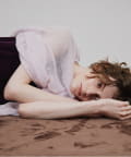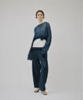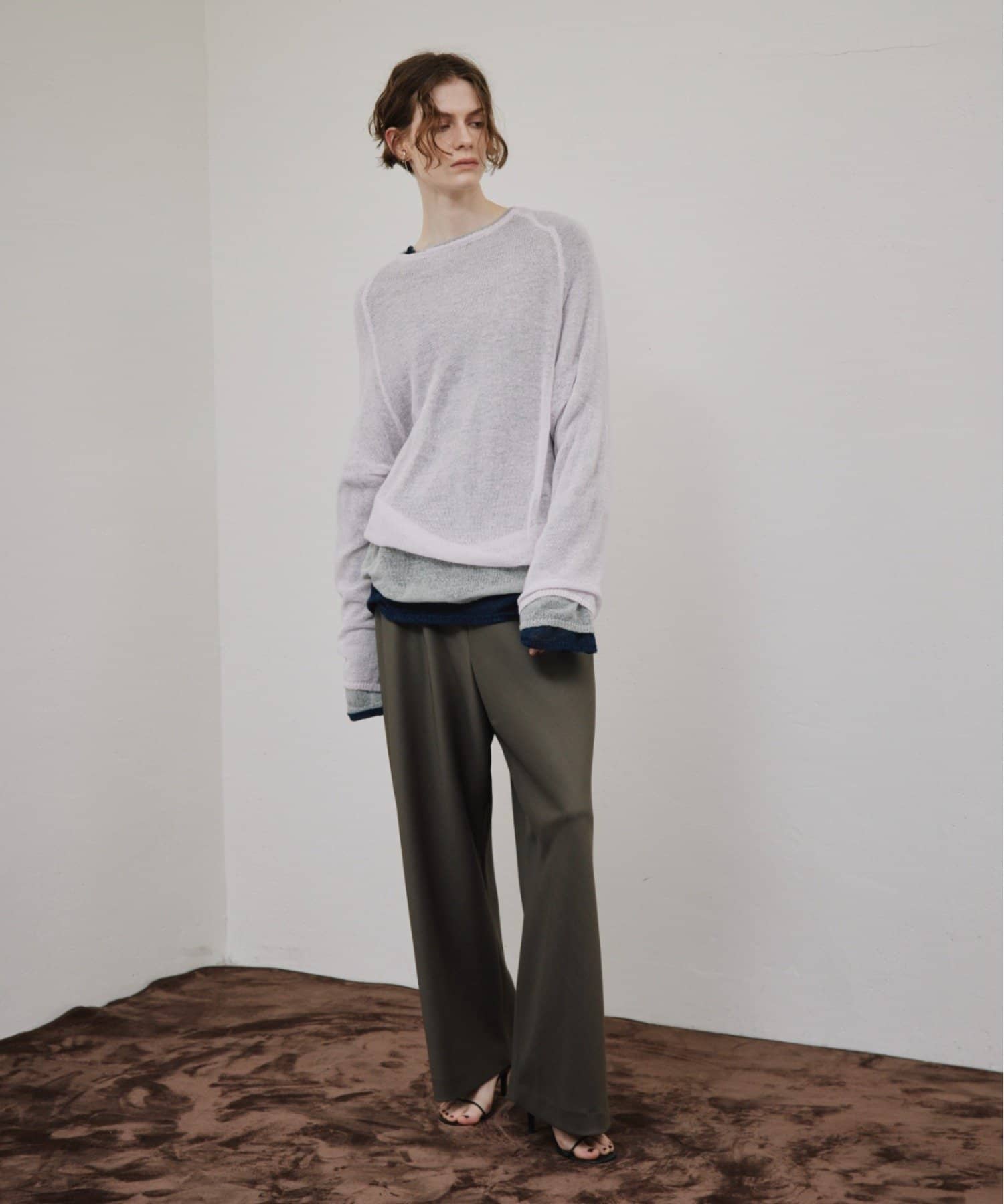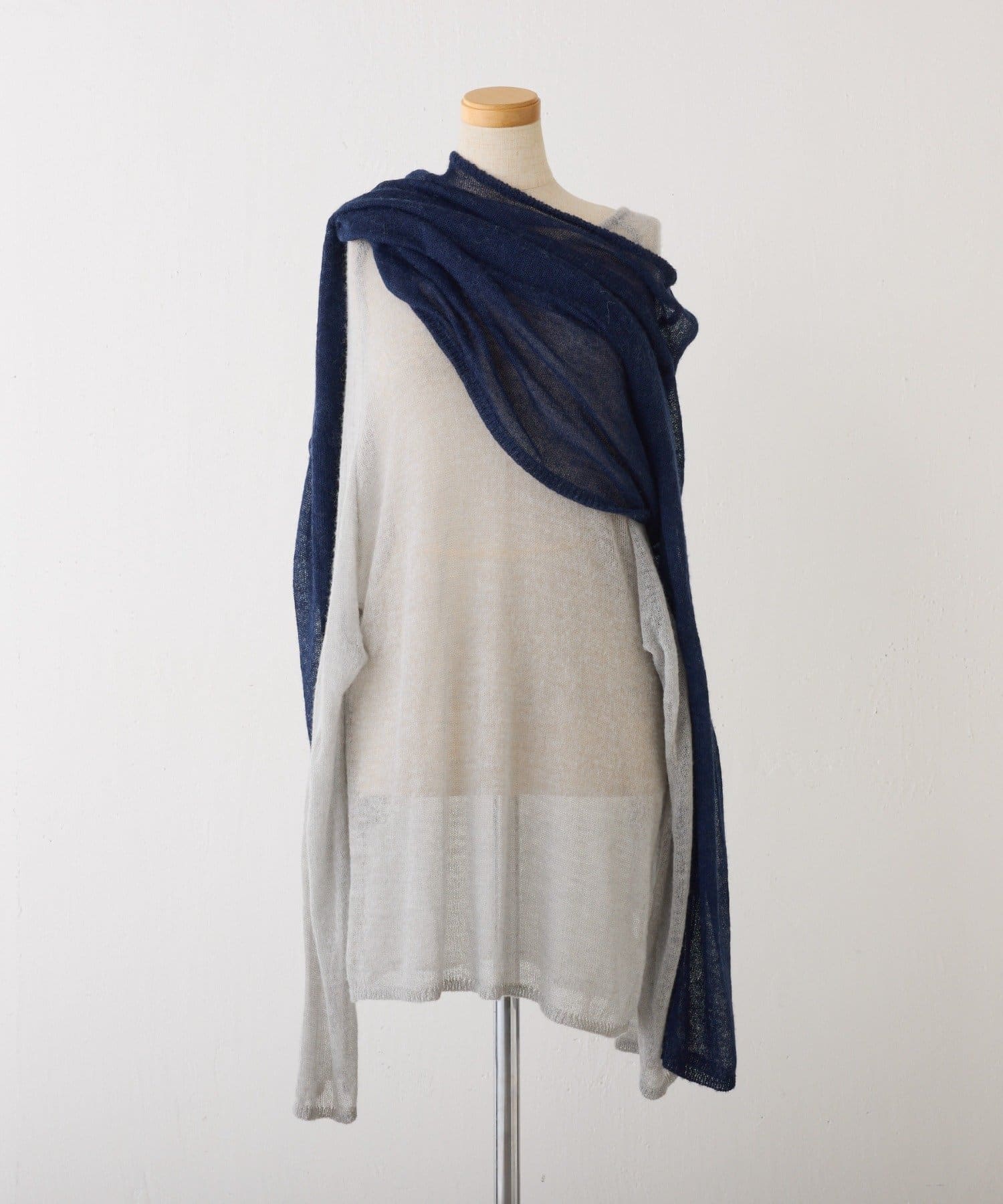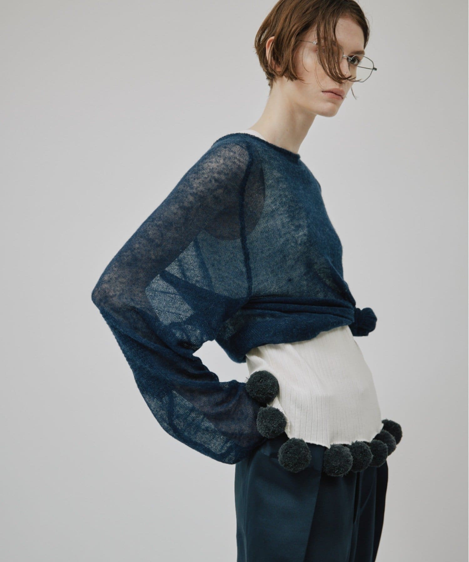 ・アンゴラ混の細番の糸をダウンゲージで編むことでシアー感を出したニット。
