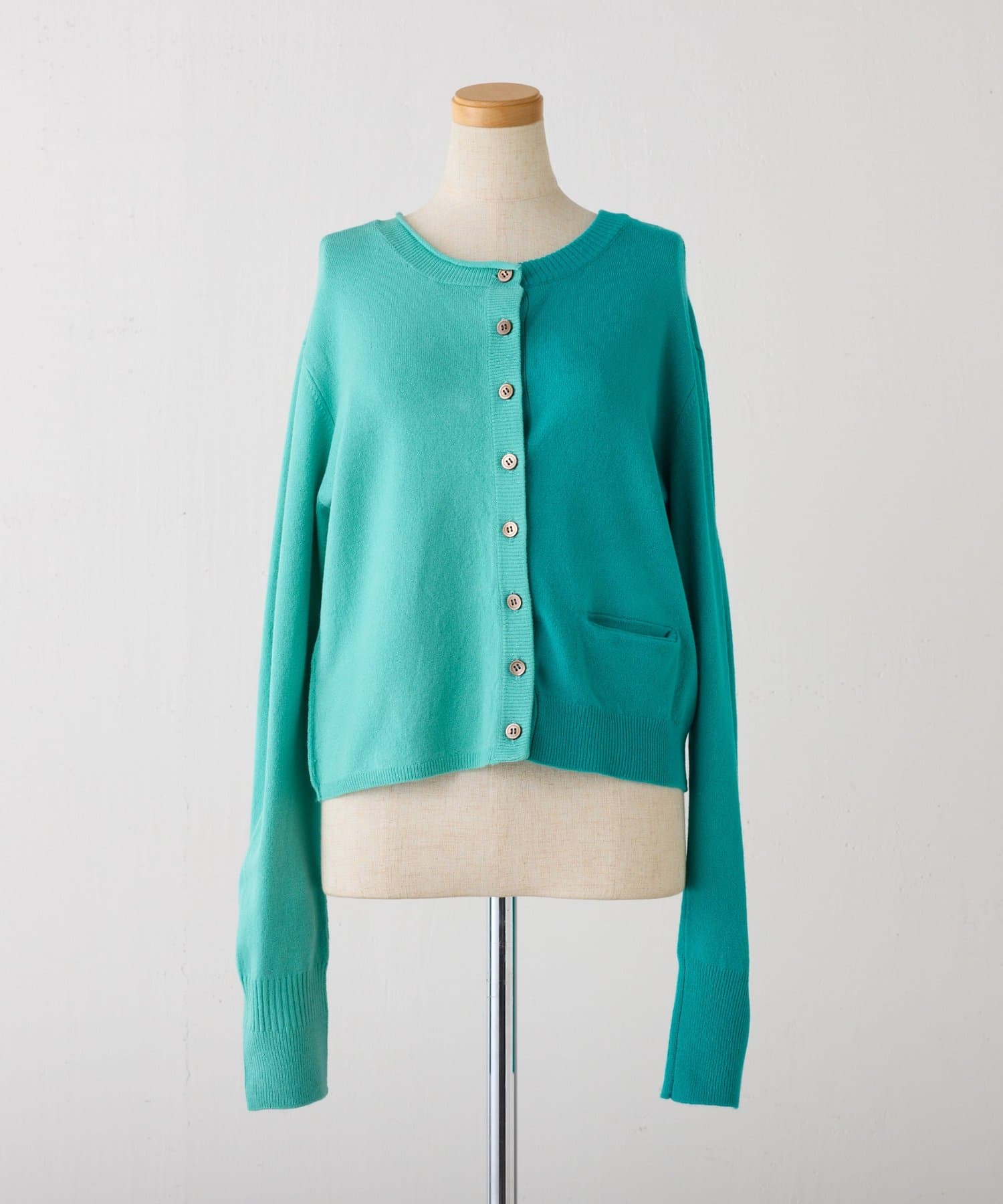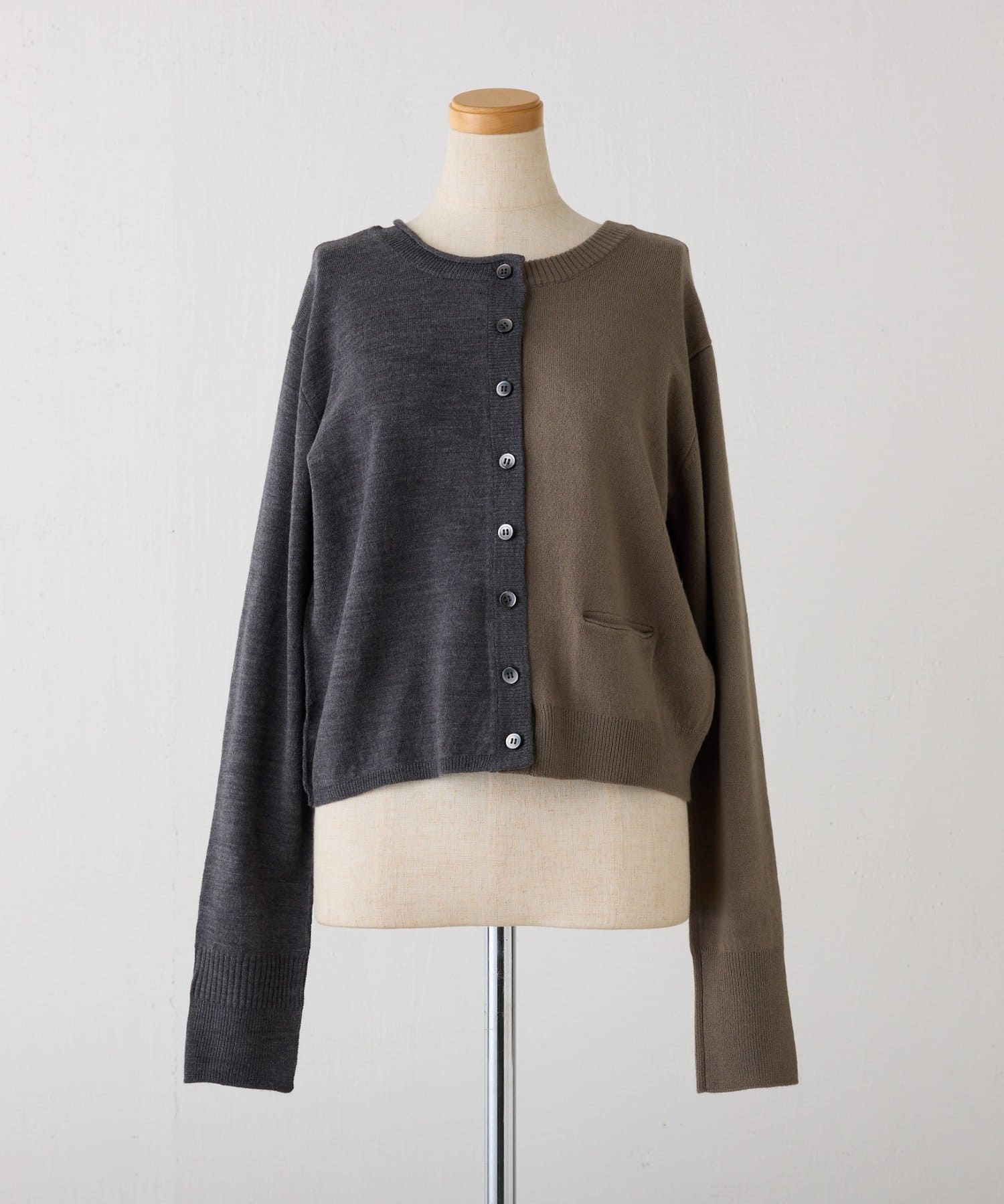 ・半身はそれぞれ衿ぐりや袖口・裾・前立ての仕様を変えているので組み合わせたときにさりげなくアシンメトリーに。