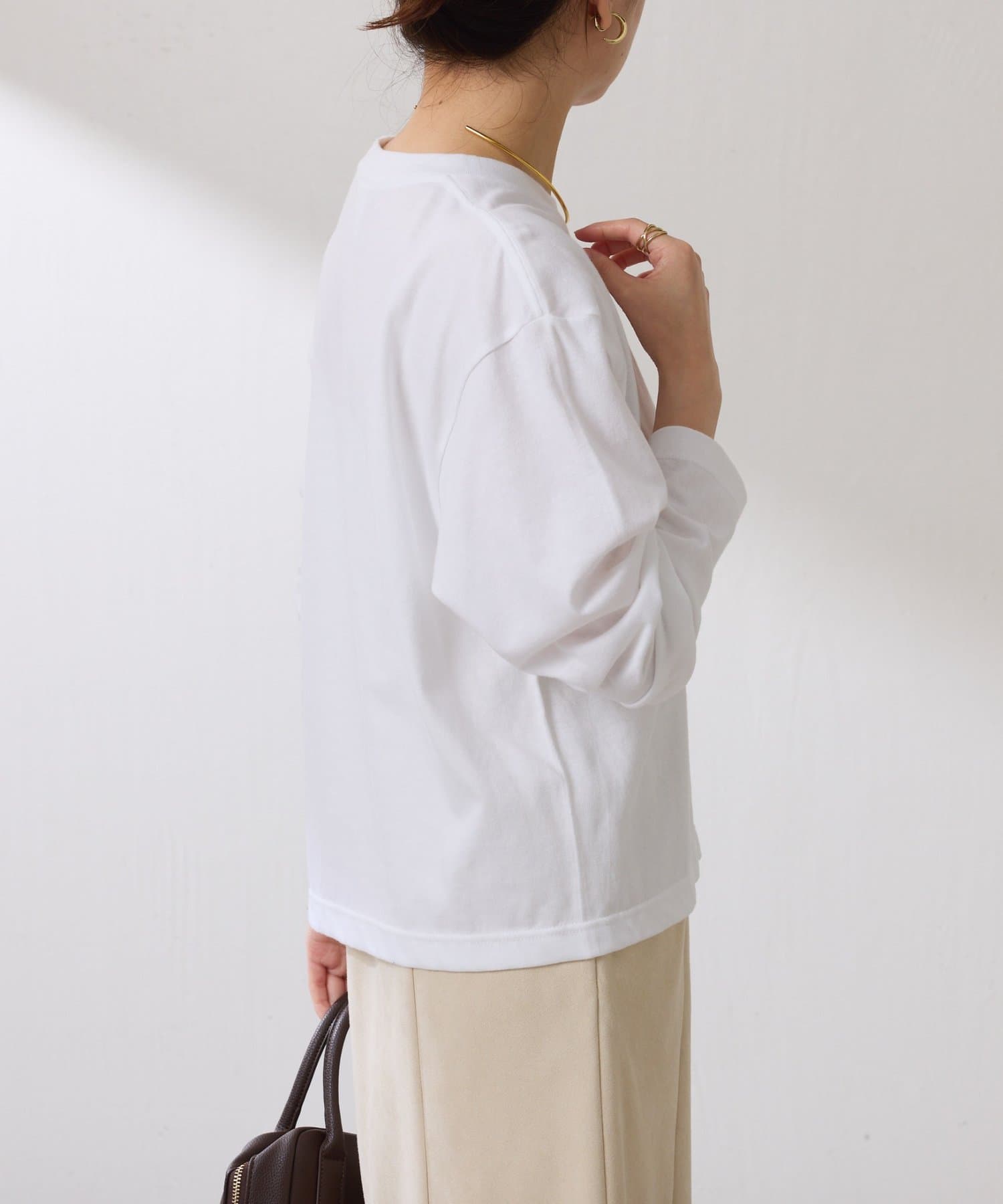 ・程よくゆとりのあるサイジングで、体のラインは拾わずにインしなくてもすっきり着られます。