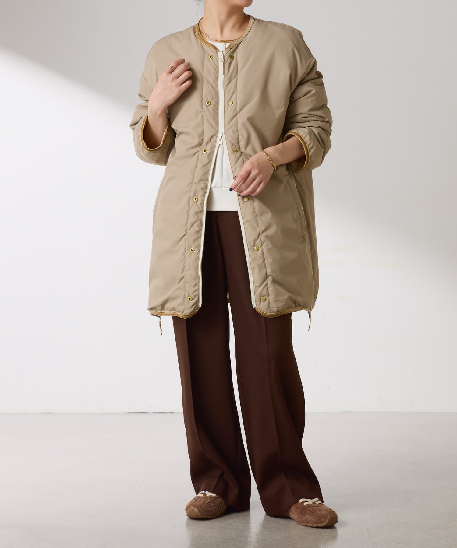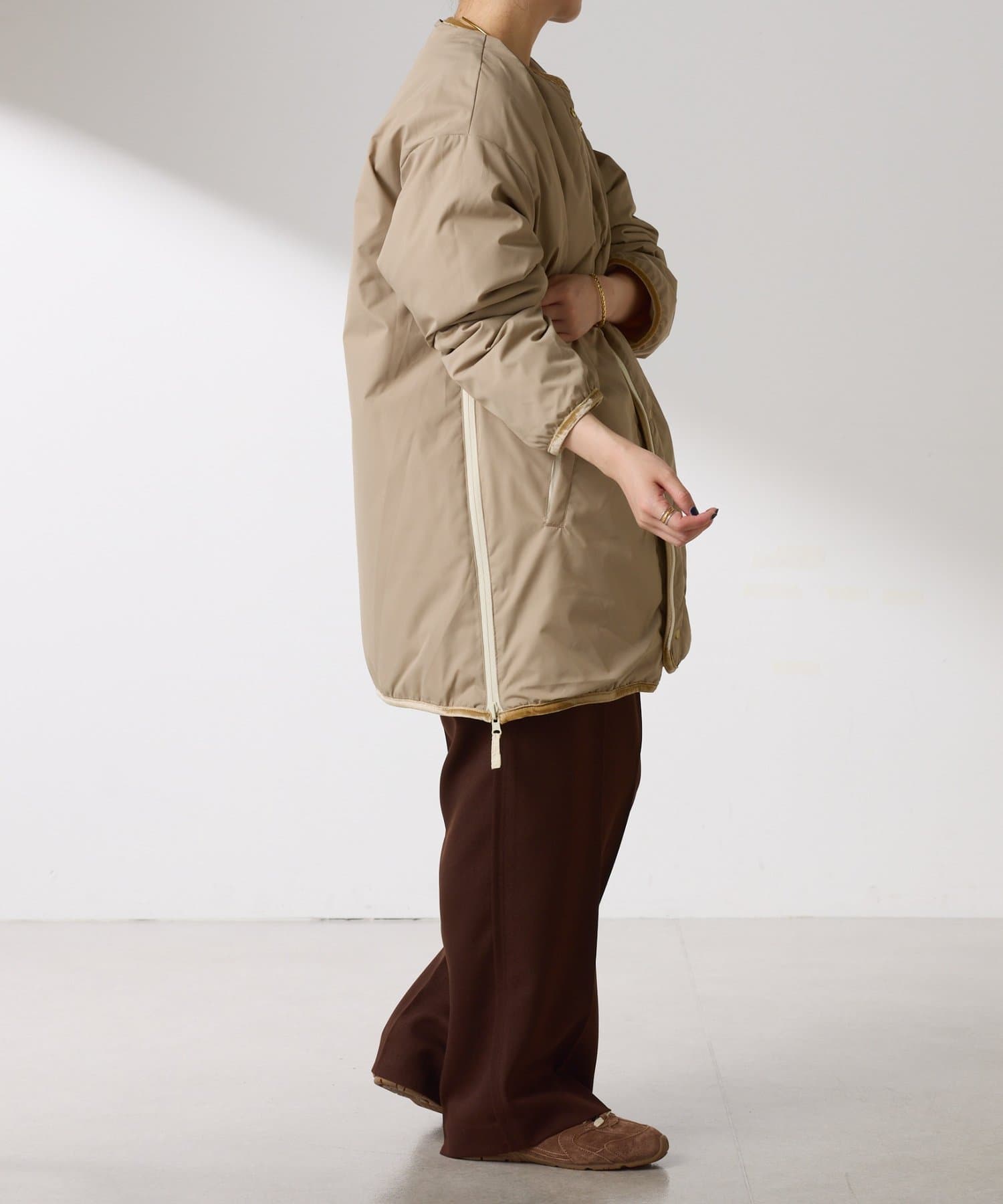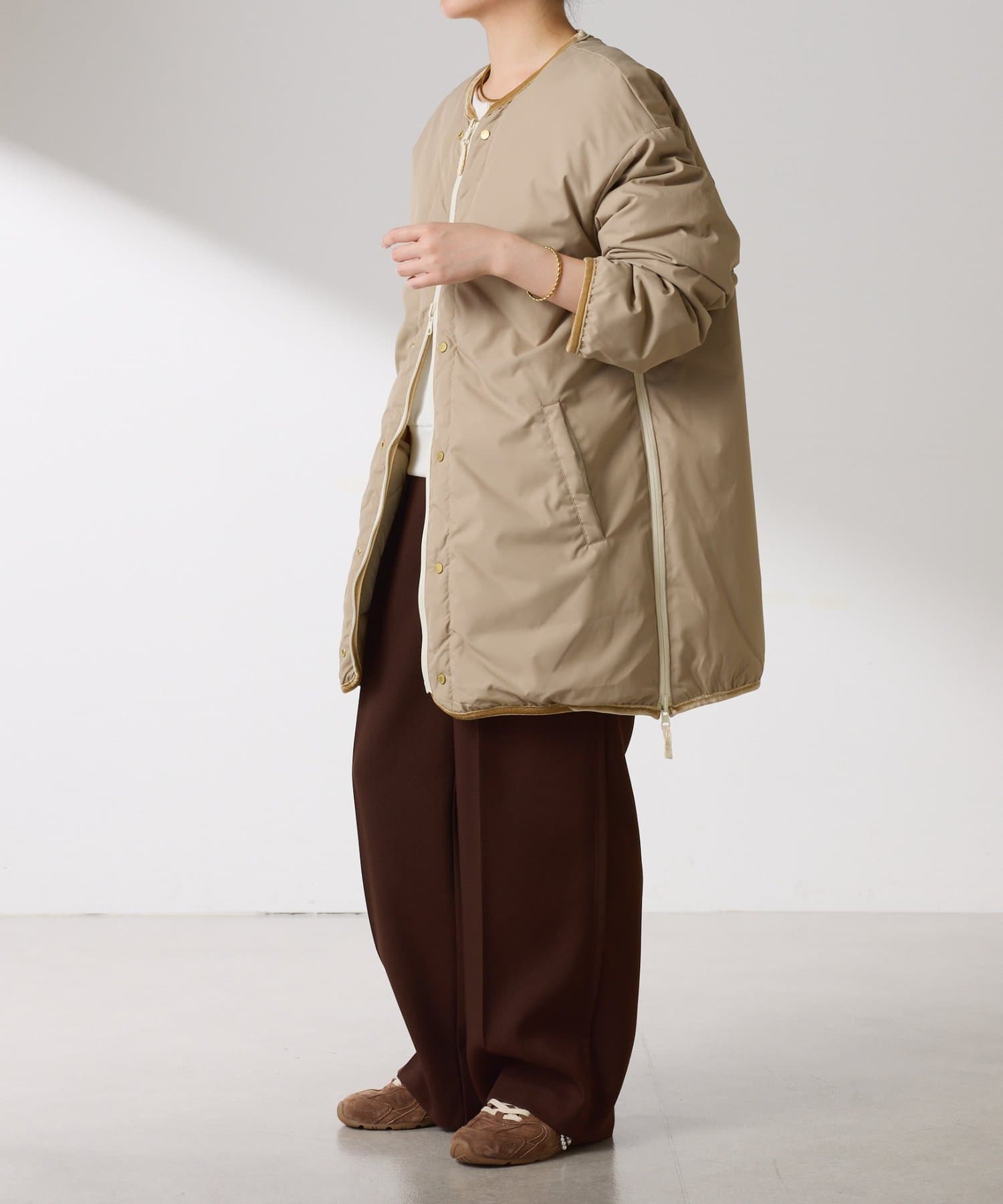 ・きれいめなスタイルとダウンのリバーシブルでオンオフ使えます。