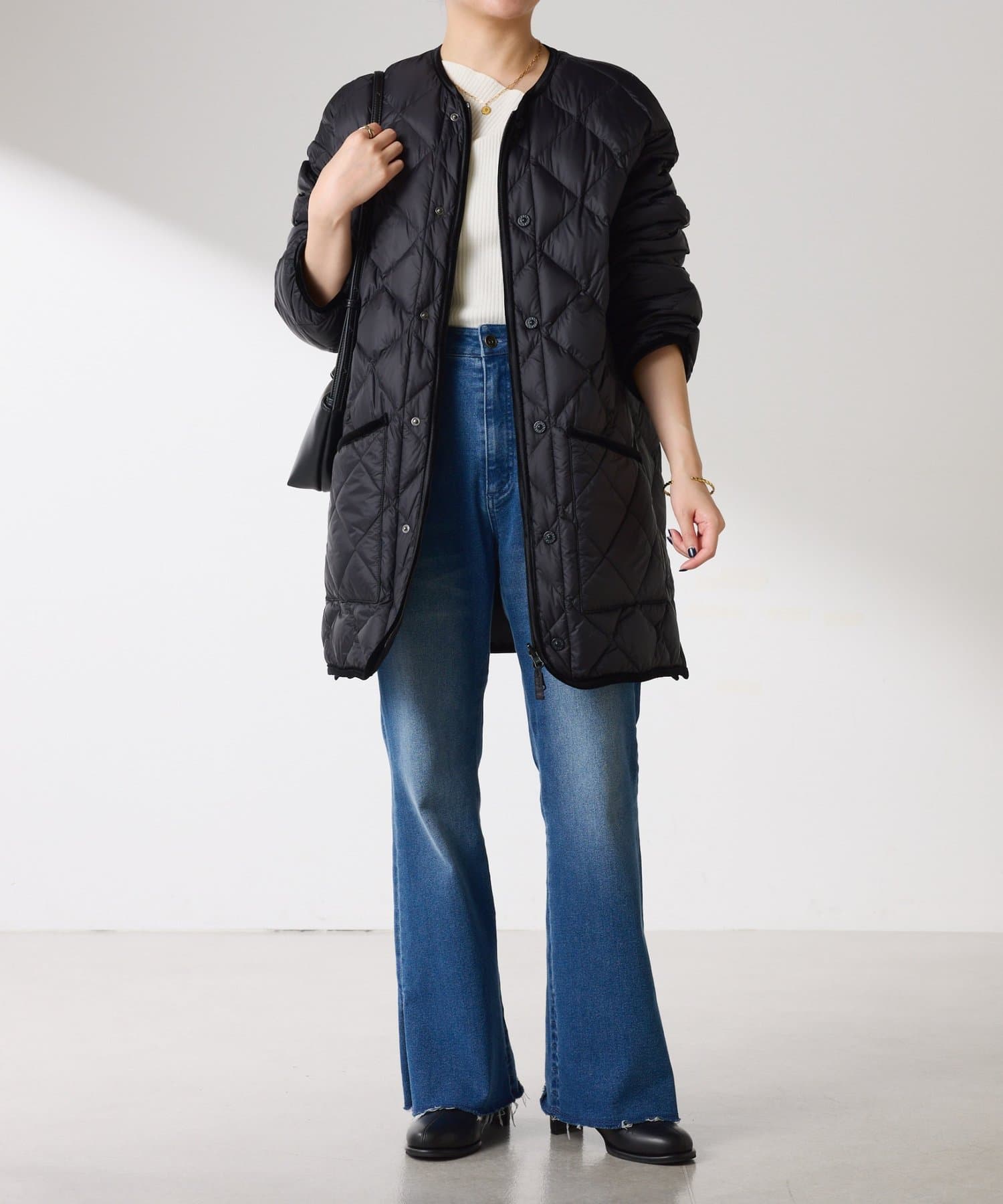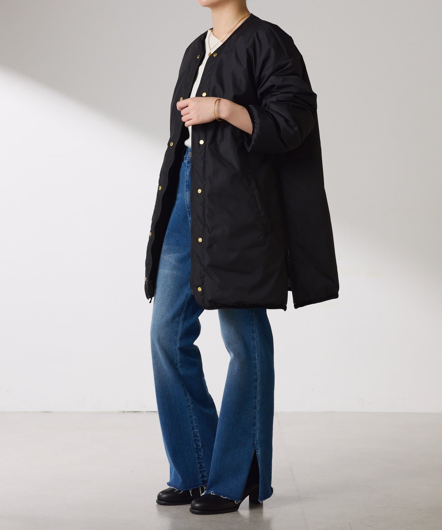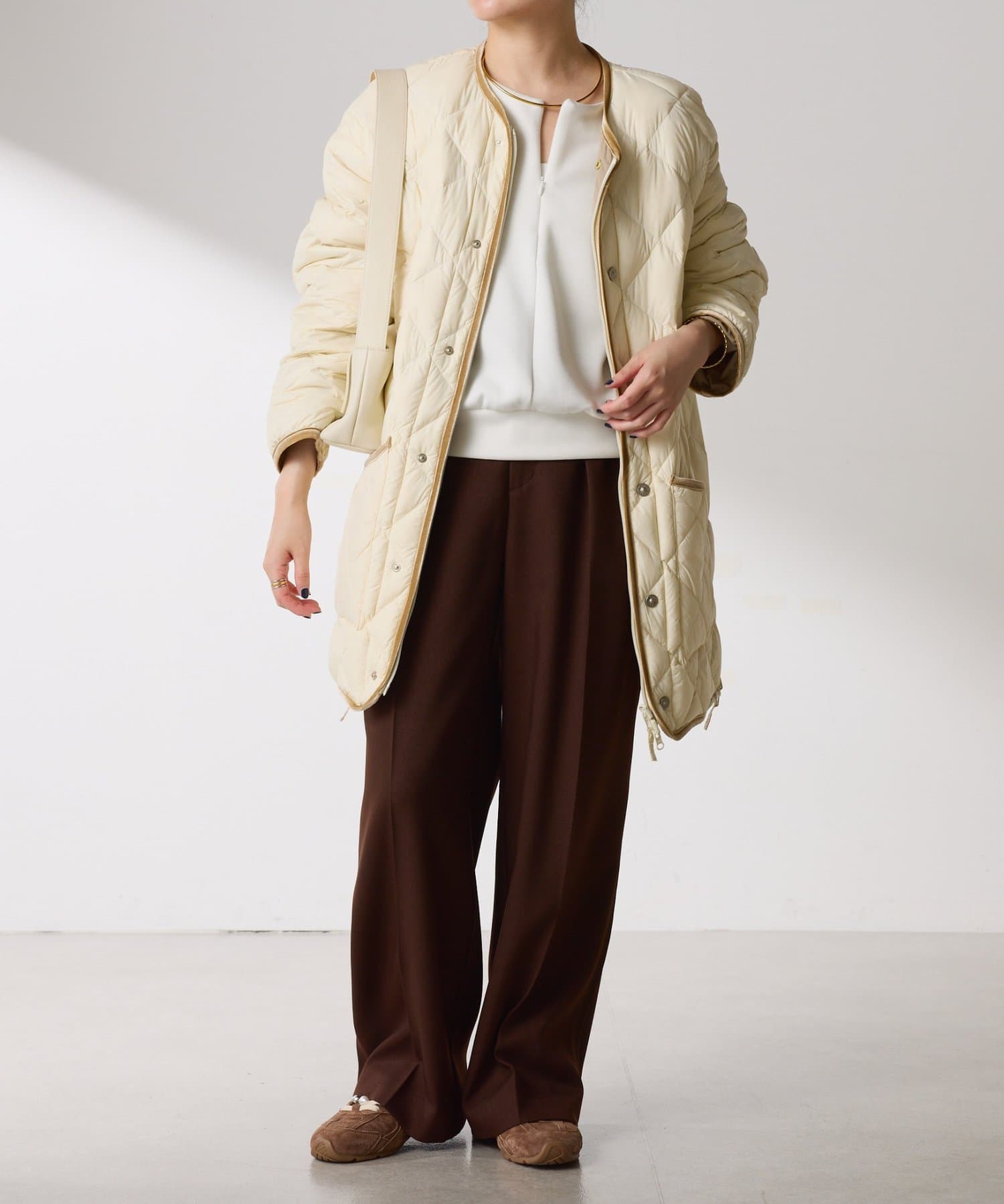 シンプルなデザインと上品な細部がオンにもオフにも馴染み、どんなアイテムともコーディネートしやすい、機能的で日常性の高いアイテムです。