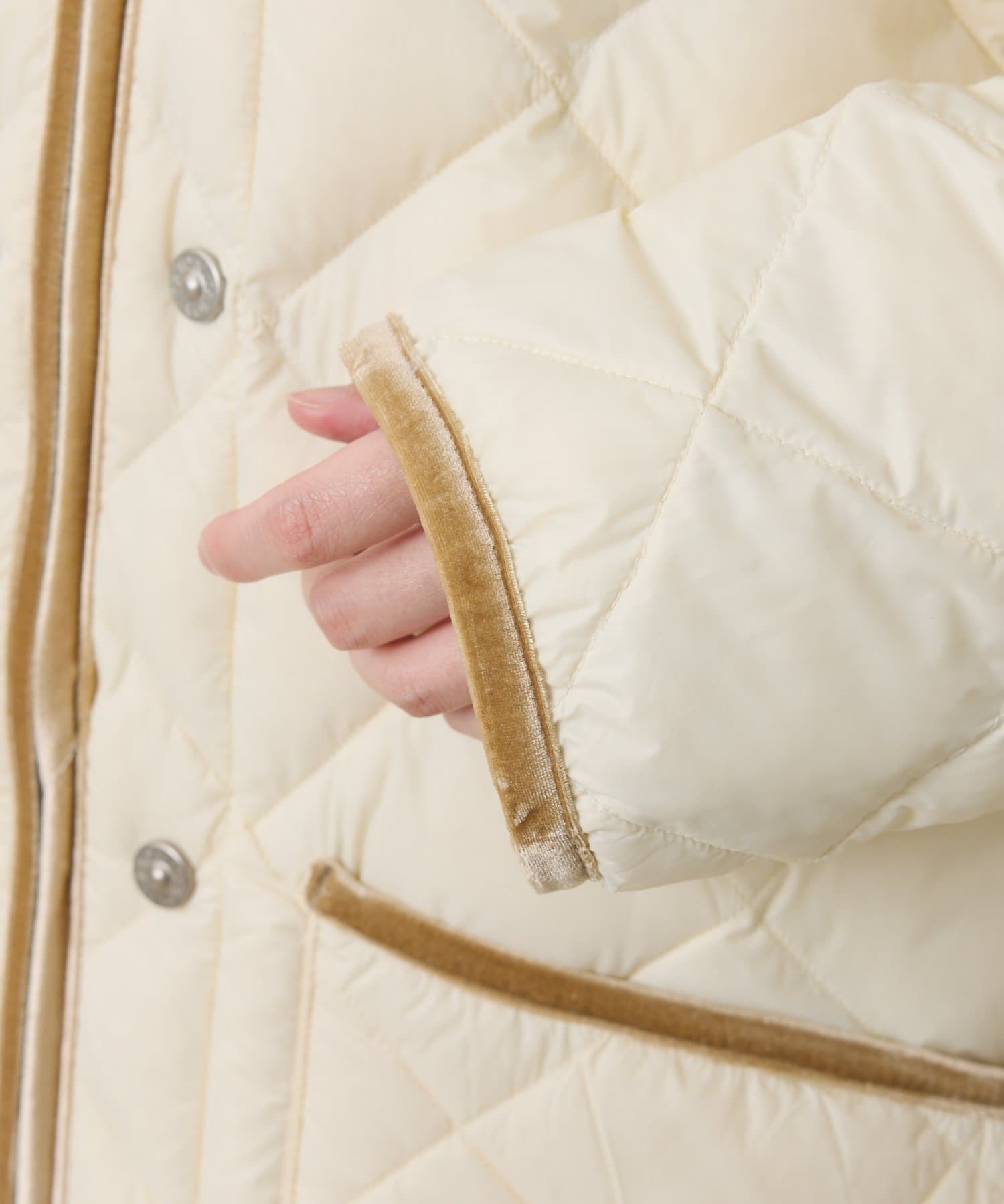 ・ベロア素材のパイピングが上品さを演出し、お仕事やきちんとシーンでも活躍します。