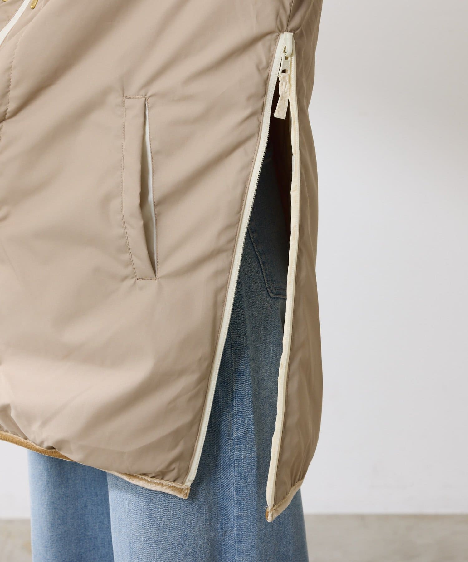 ・サイドにはファスナーがついており、気温調節ができます