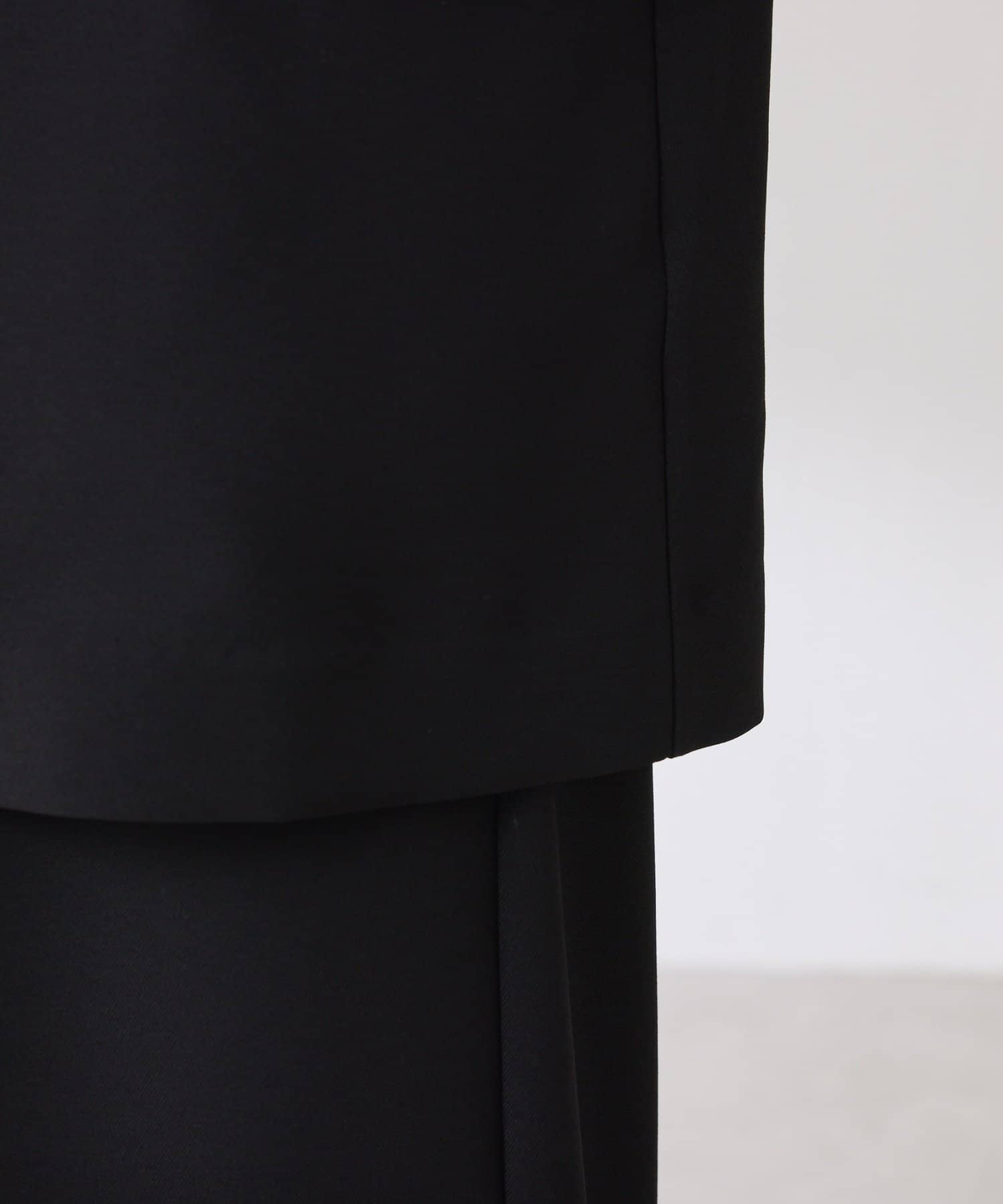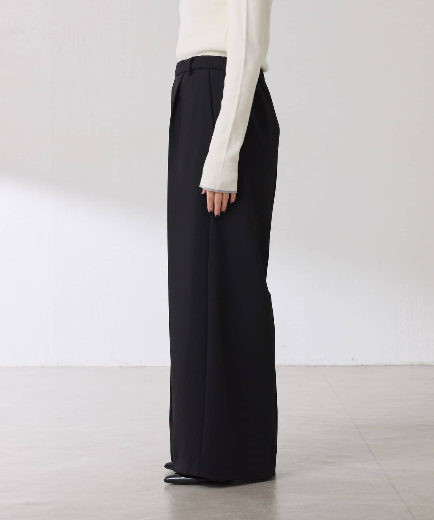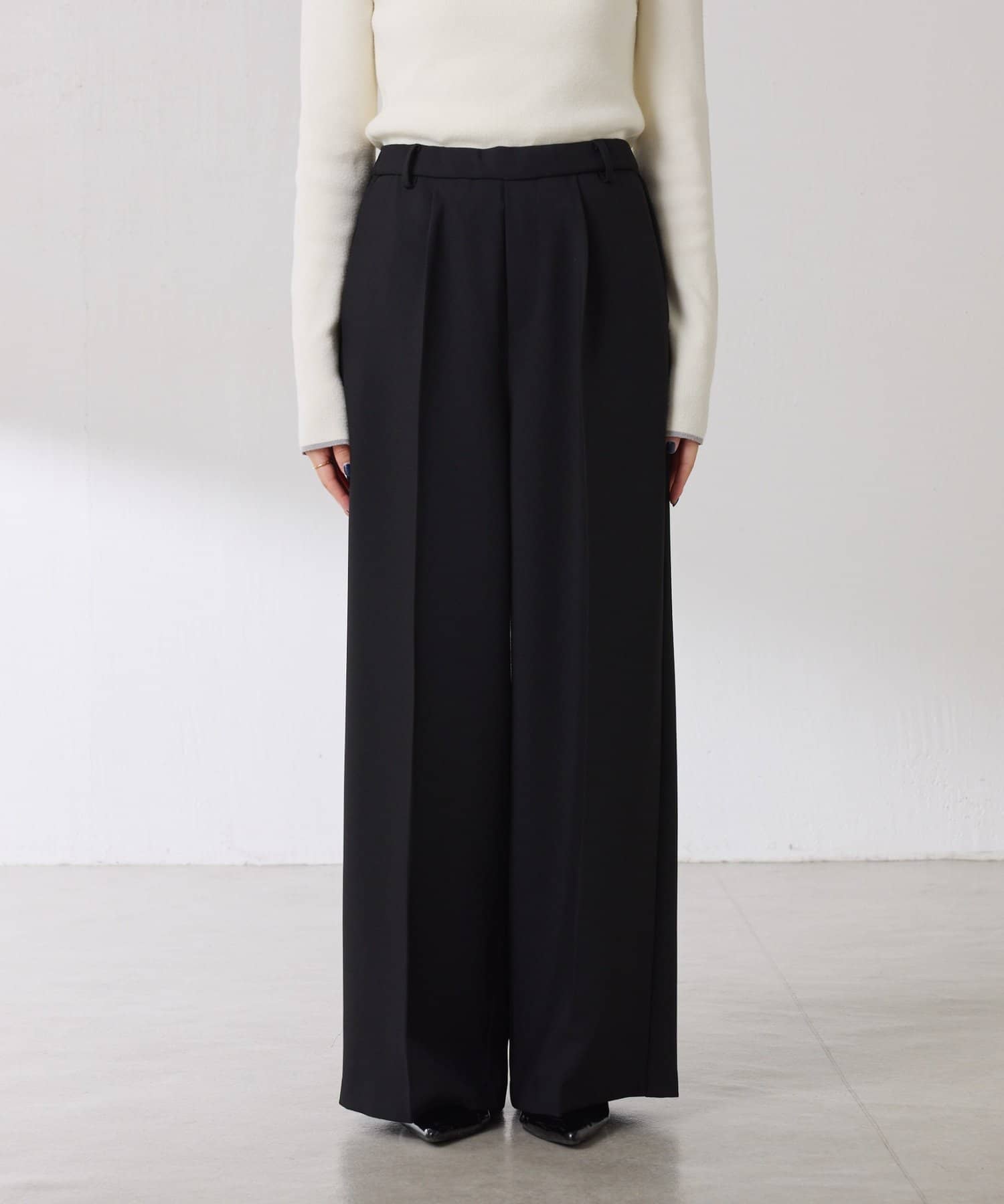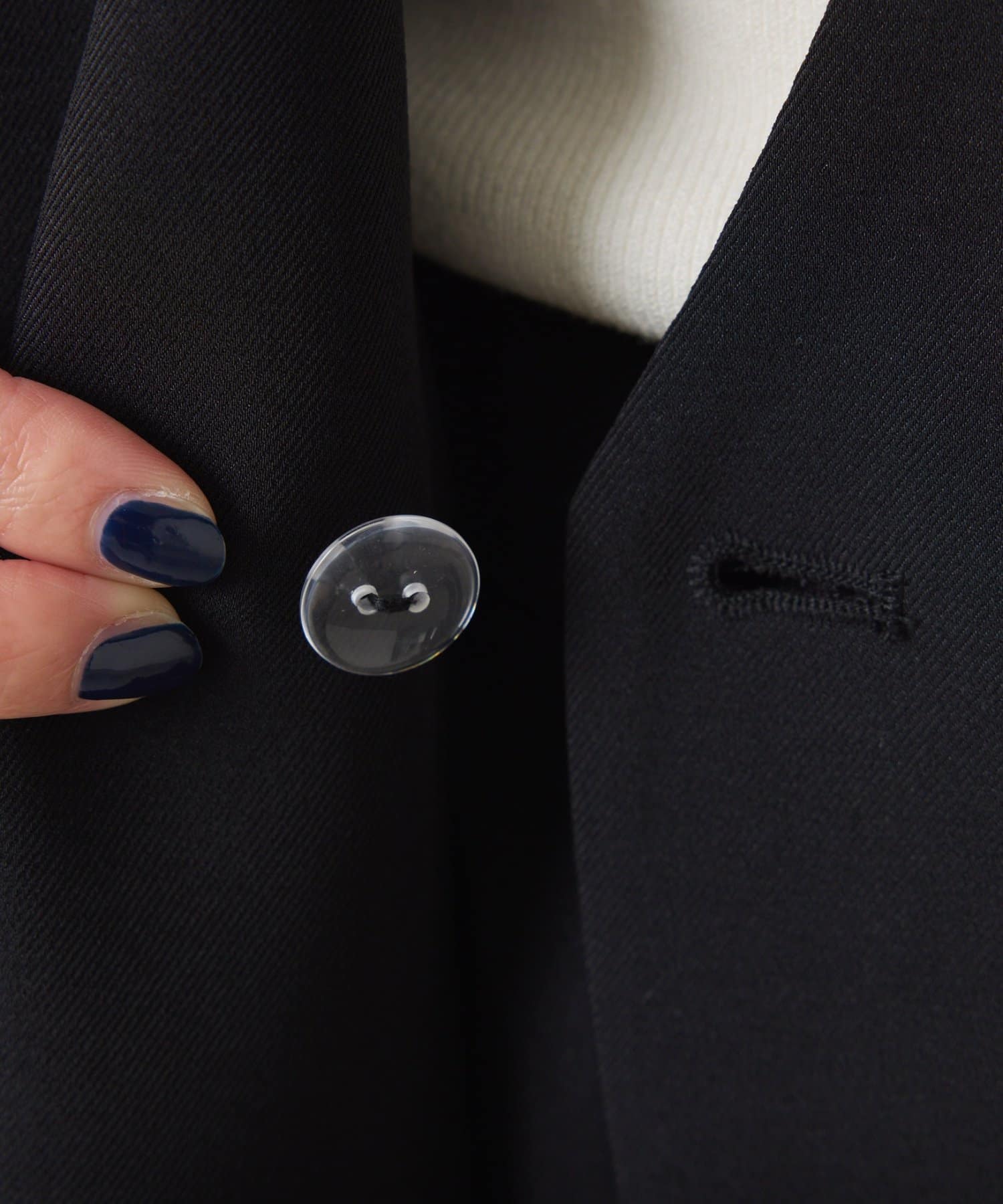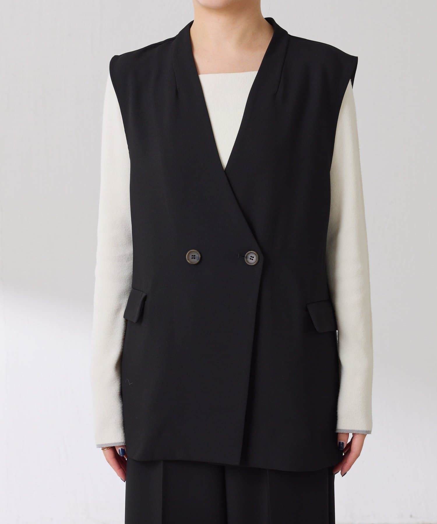 ・ノーカラーですっきり着られるジレとワイドパンツのセットアイテム。