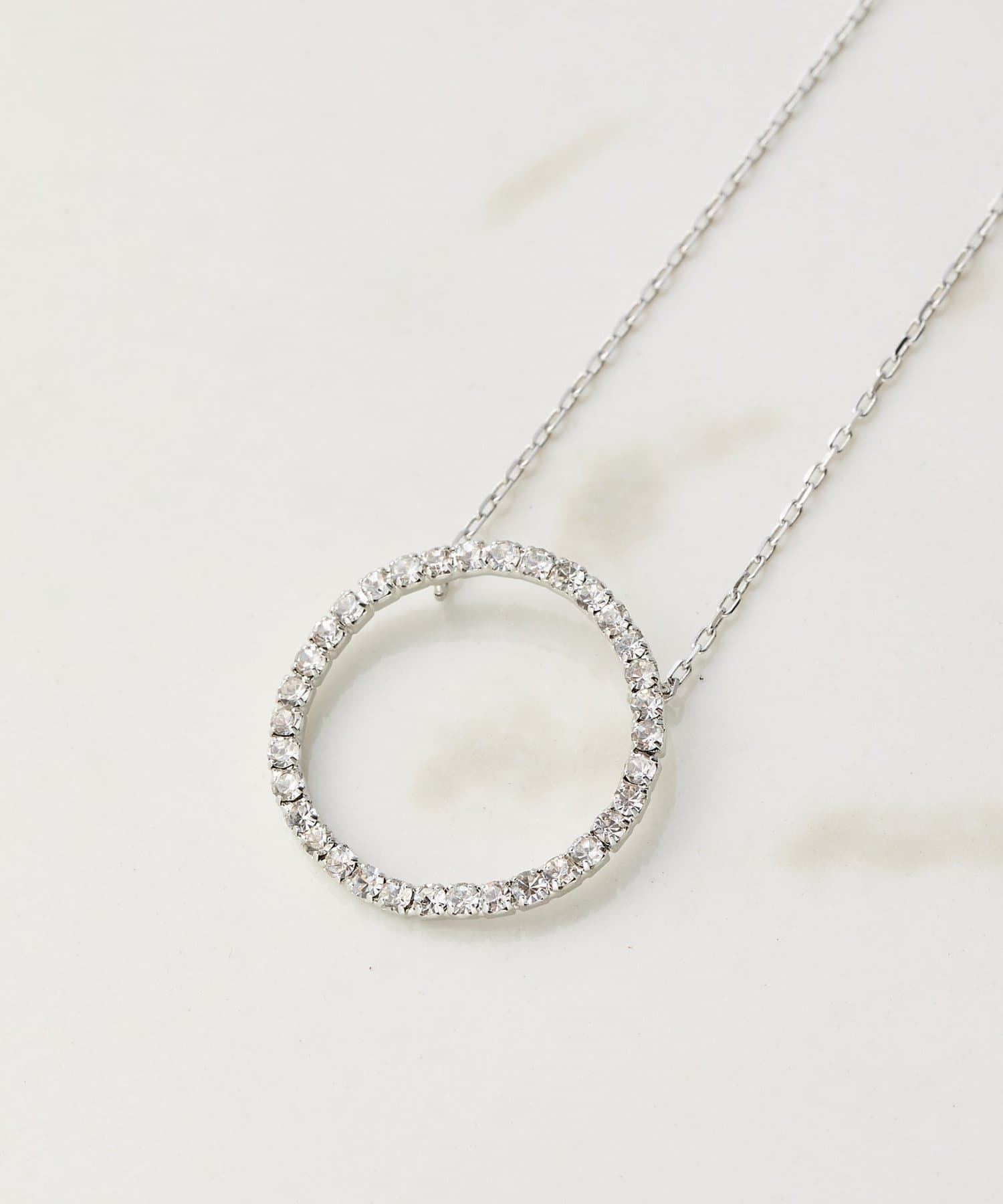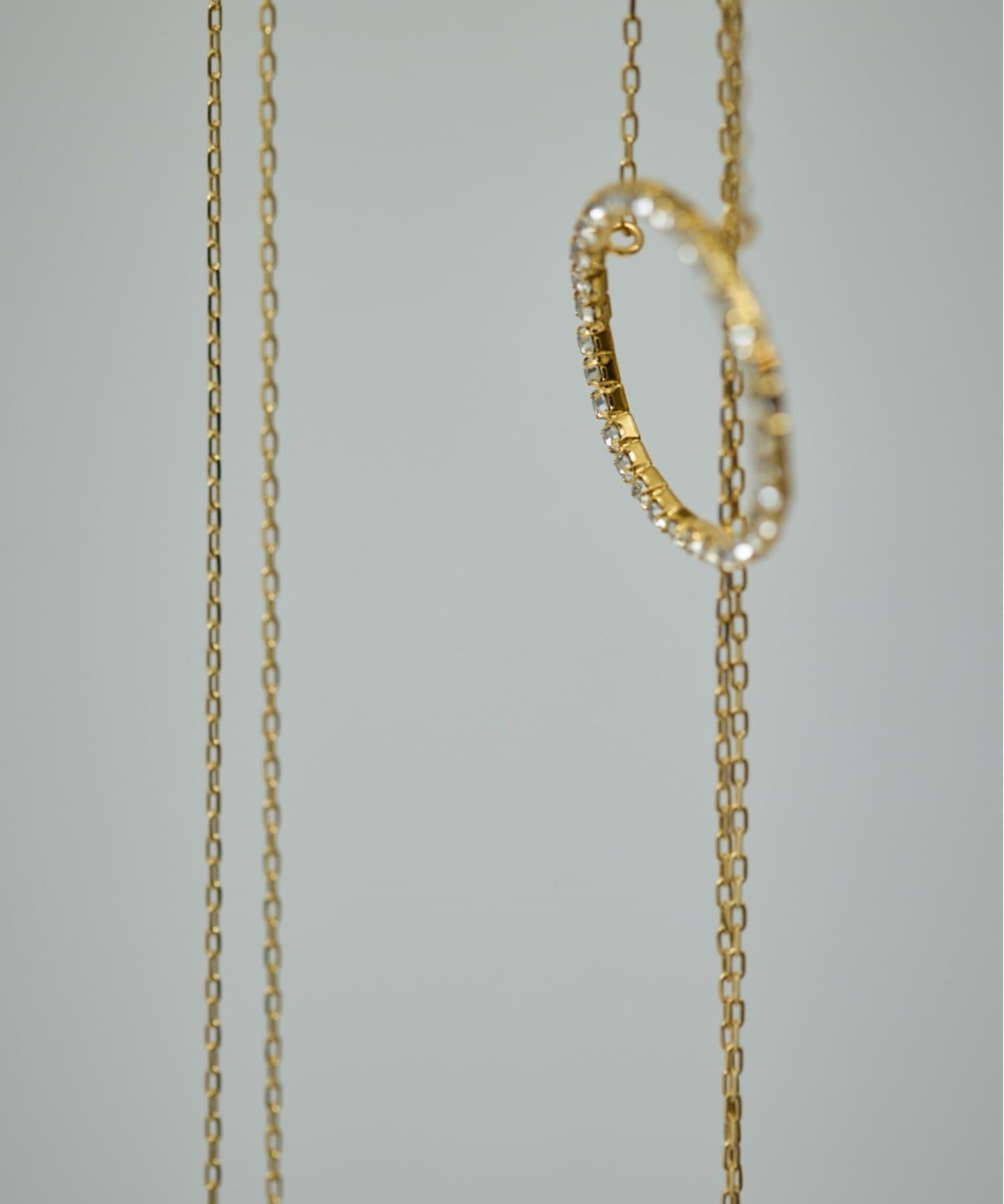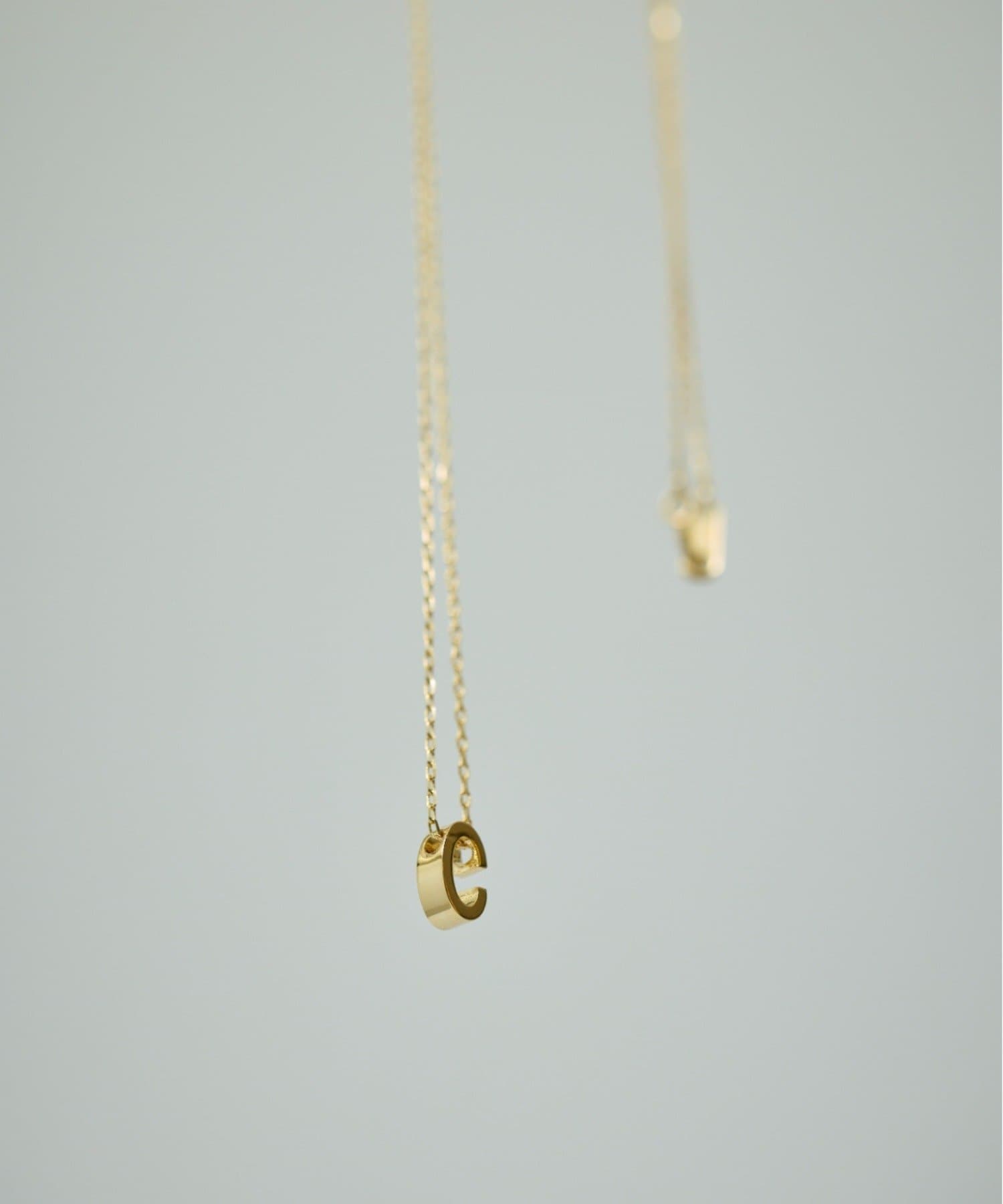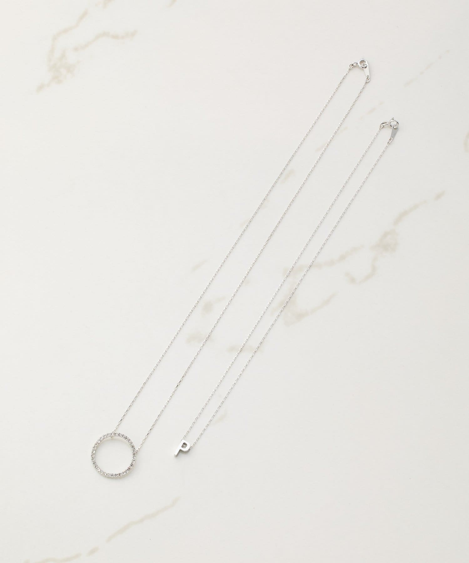 ・アルファベットモチーフとガラスのサークルモチーフのネックレスをセットにしました。