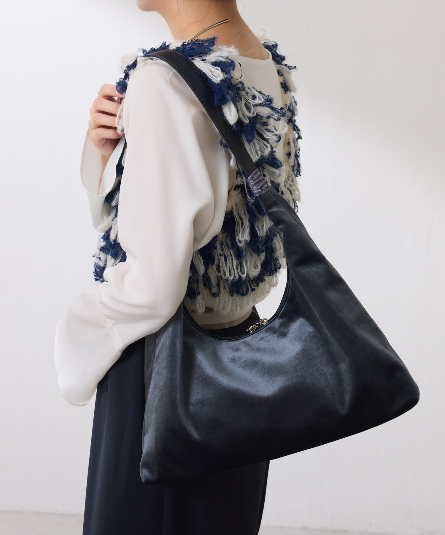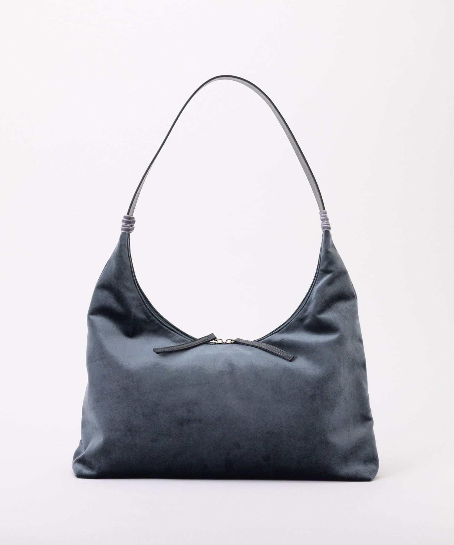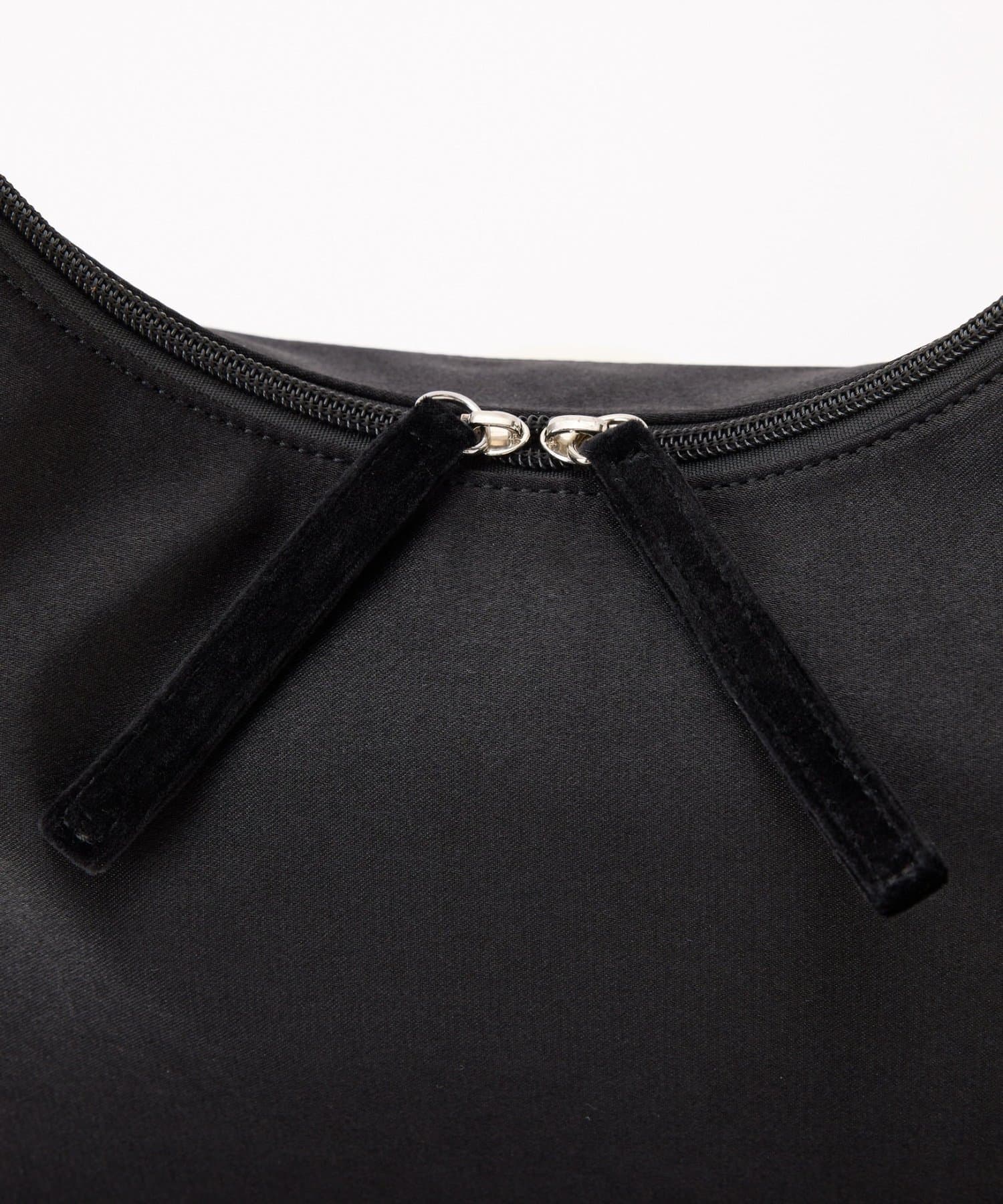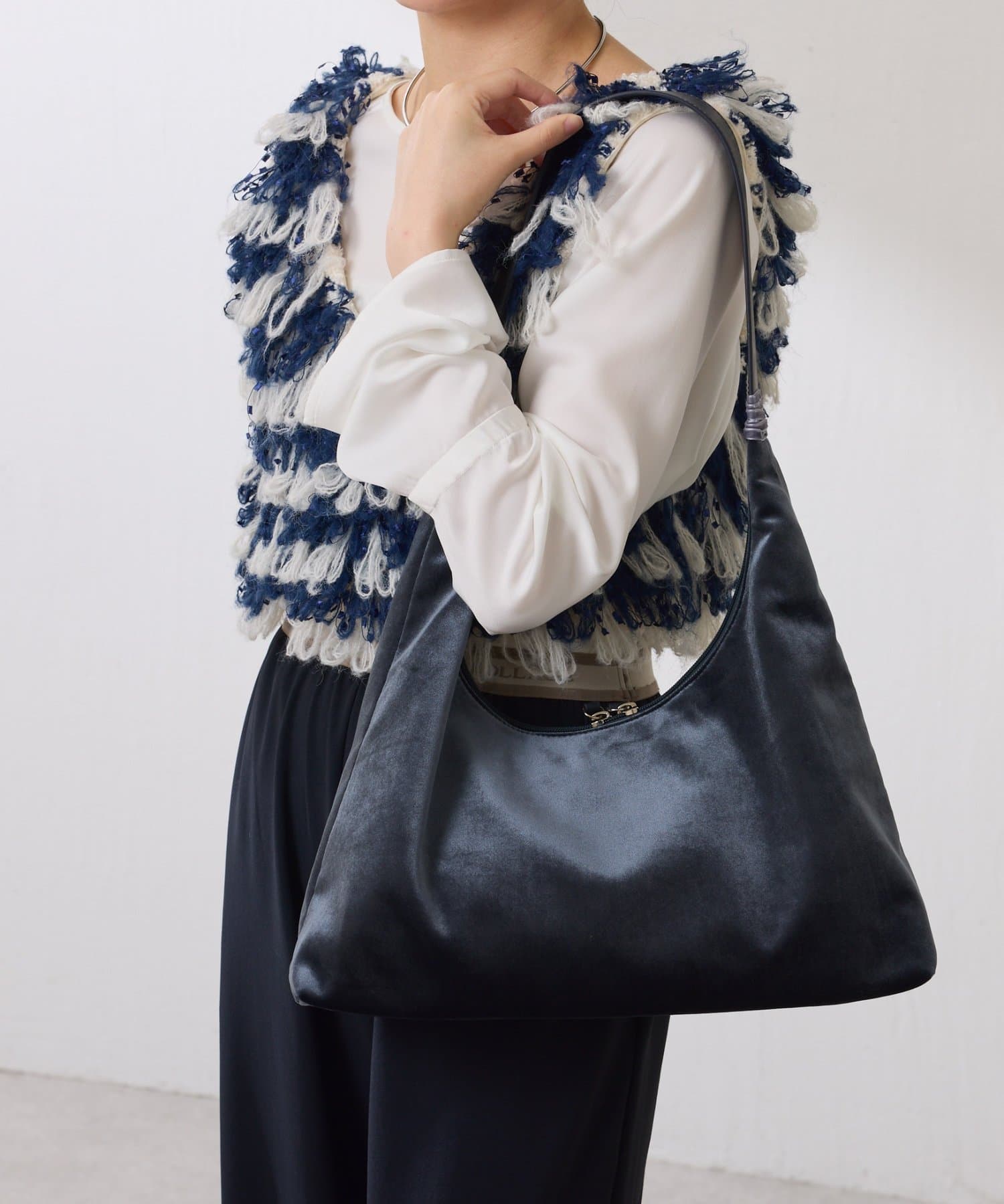 ・サテンとベロアの生地を使用した女性らしい印象で持てるホーボーバッグ。