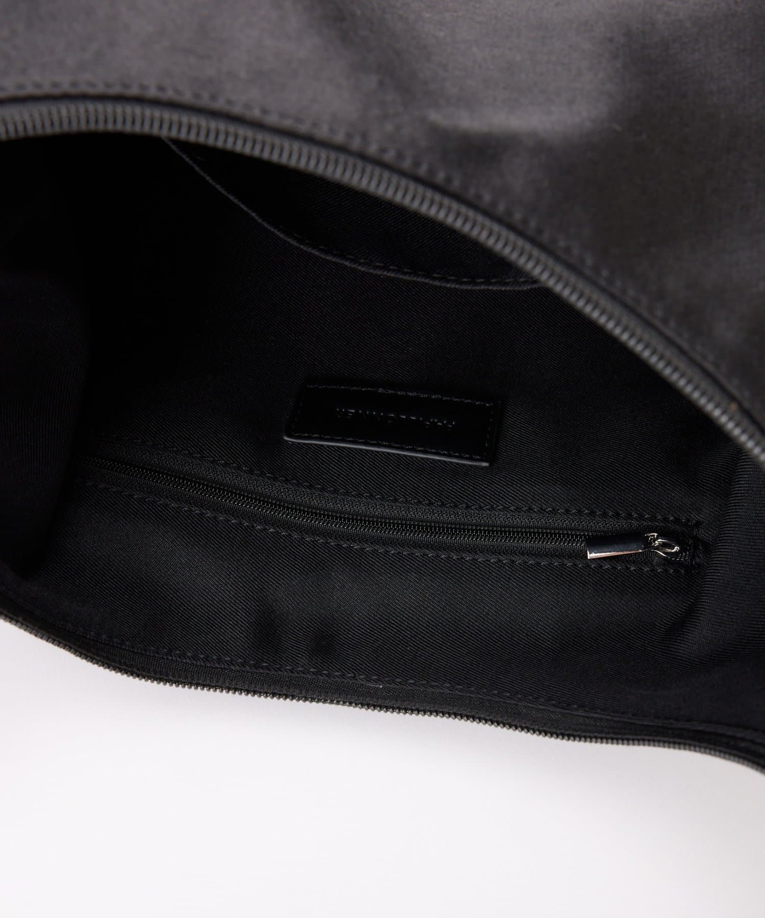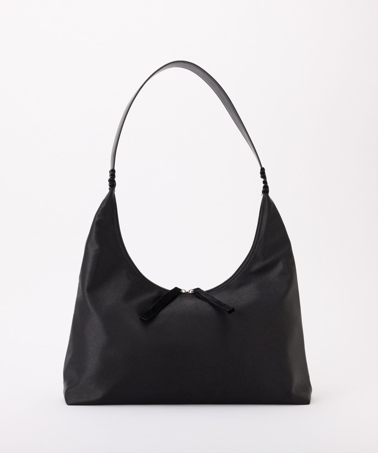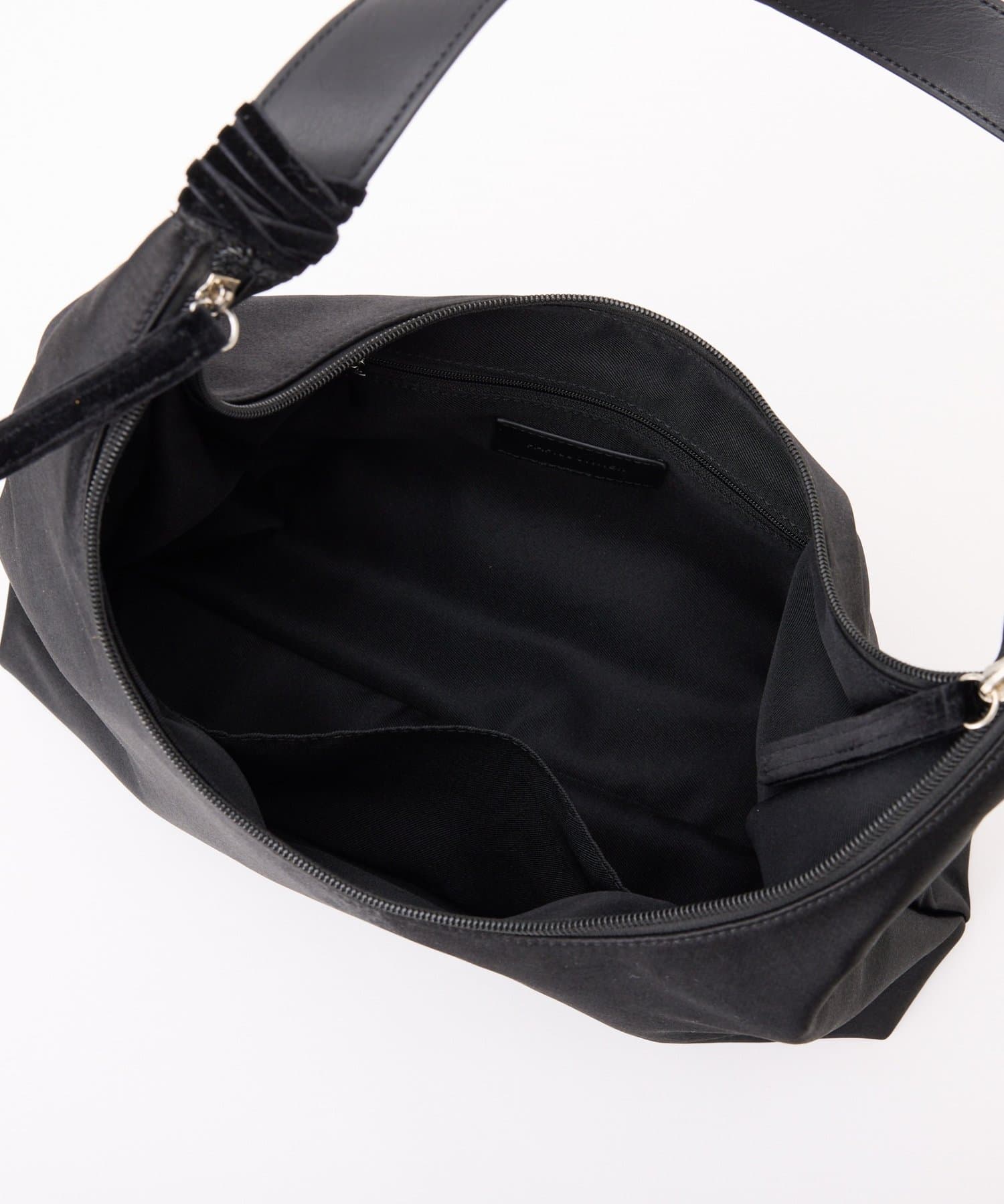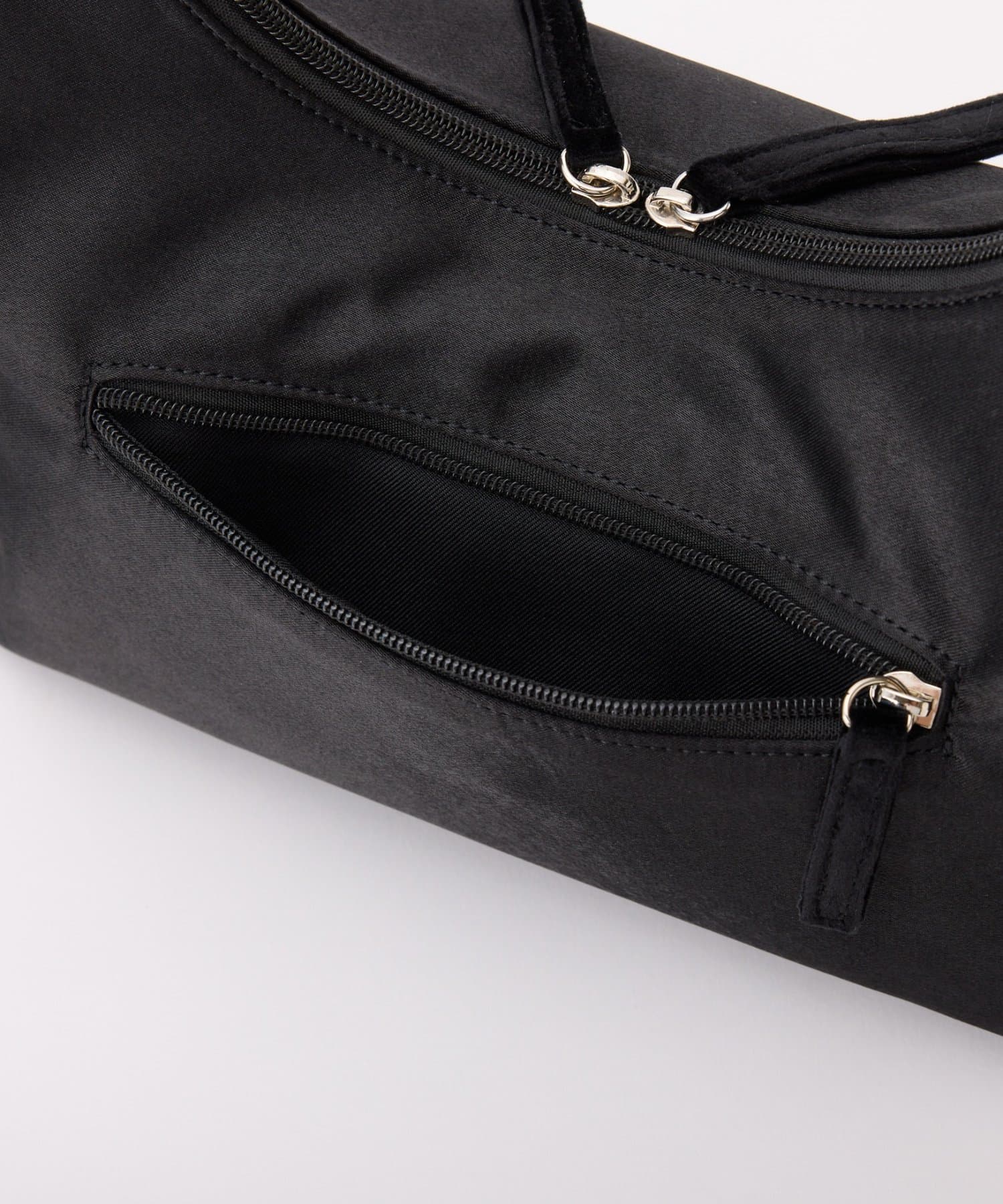 ・サテンとベロアの生地を使用した女性らしい印象で持てるホーボーバッグ。