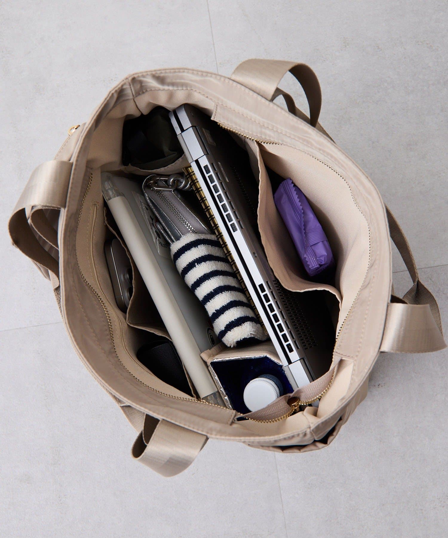A4ファイル、13インチPC、500mlペットボトル、長財布、折り畳み傘、B5サイズノート、ポーチ 、タオルハンカチ