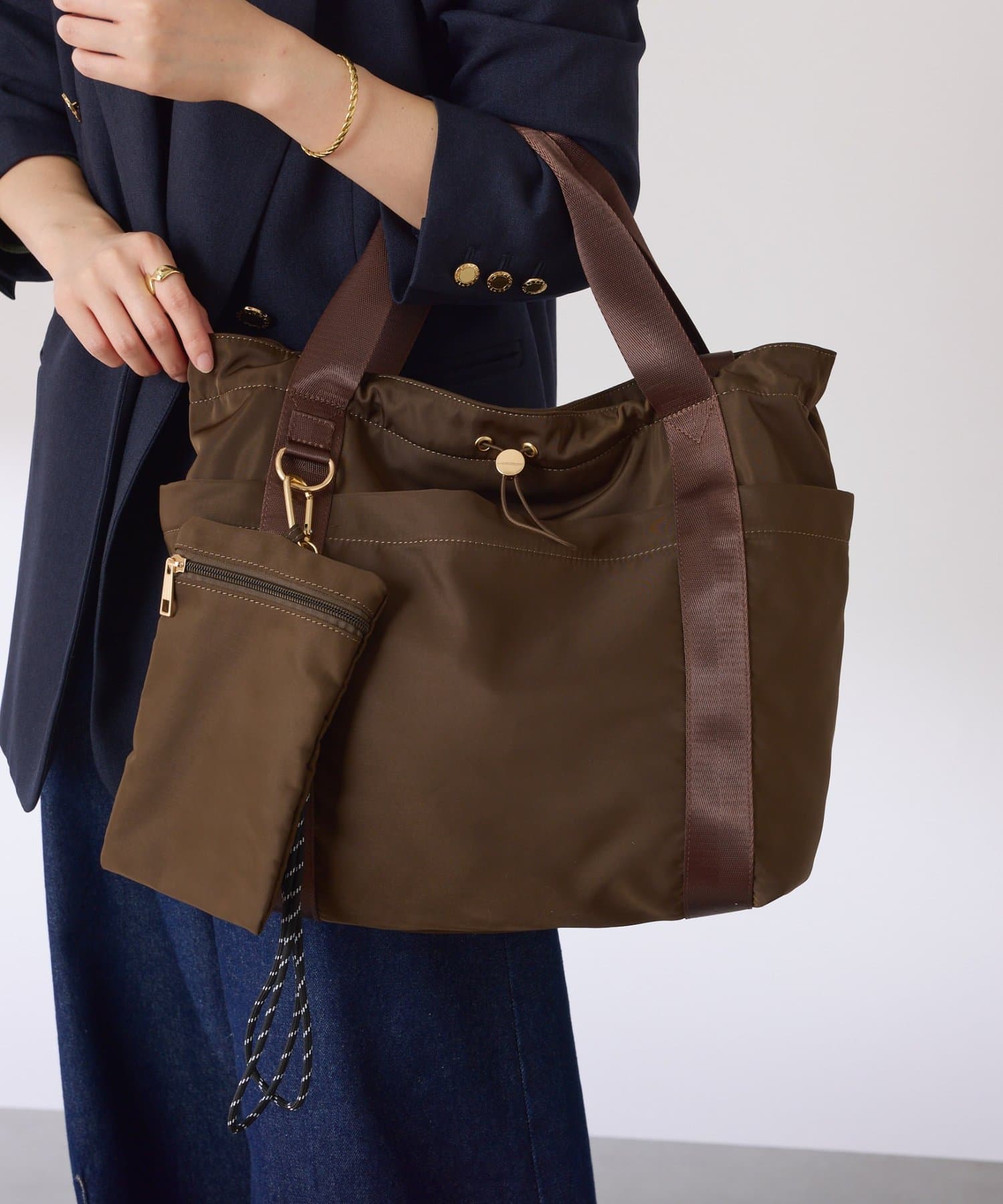 ・持ち手は、肩掛けと手持ちの2種類の仕様。シーンに合わせて持ち方を変えられます。