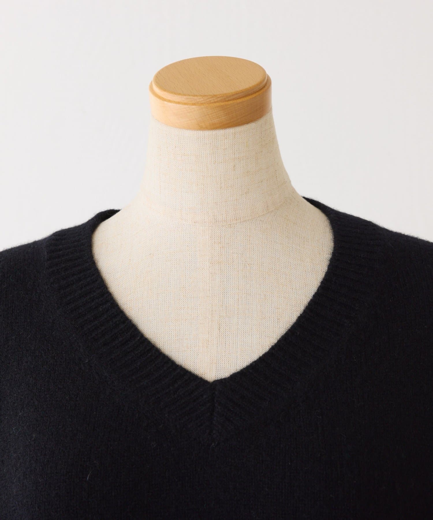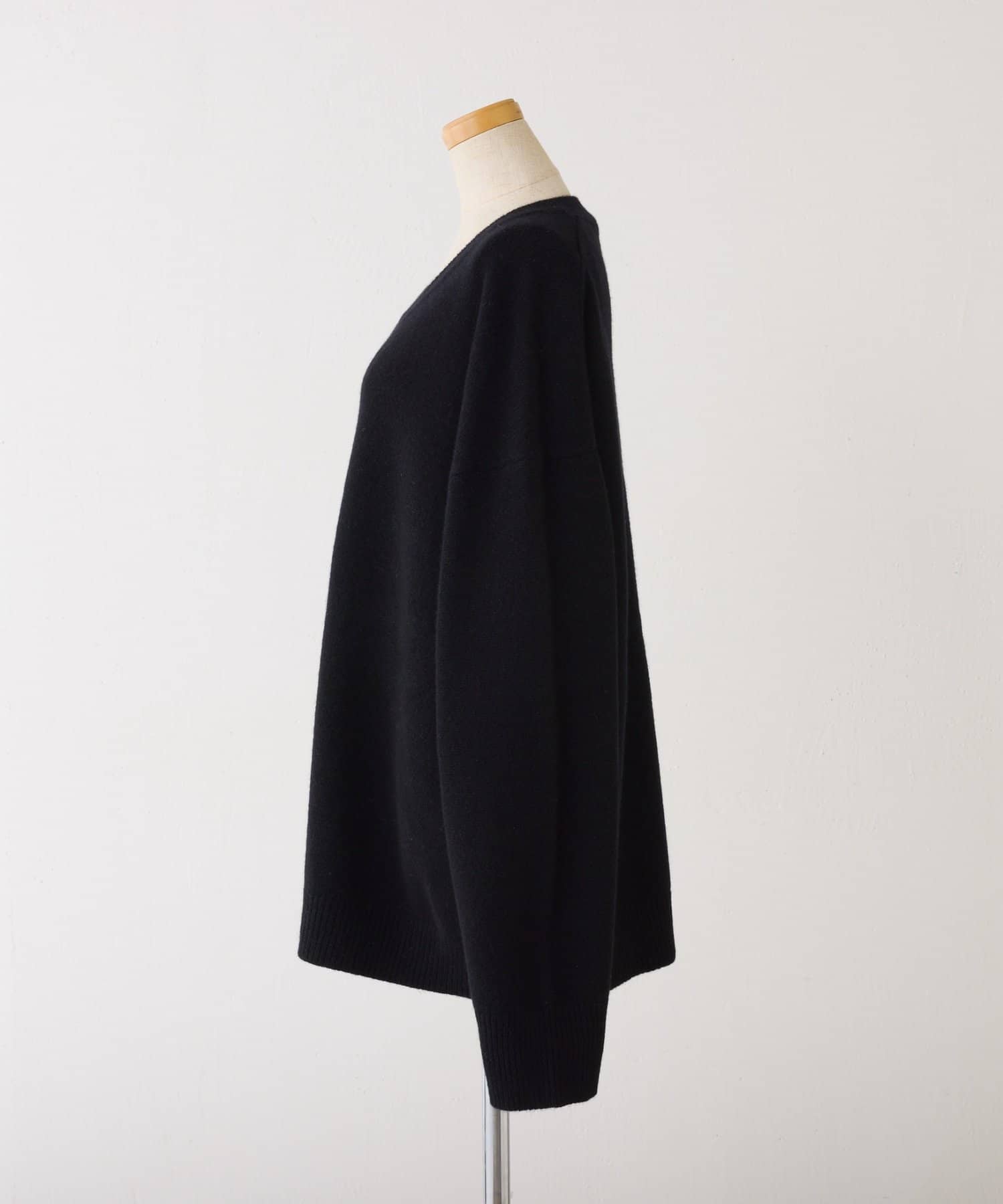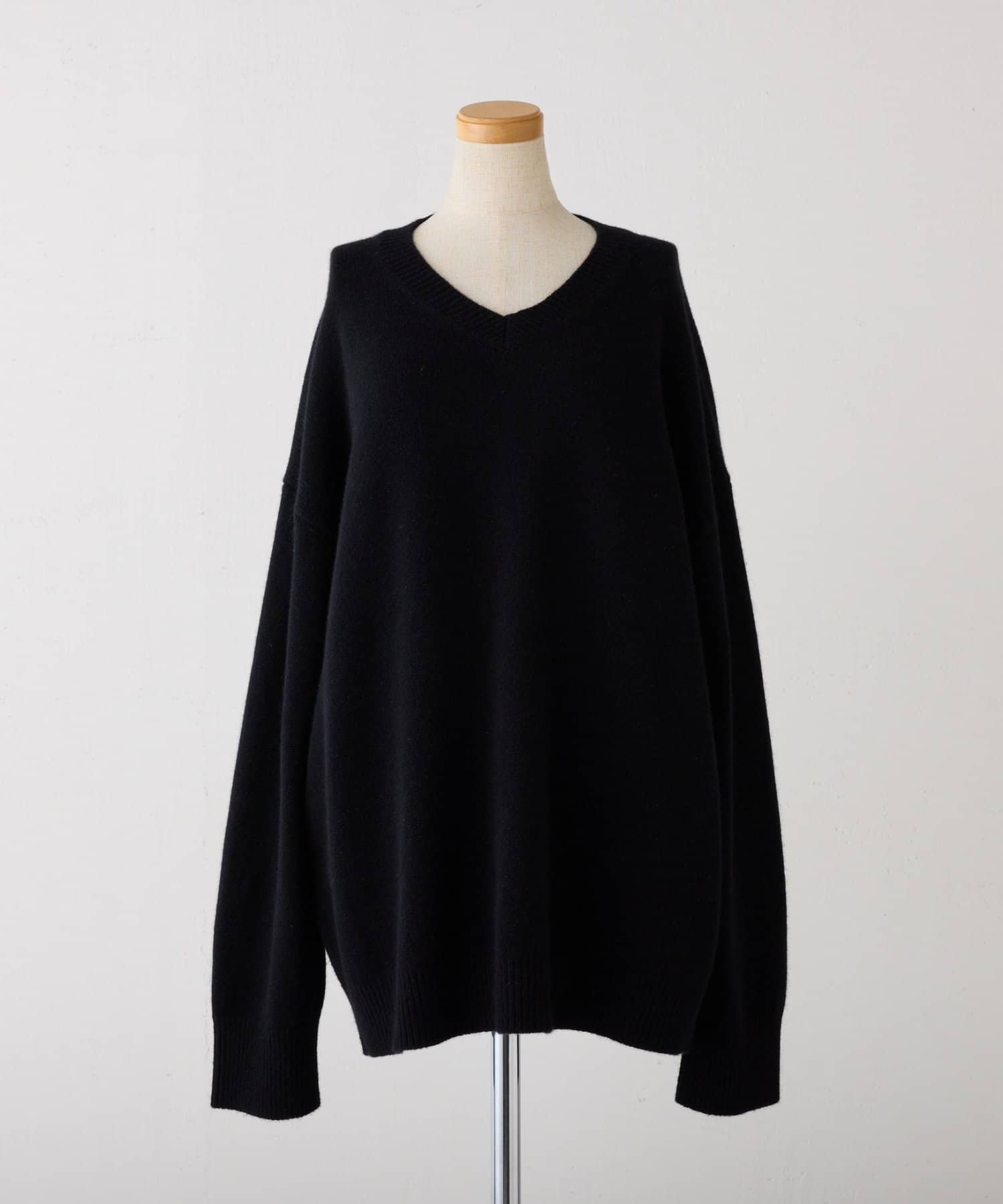 メンズライクにゆったりと着られるオーバーサイズの浅Vニット