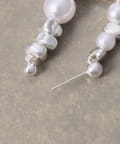 ・異なるサイズと素材のパーツがランダム調に並んだインパクトのあるピアス。