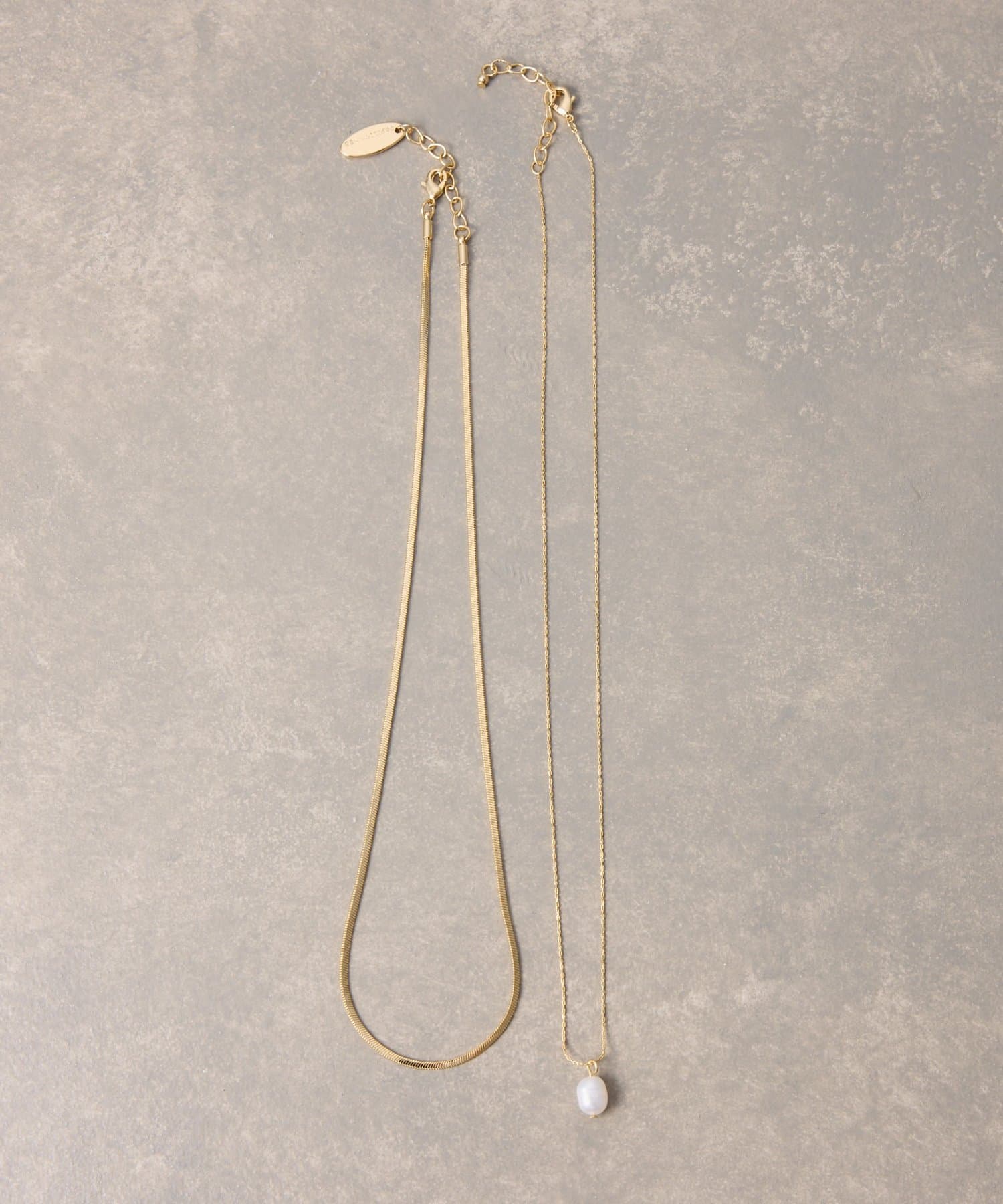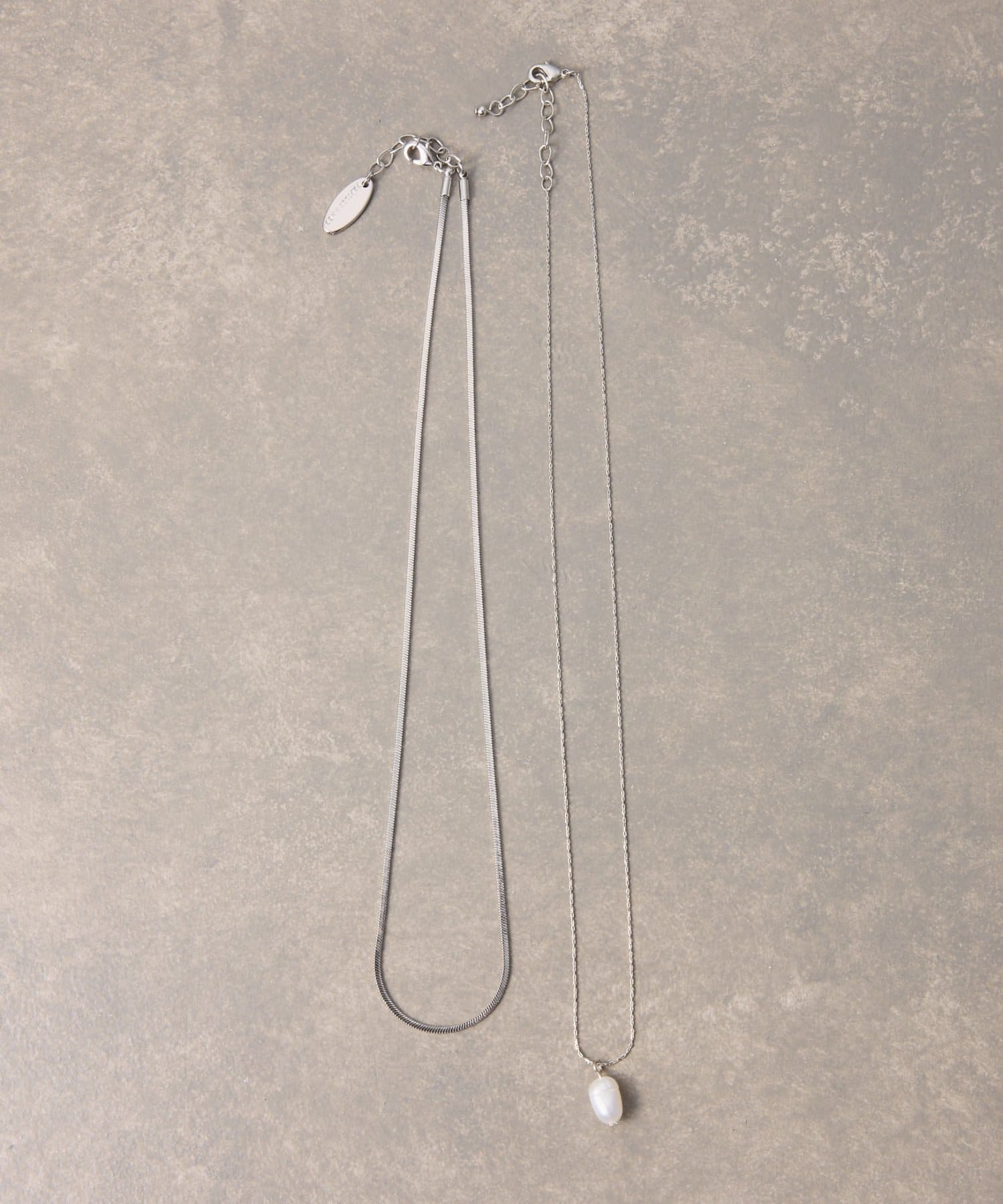 ・丸みのある淡水パールのワントップネックレスとスネークチェーンチョーカーの2点セット。
