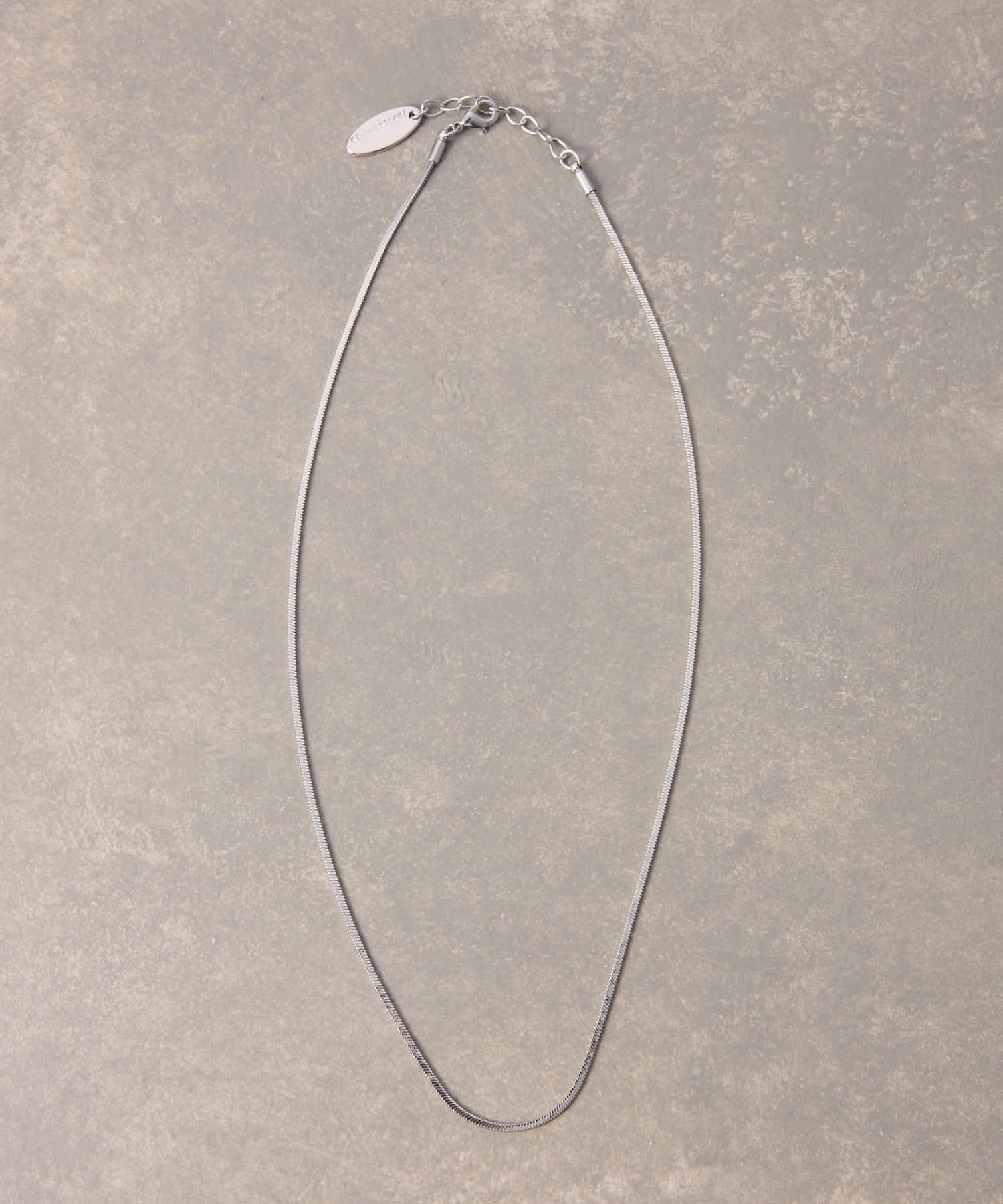 ・程よく存在感のあるスネークチェーンは、顔周りをぐっと引き締めてくれます。お持ちのネックレスとの重ねづけも楽しめます。
