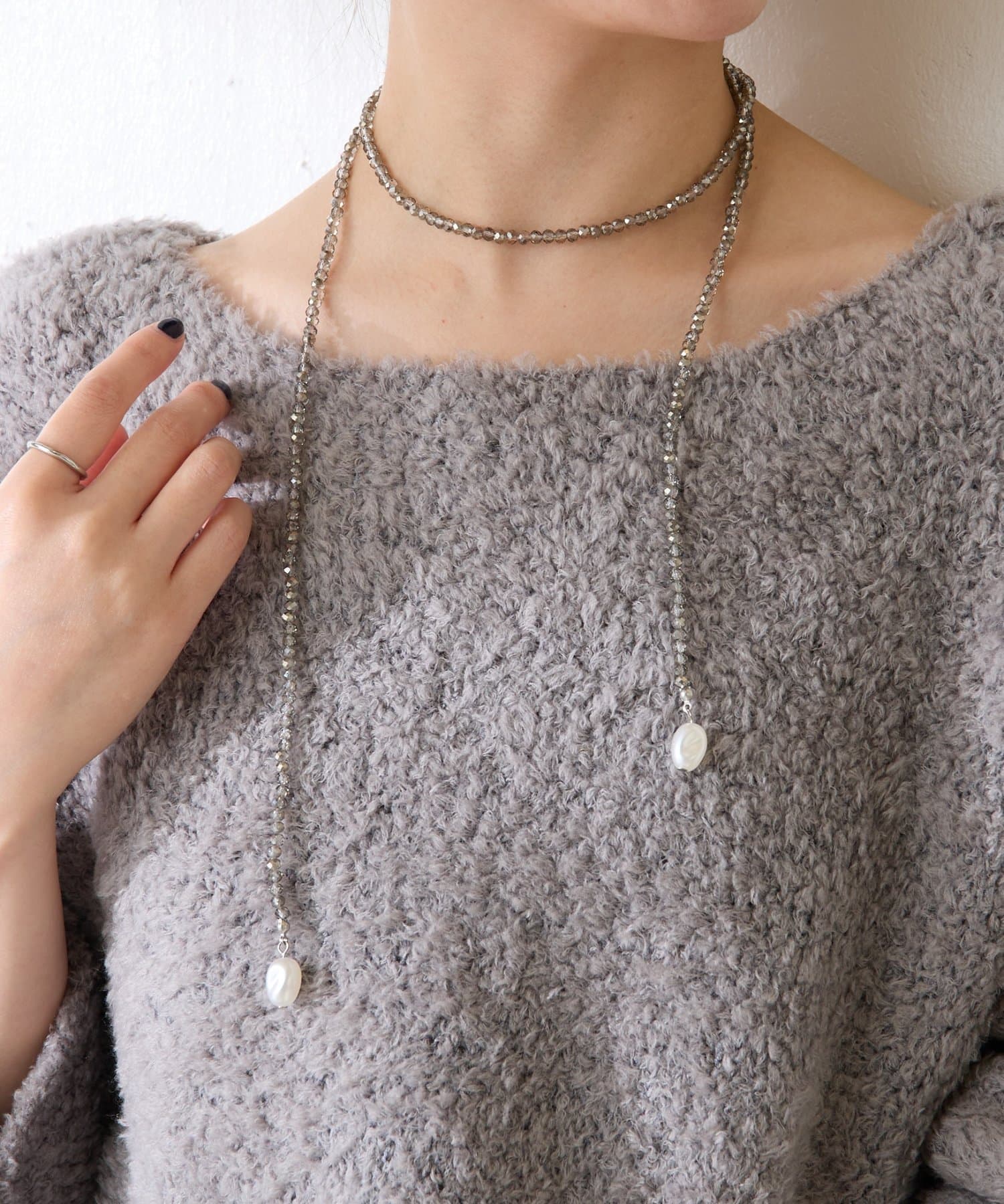 ・留め金がなくひも状のネックレスなので結び方によって色々なアレンジが楽しめます。