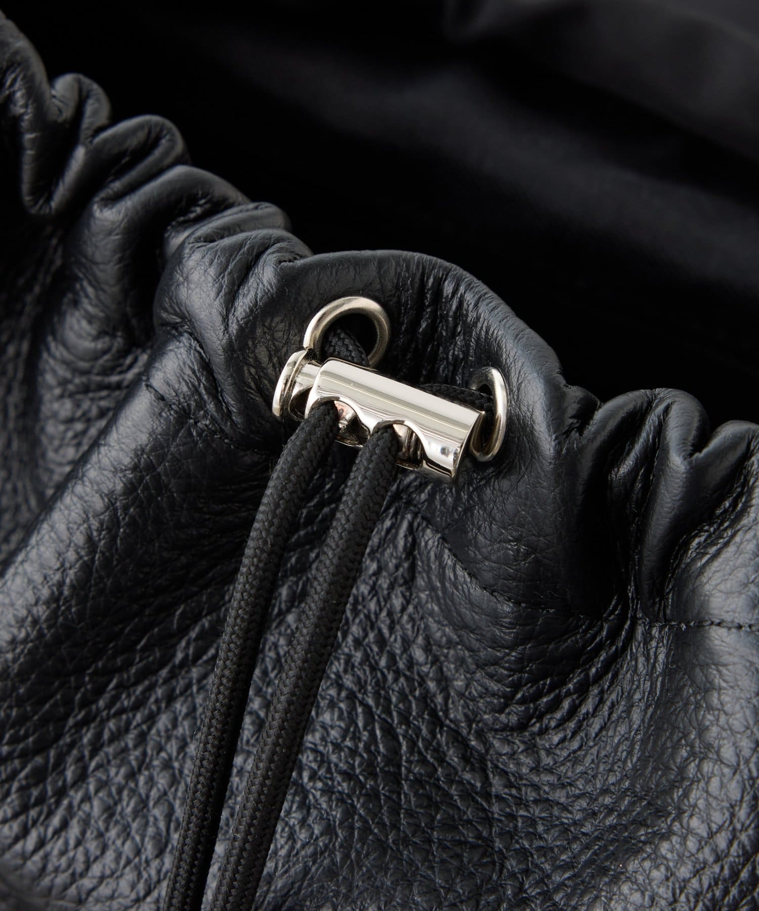 ・巾着型の間口と、側面にはファスナーも付けているのでスムーズな出し入れが可能。