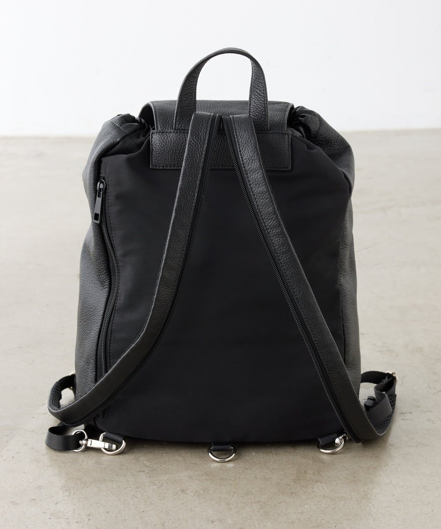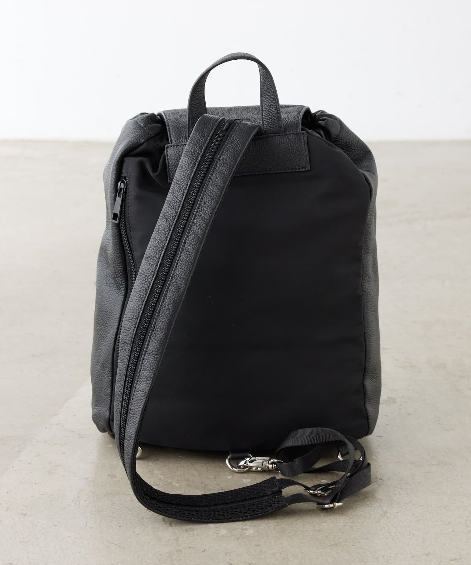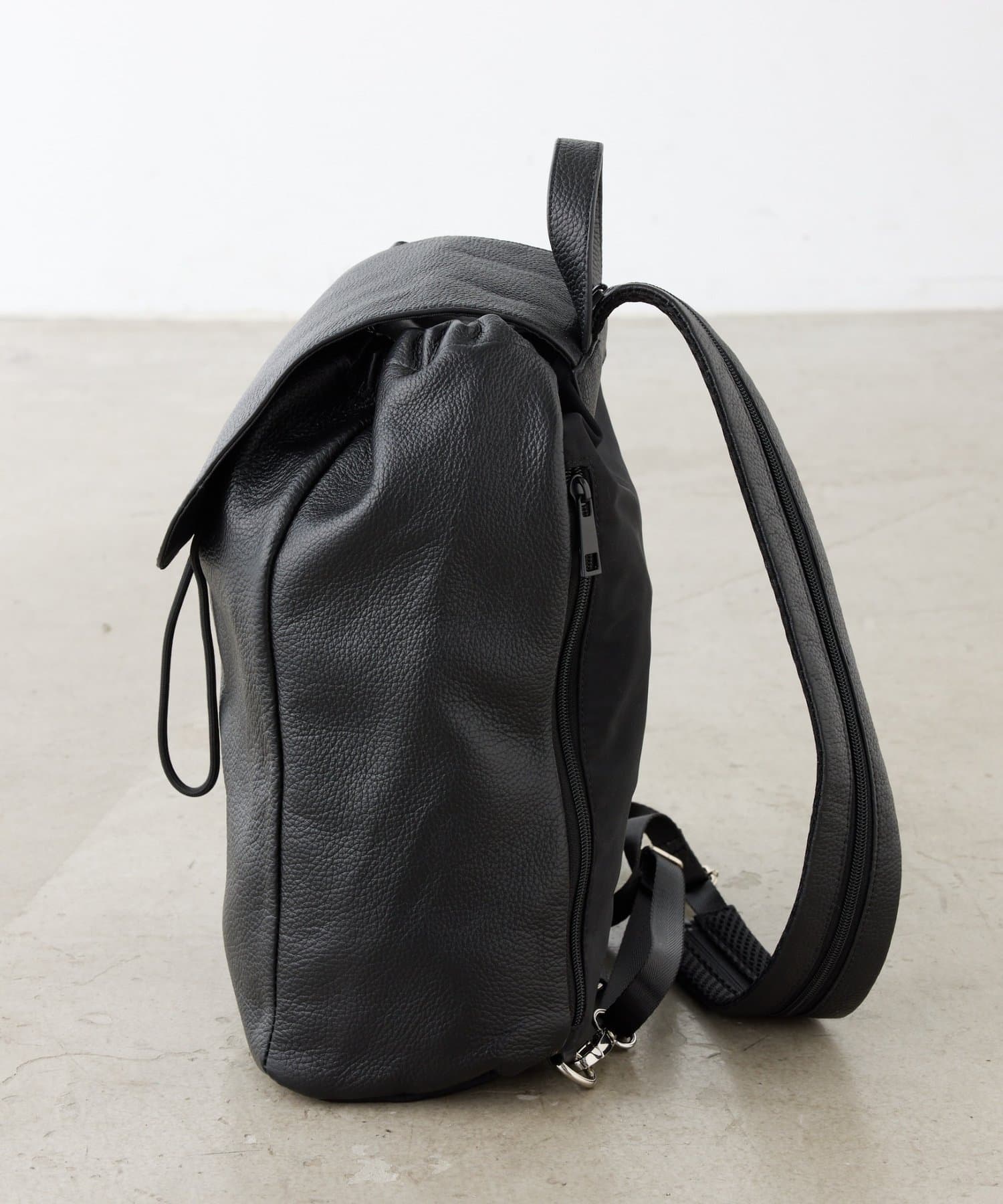 ・きれいめなスタイリングにも馴染みやすいレザーと異素材合わせのコンビリュック。