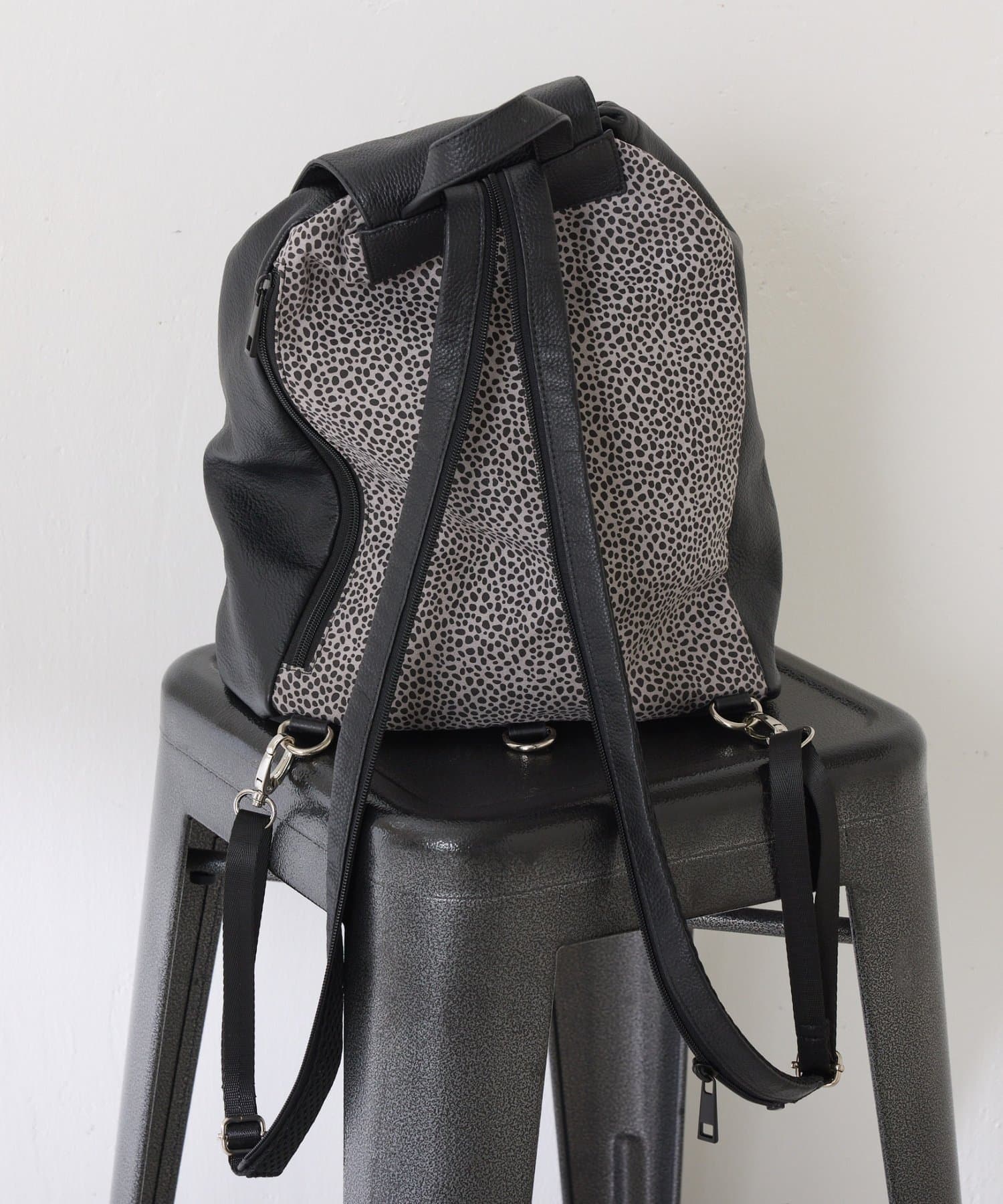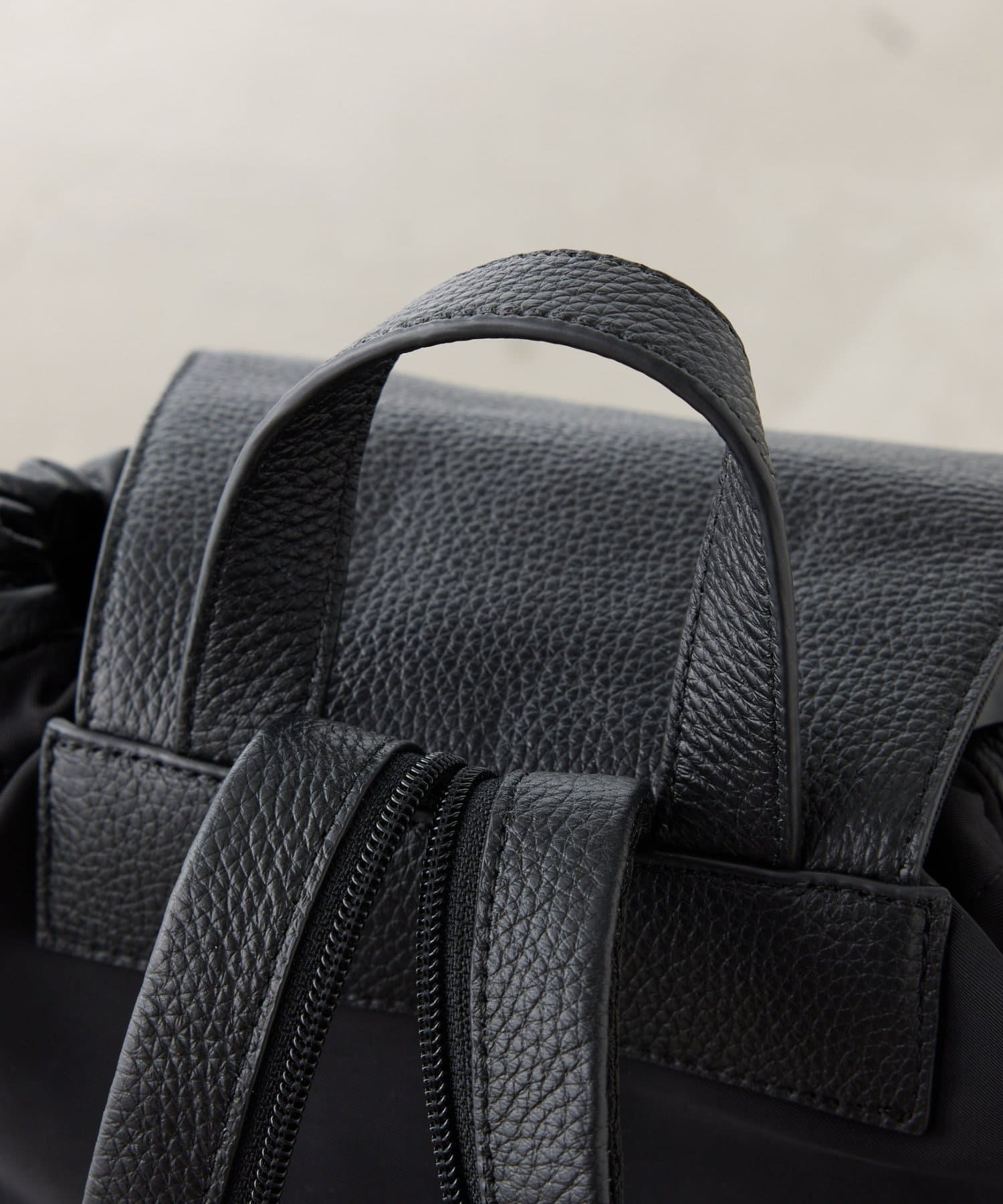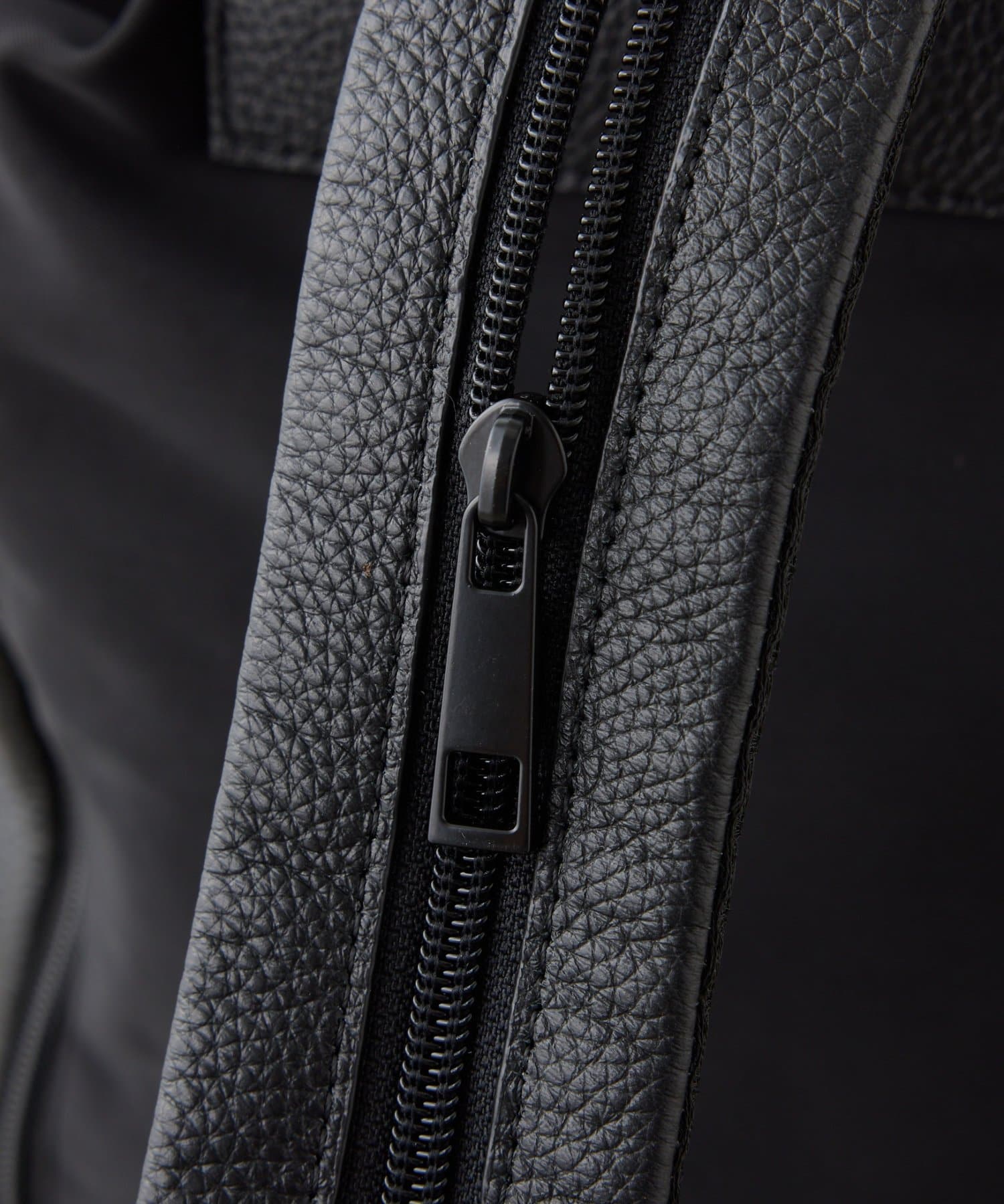 ・きれいめなスタイリングにも馴染みやすいレザーと異素材合わせのコンビリュック。