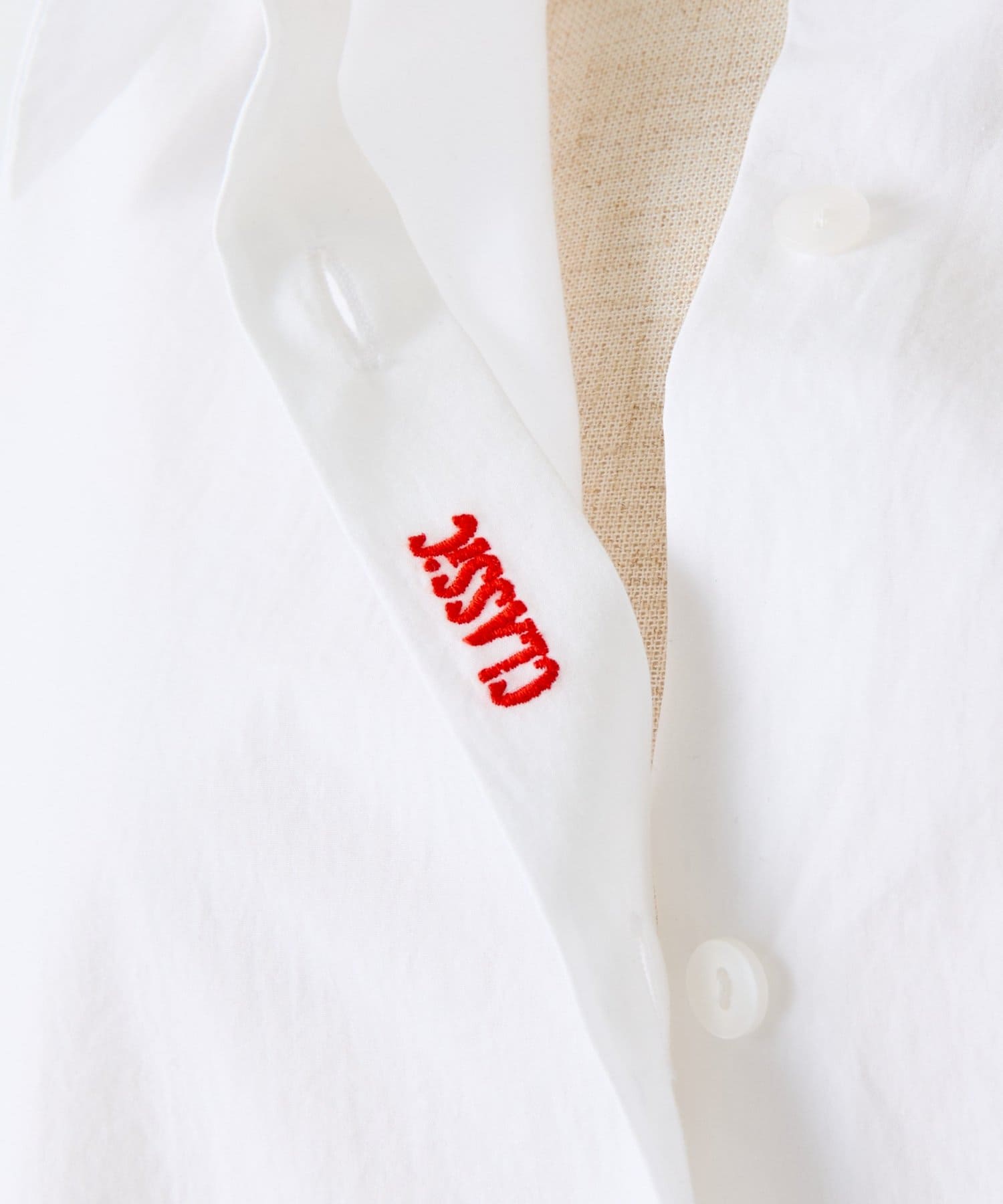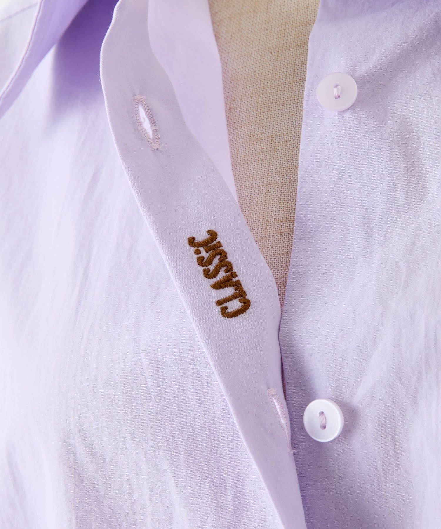 “CLASSIC”=ベーシックな白シャツを今の気分で着られるようにという思いを込めて『時代を超えて優れたもの』という意味で入れています。