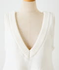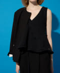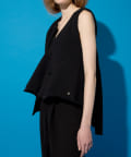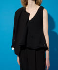 ・前後2通りで着用できるので幅広いインナーと合わせられます。ジャケットを羽織る際は、抜け感の出るVネックを前にするのがおすすめです。