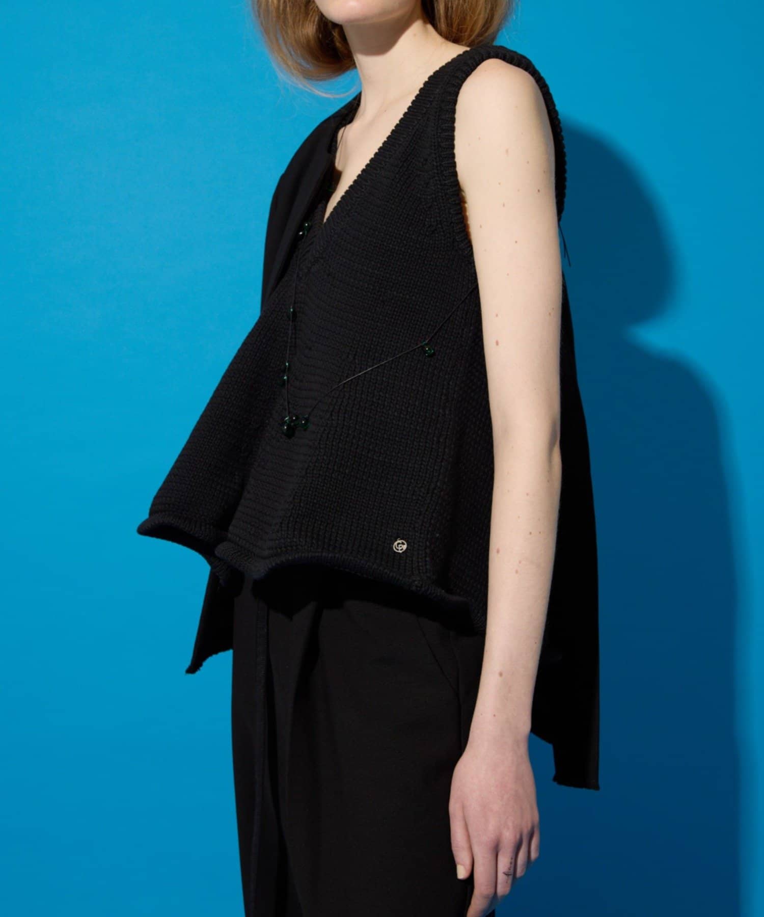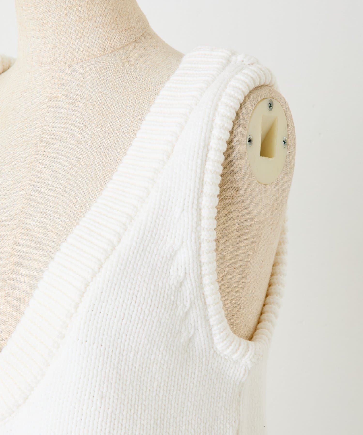 ・ローゲージの綿のリリヤーンにナイロンを詰め込んだ糸を使用。リリヤーン糸は中が空洞状で軽さとボリューム感を楽しめます。