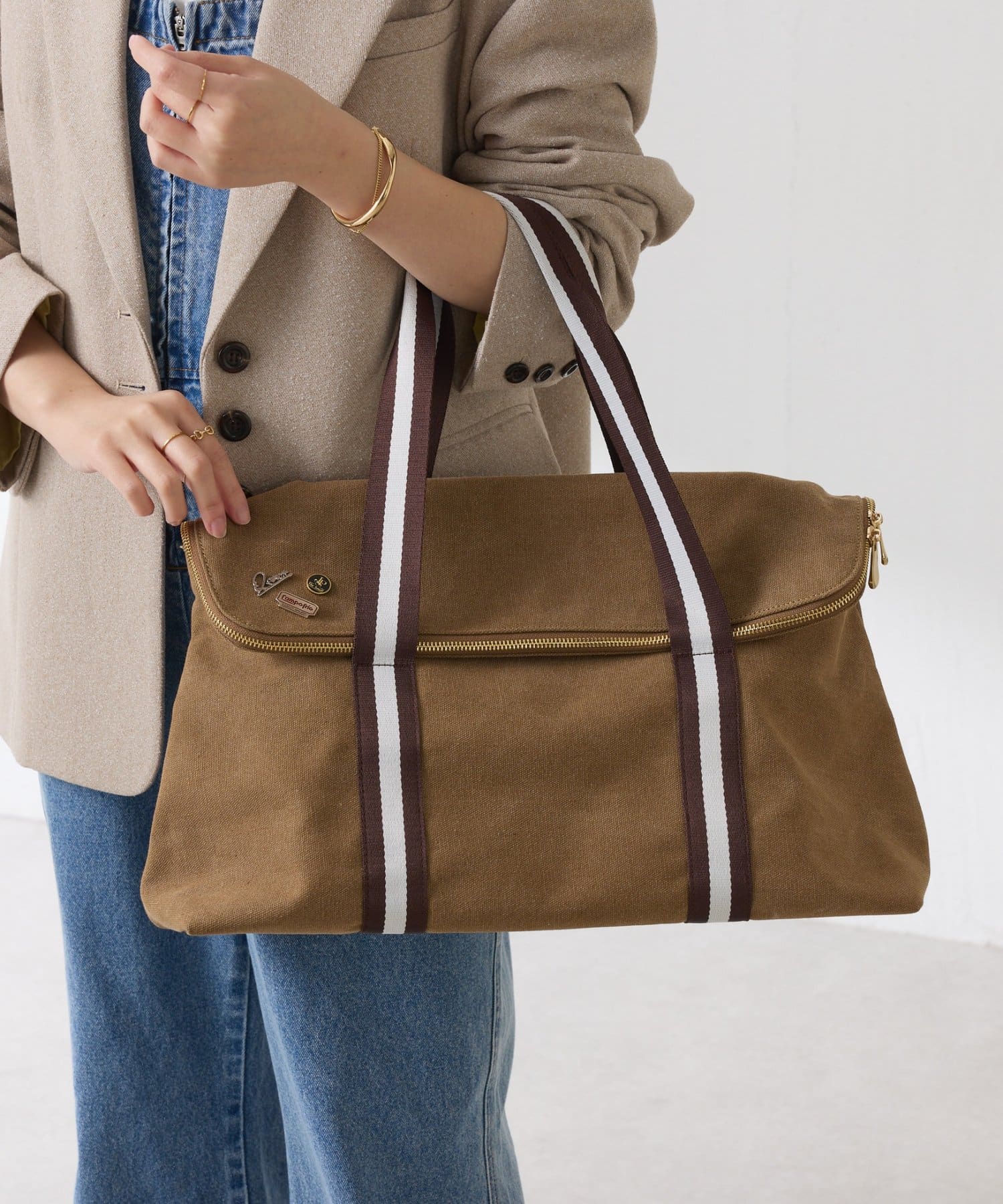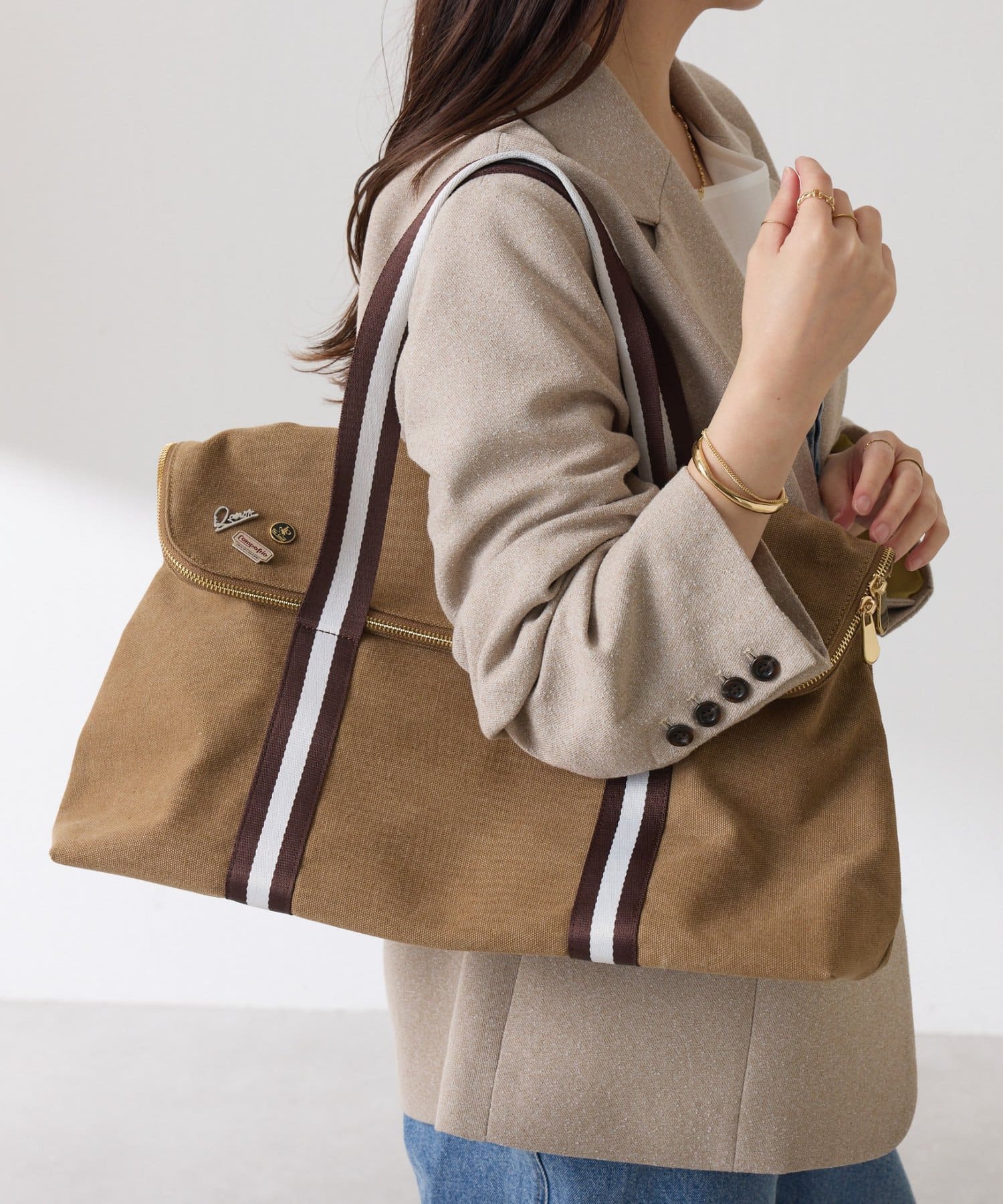コーデに抜け感をプラスできる大容量バッグ