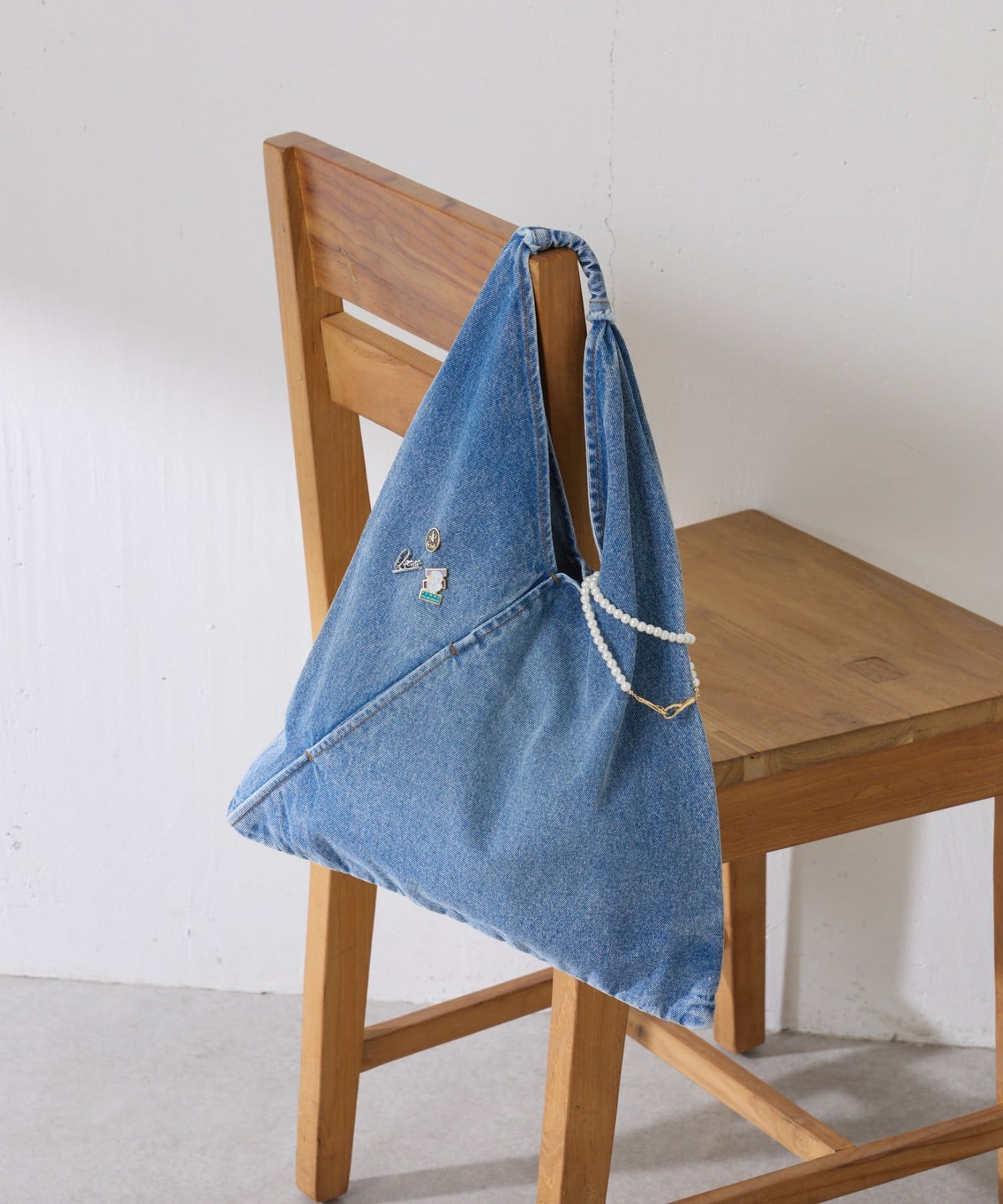 ・三角形の形がコーデのワンポイントになるデニムバッグ