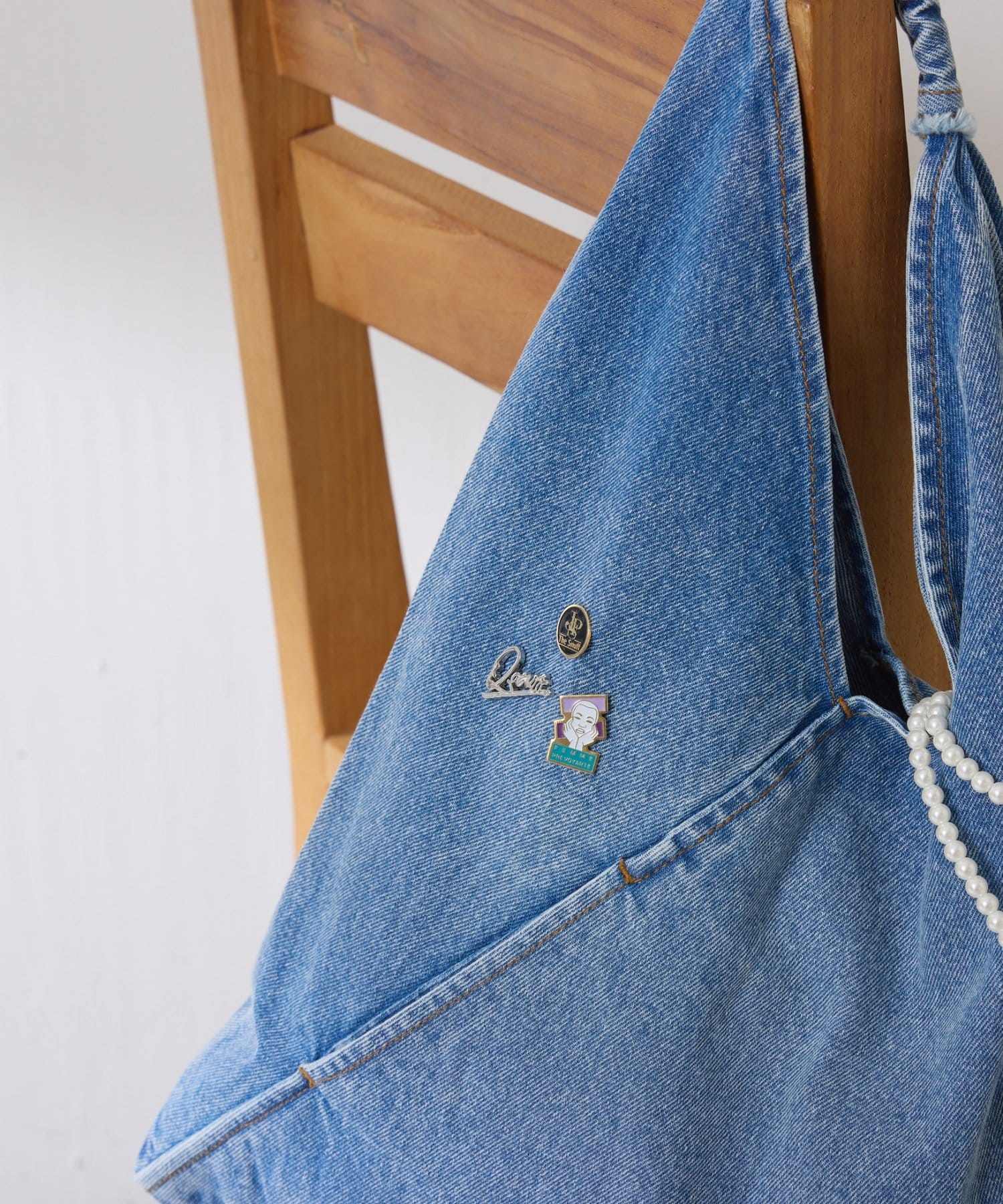 【ピンバッジ付き】Q.anos トライアングルデニムバッグ