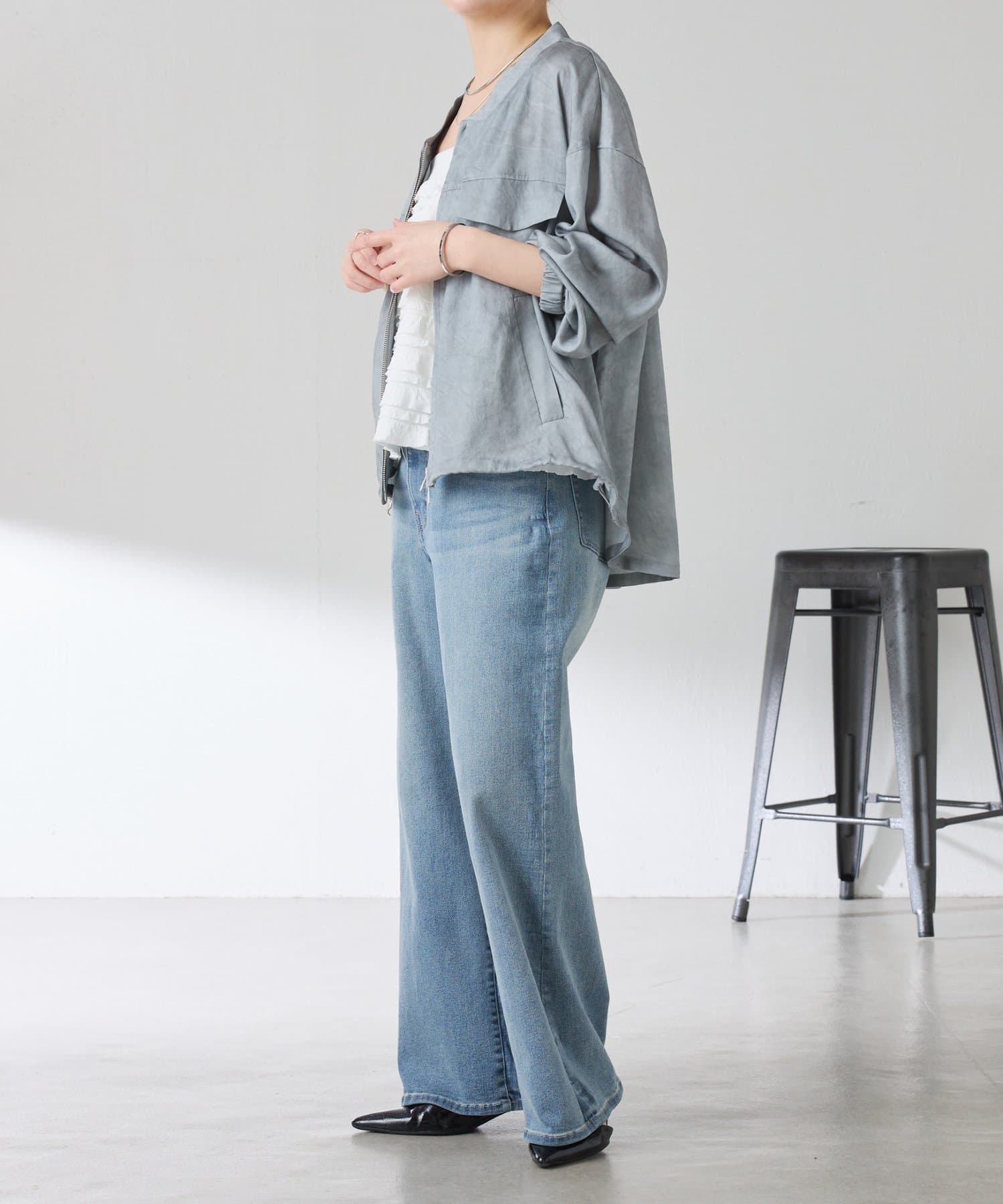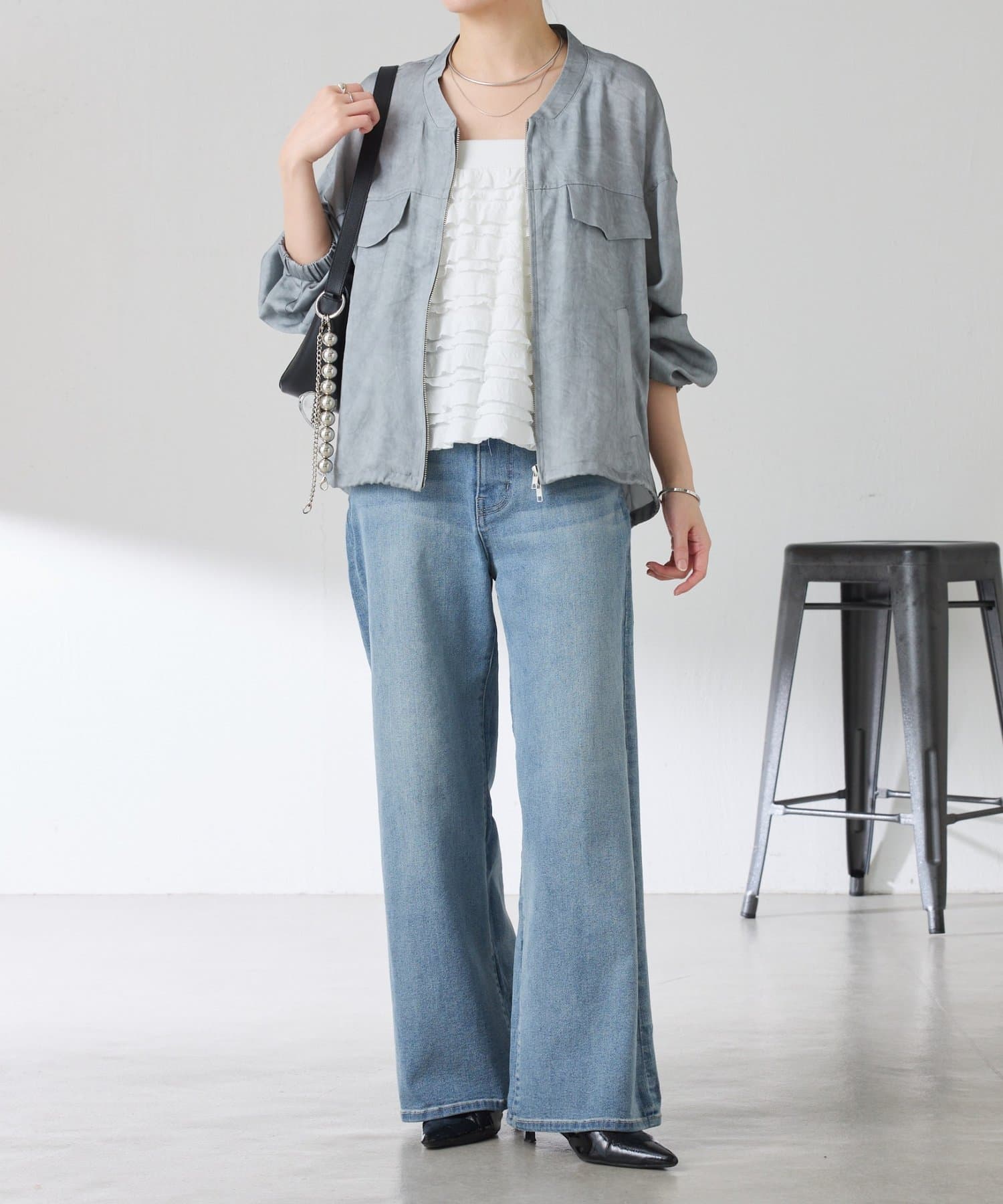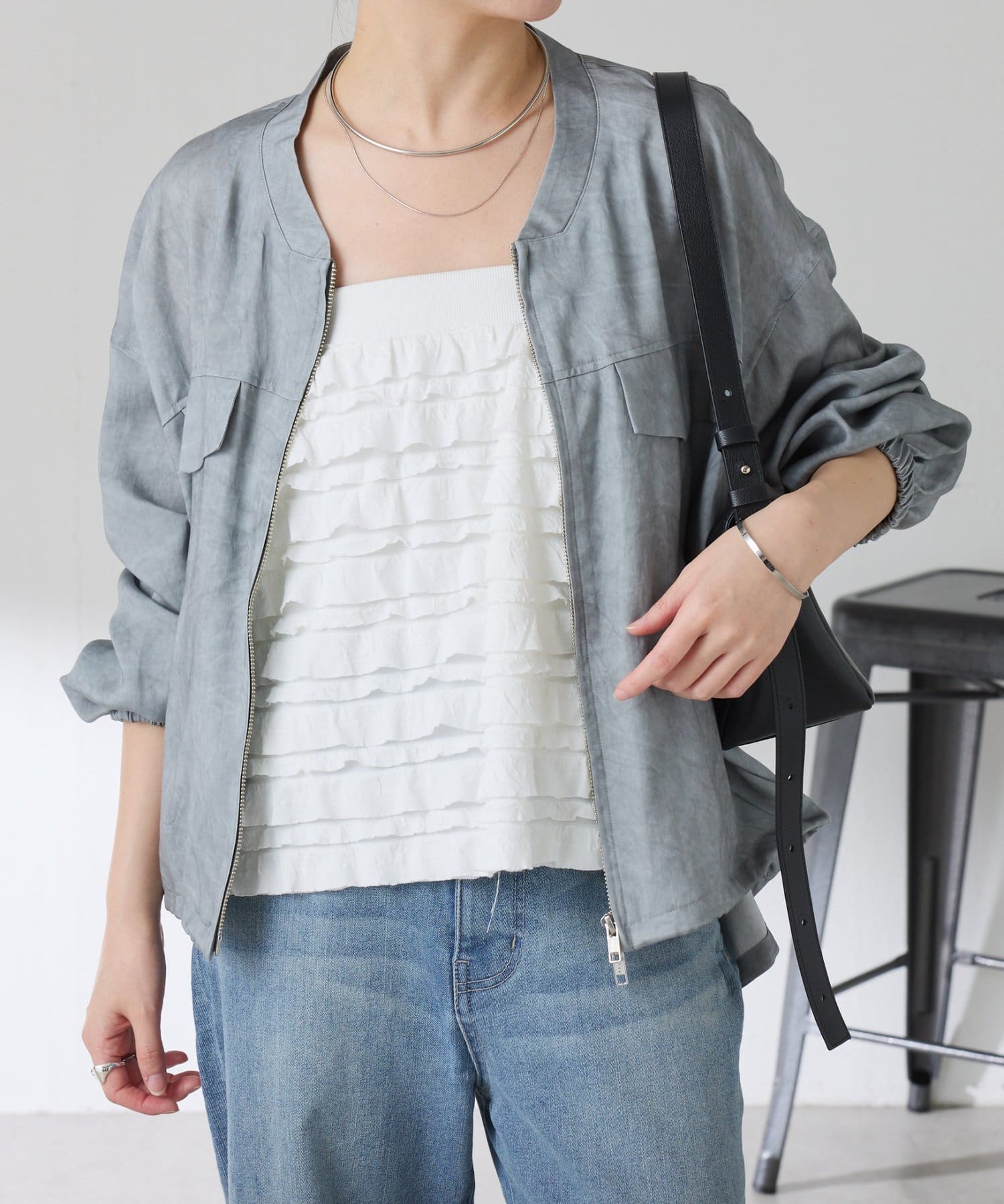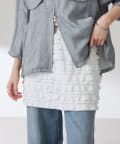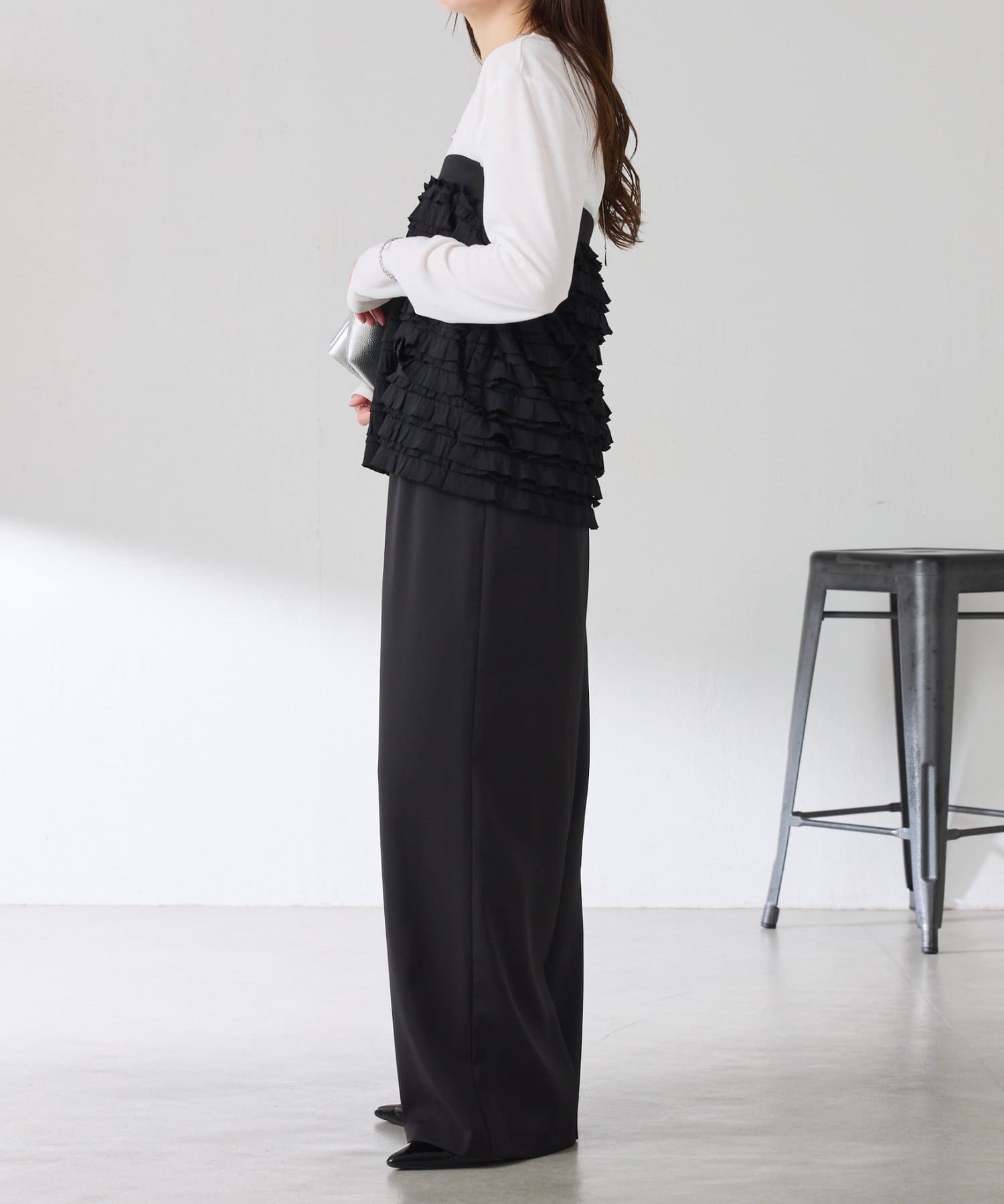 ・フリルですが、カットソ―生地なので甘すぎず、ジャケットやスラックスとも相性が良いです。