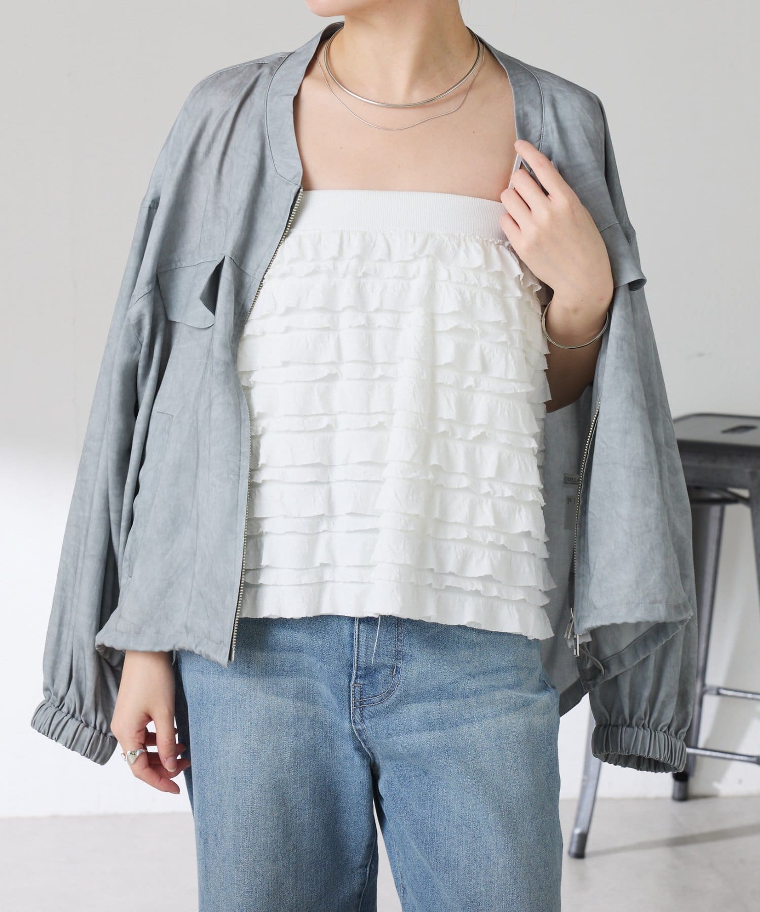 ・ニットやシャツの下に重ねたり、バスト部分に重ねてビスチェ風にもアレンジを楽しめるアイテムです。