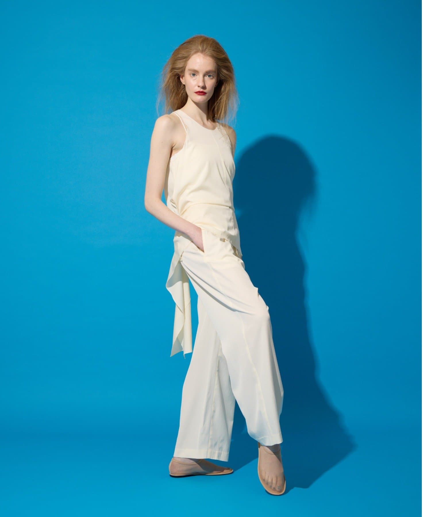シルク混のラグジュアリーな落ち感を最大限に感じられるデザイントップス