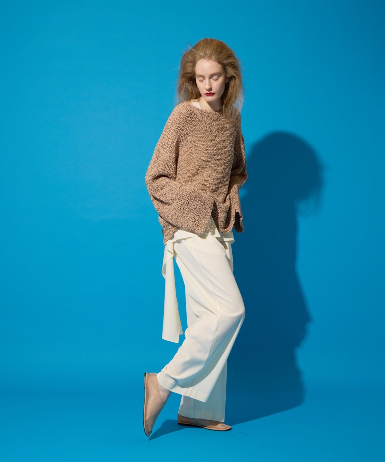 落ち感がある素材で1枚で着映えするニュアンスニット