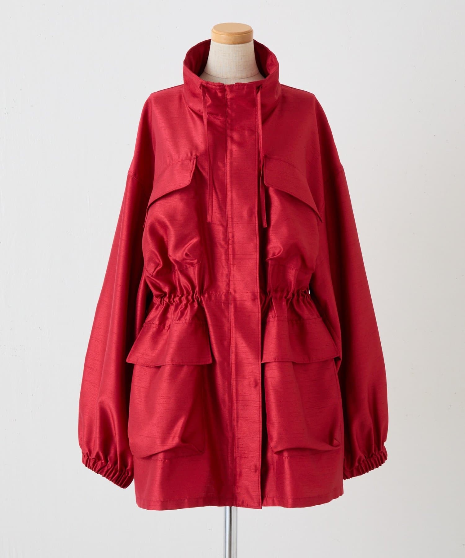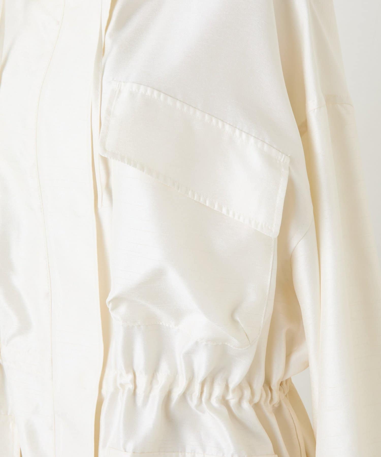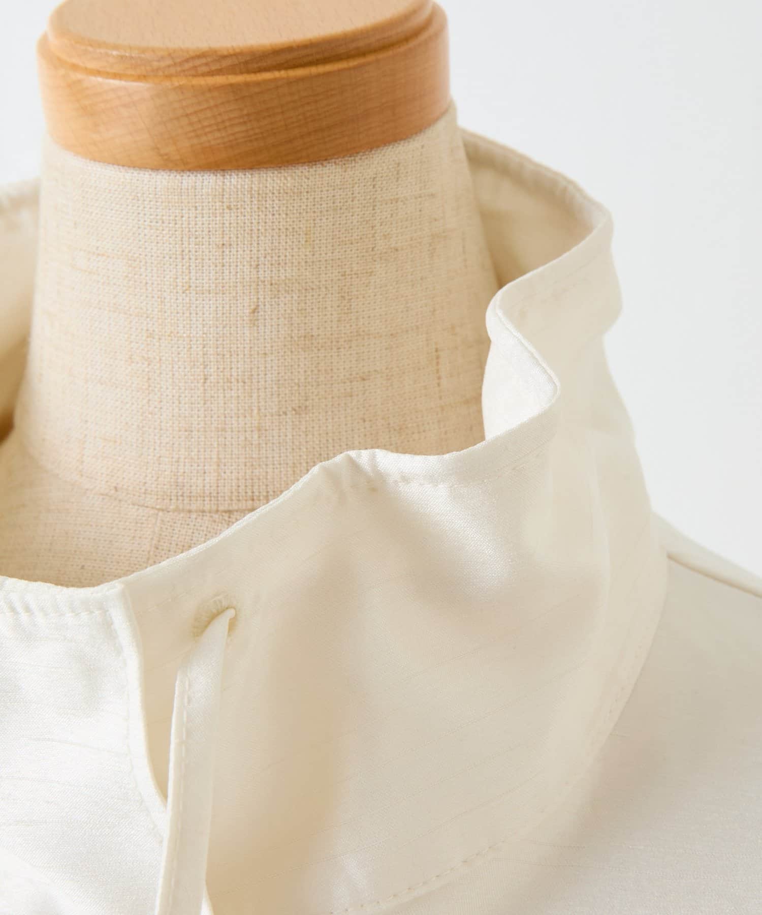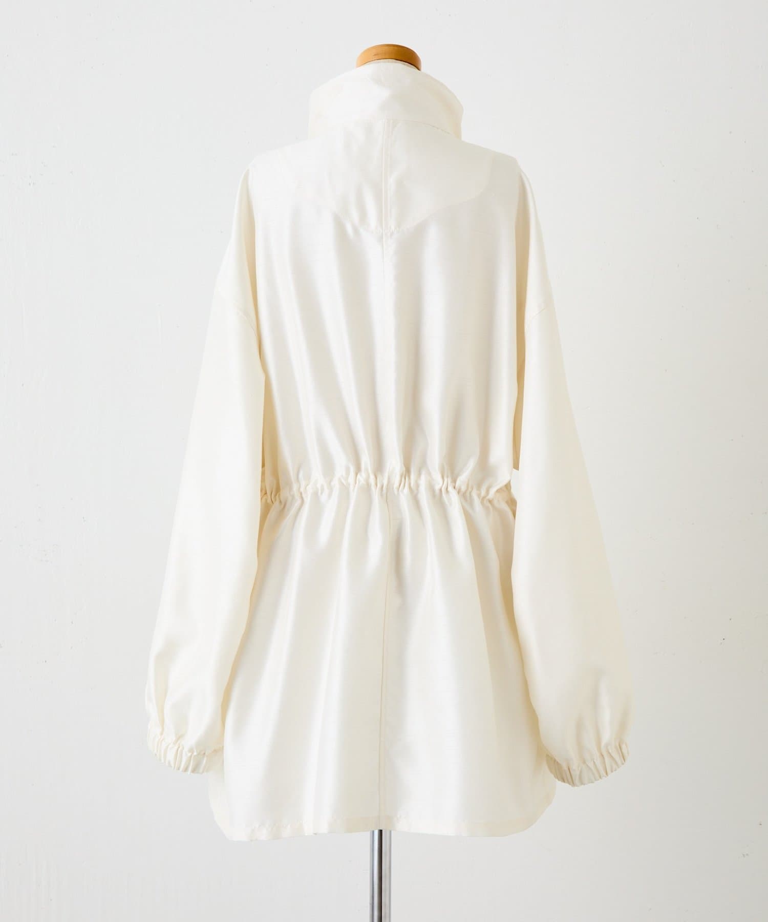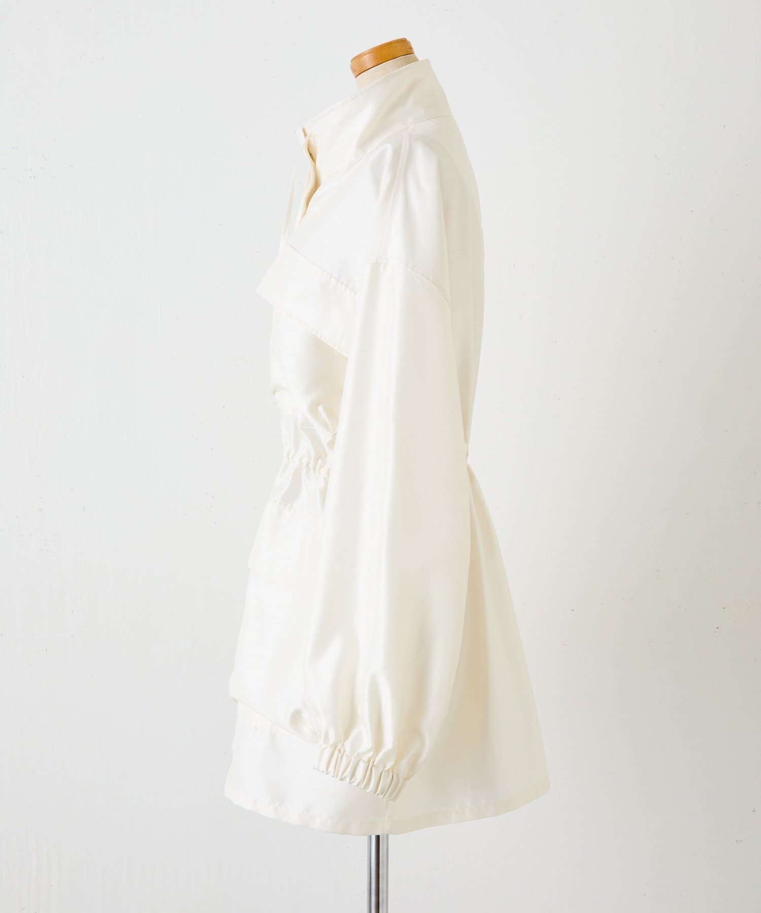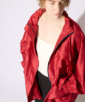 ・シルクライクな光沢感のあるシャンタン素材を使用したスタンドネックブルゾン。