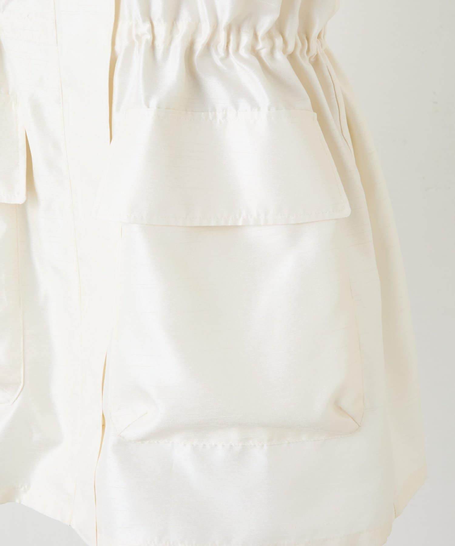 ・ウエスト内側にはドロストを入れているので、きゅっとウエストマークすれば女性らしい雰囲気で着用いただけます。